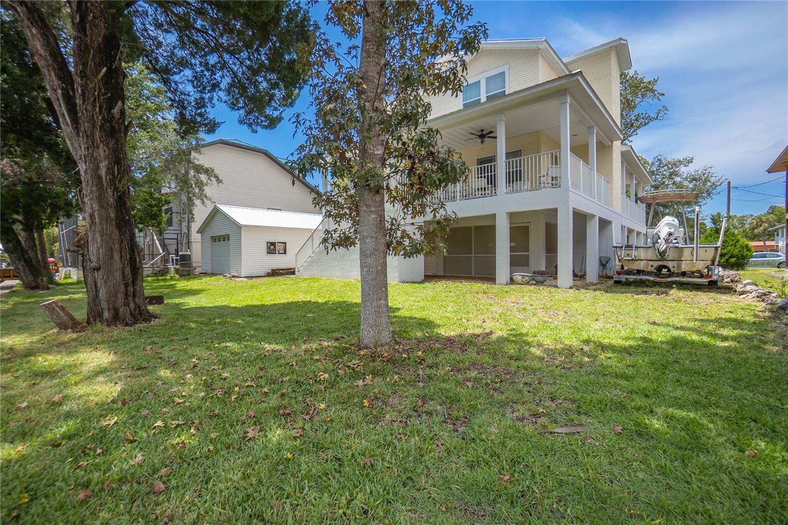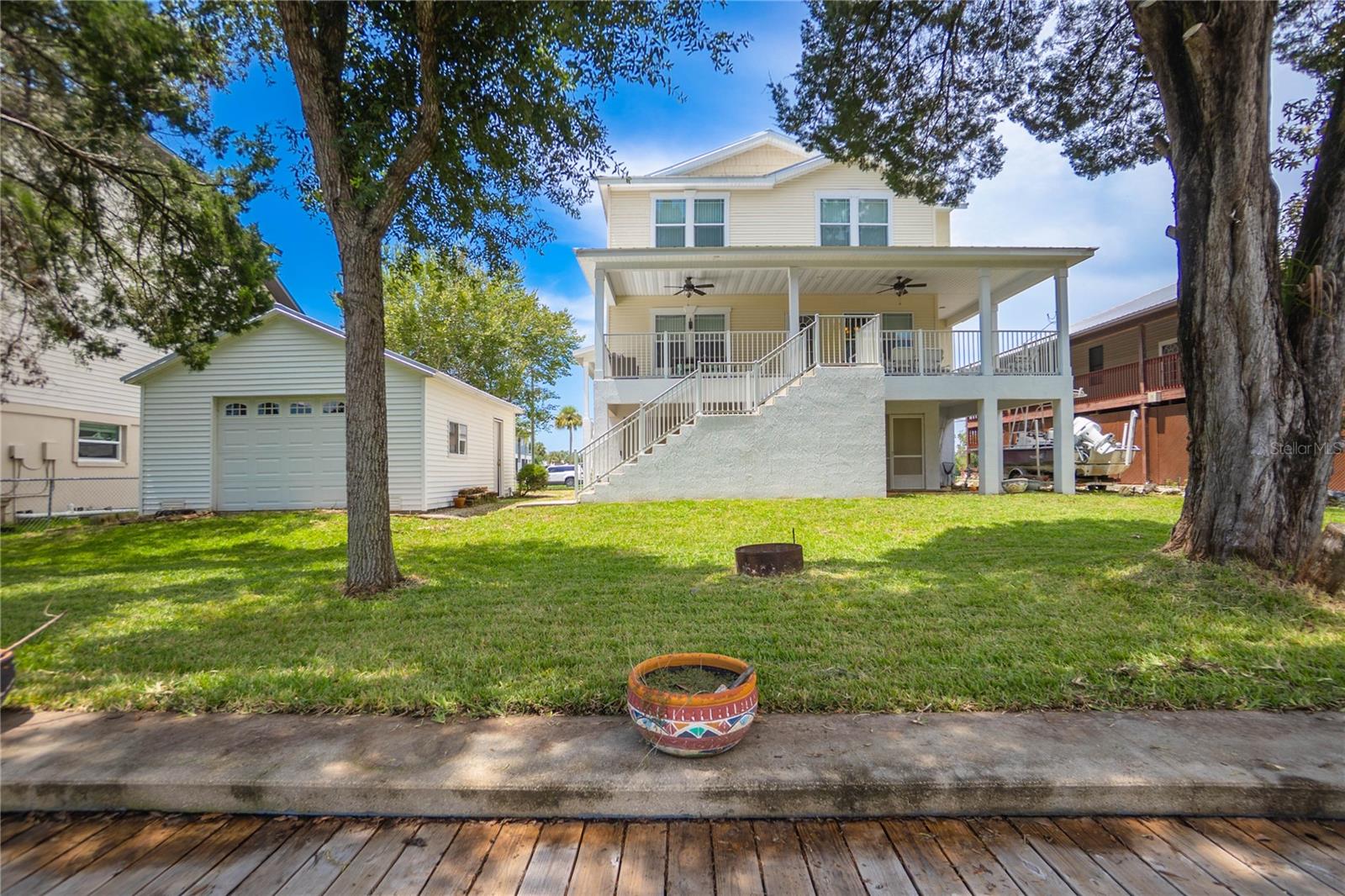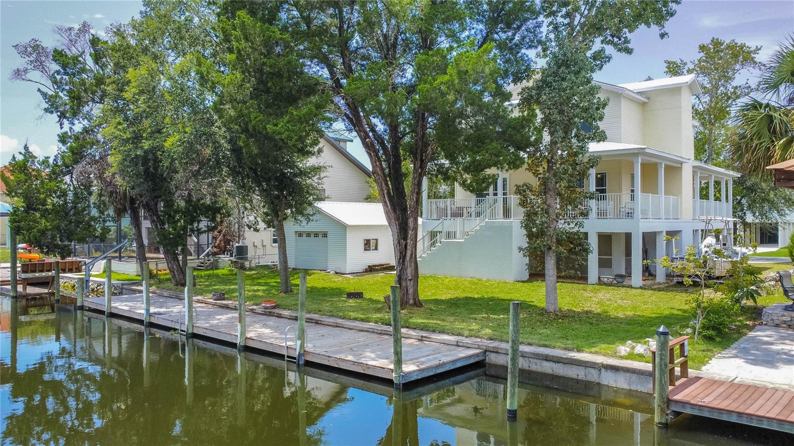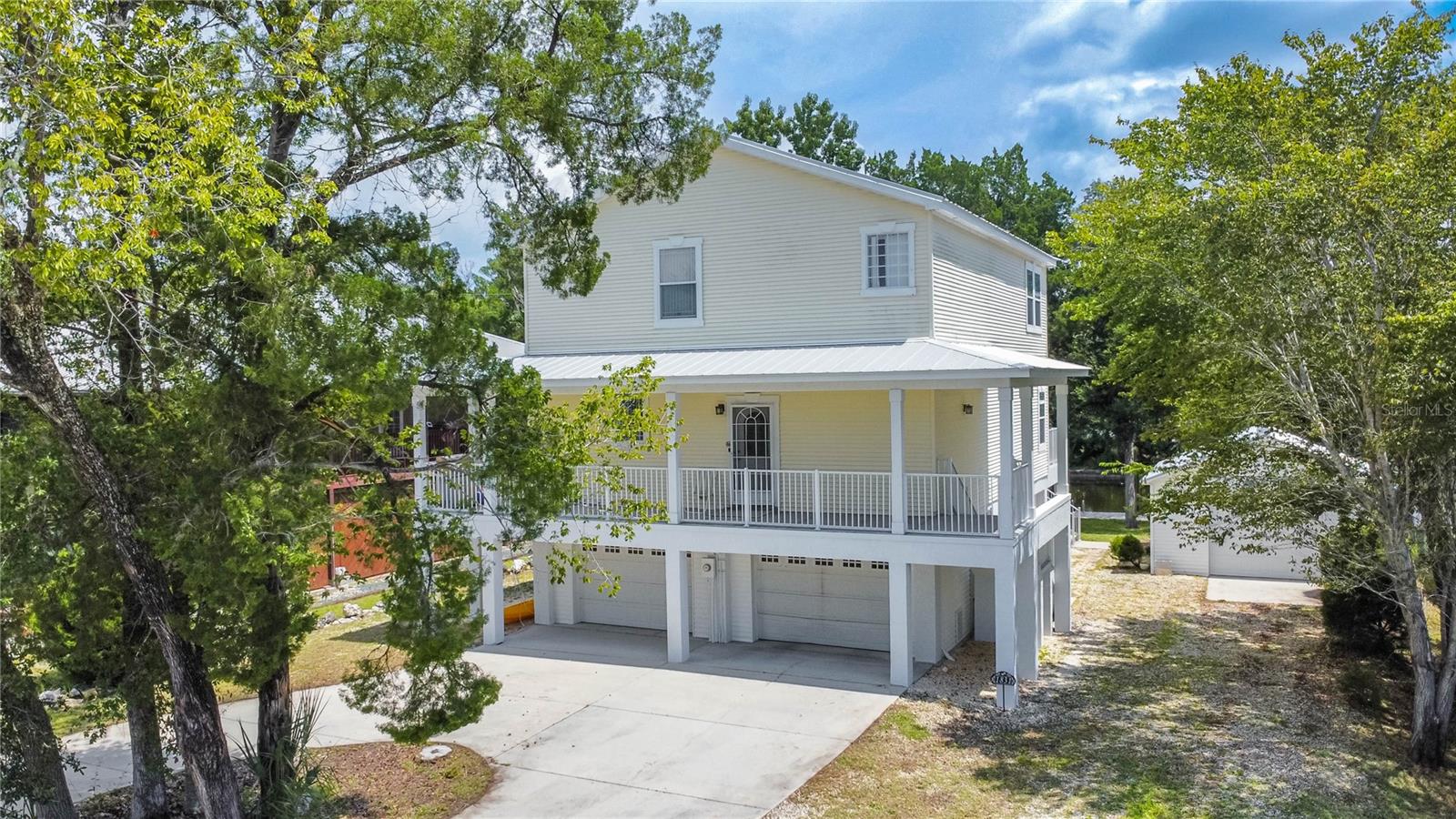 Welcome to the heart of Florida’s stunning Nature Coast! This waterfront gem is a 2008-built, 3-bedroom, 2.5-bathroom home with a 2-car garage and 2,295 sq ft of living, perfectly situated on a deep canal just minutes from the beautiful Crystal River & Springs. Designed for both comfort and adventure, this three-story home offers ground-level 2-car parking, an abundance of storage, a covered area for your outdoor gear, and detached 30x40 garage—ideal for all your boating or workshop needs. With over 60 feet of dock and an 80-foot seawall, it’s a true water lover’s dream. Access the second and third floors via stairs or your private elevator. The second level boasts a desirable open floor plan with a well-designed kitchen featuring wood cabinets, a breakfast bar, appliances, and a walk-in pantry. You'll also find a cozy desk area off the foyer, an interior laundry room with washer and dryer, a half bath, a welcoming living and dining area, and a covered lanai with tranquil water views. Upstairs, the third floor offers a primary suite with sitting area, a tray ceiling, dual sinks, walk-in closet, garden tub, and separate shower. Two additional bedrooms and a full bathroom complete the upper level. The metal roof was updated in 2022 and the central AC in 2019. As a bonus, this home is located in a community with a voluntary HOA that includes access to a private boat ramp just a few parcels away. Enjoy the best of the Nature Coast lifestyle—scalloping, boating, dining, manatee watching, and more—all from your very own waterfront haven!