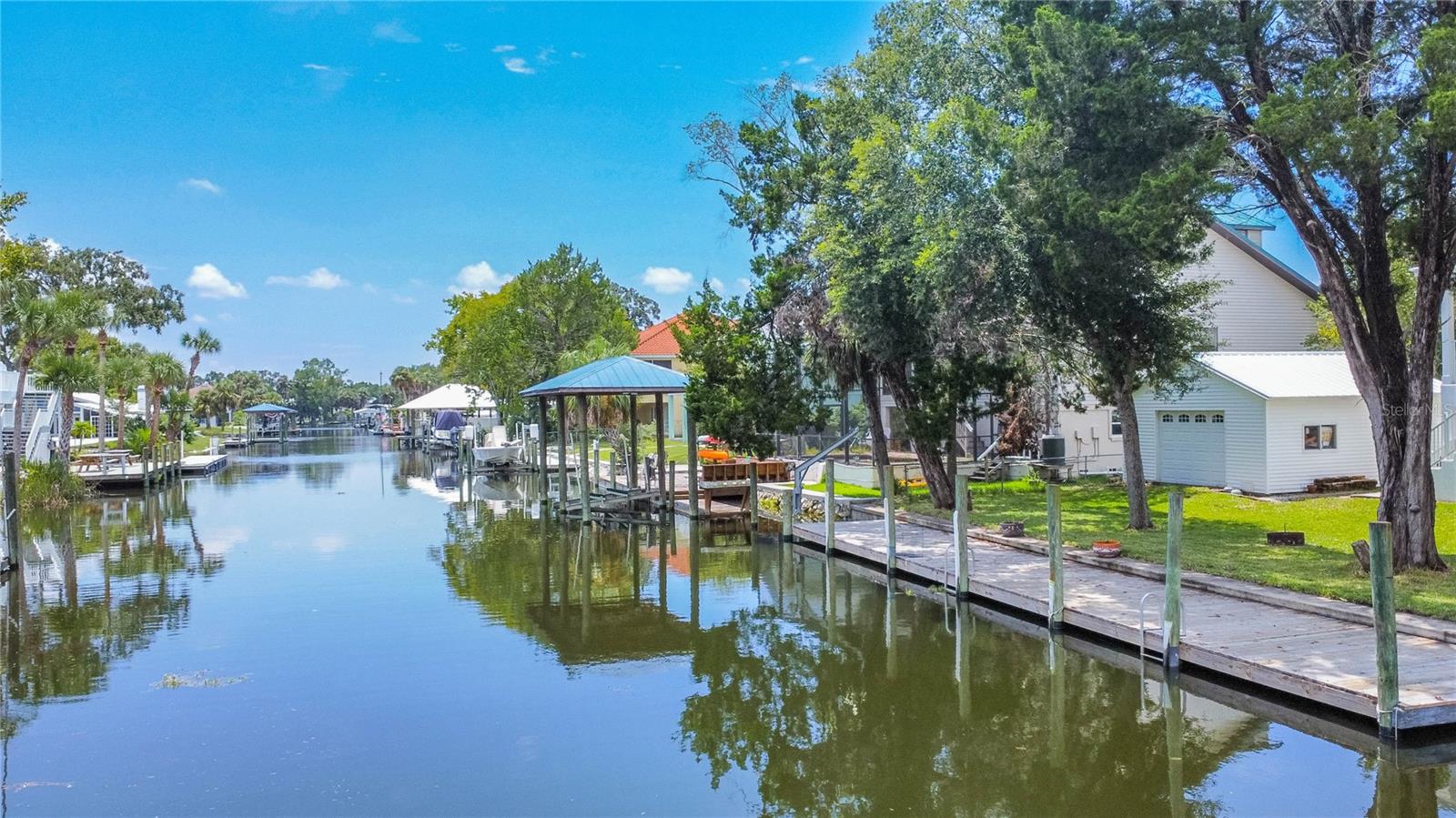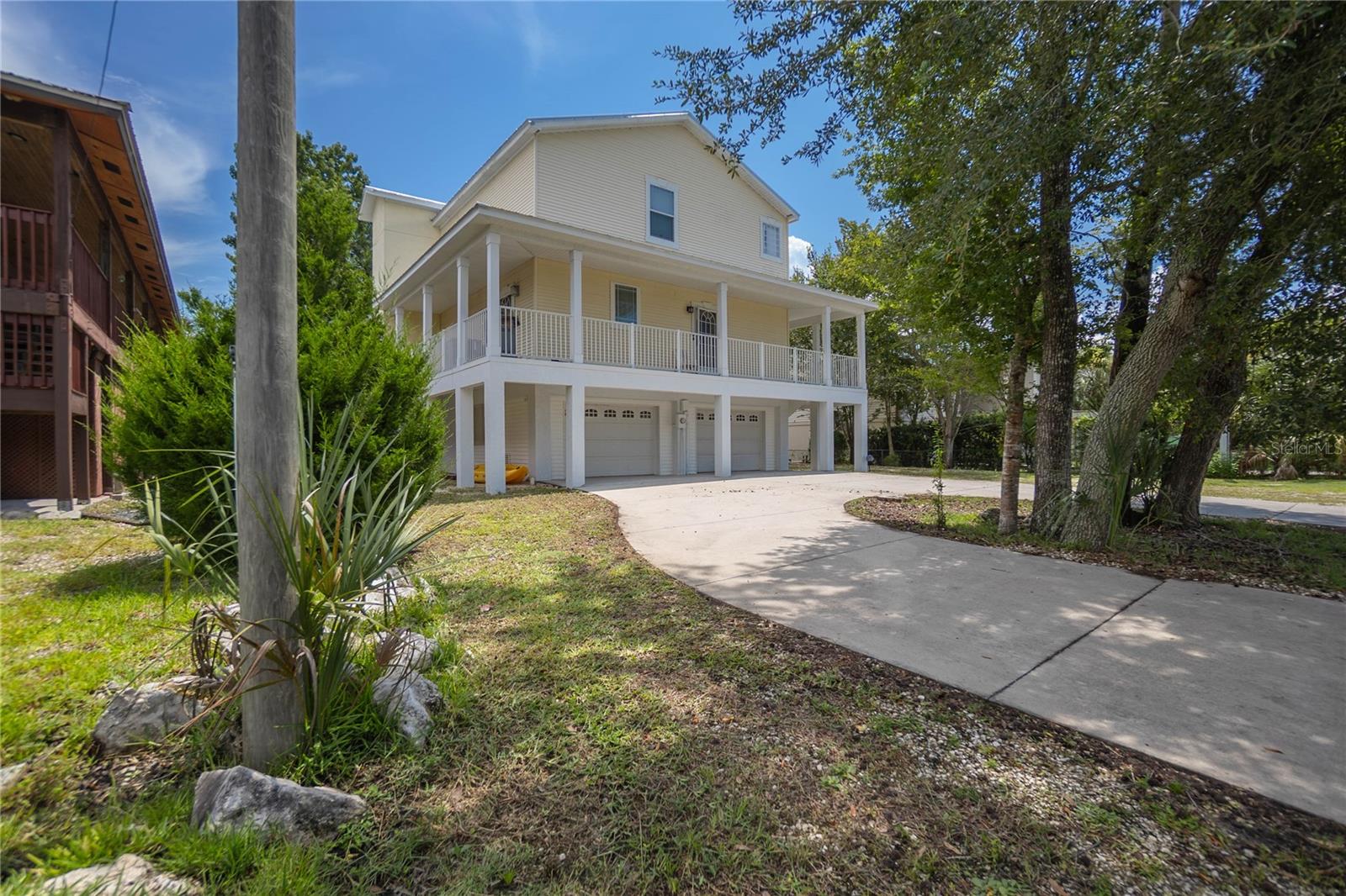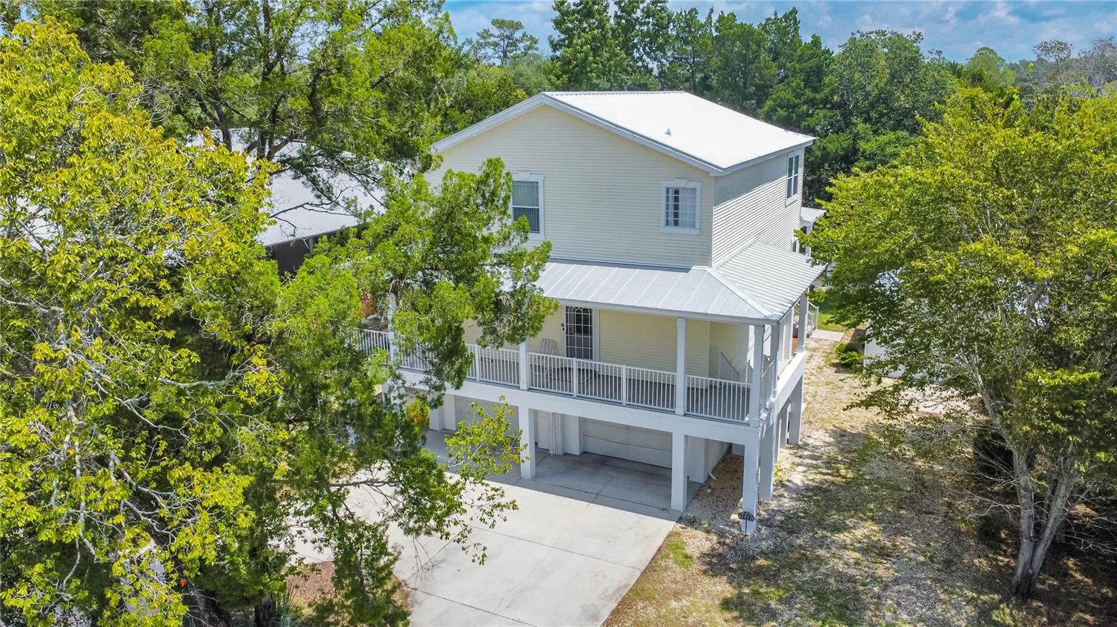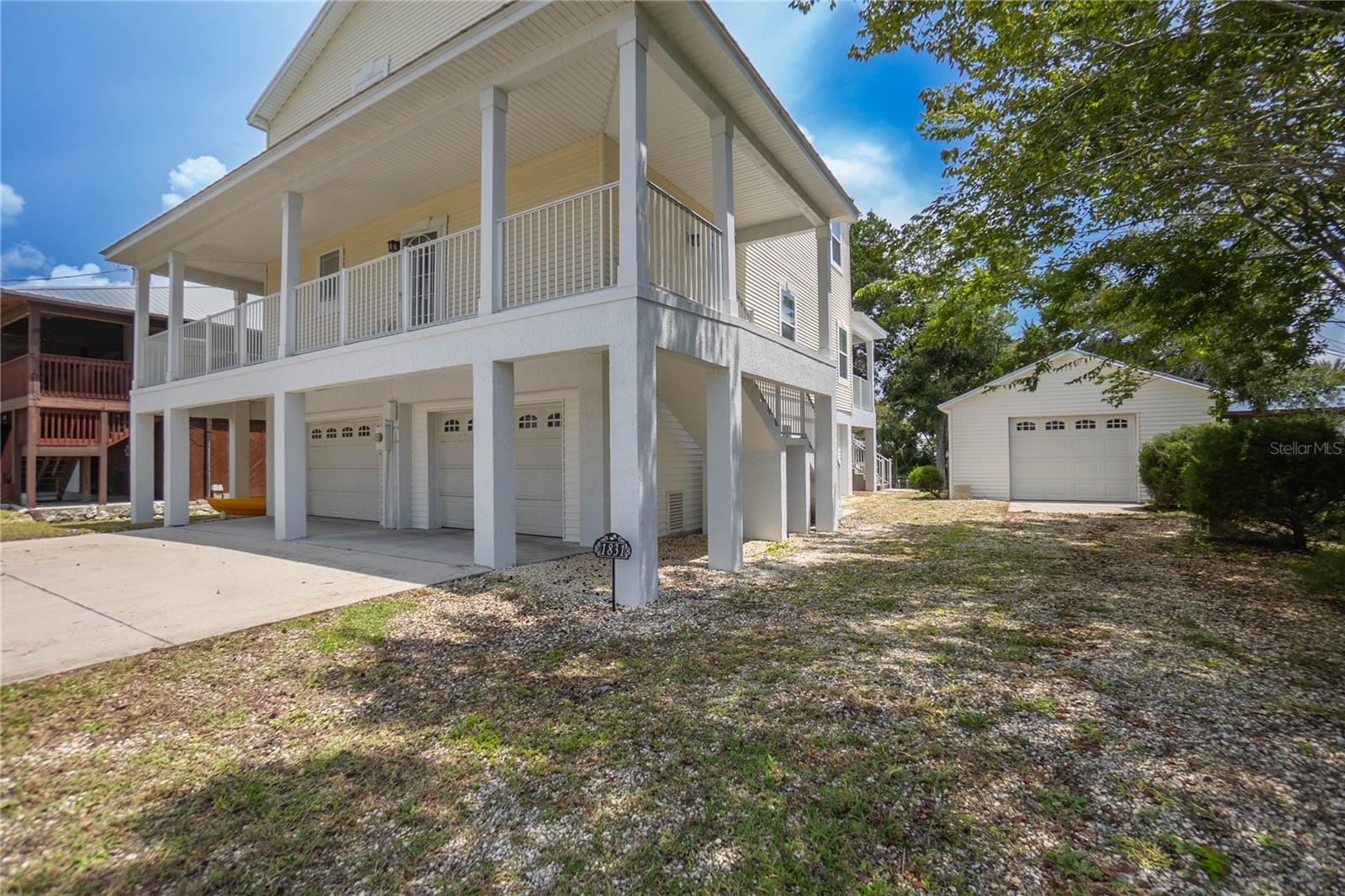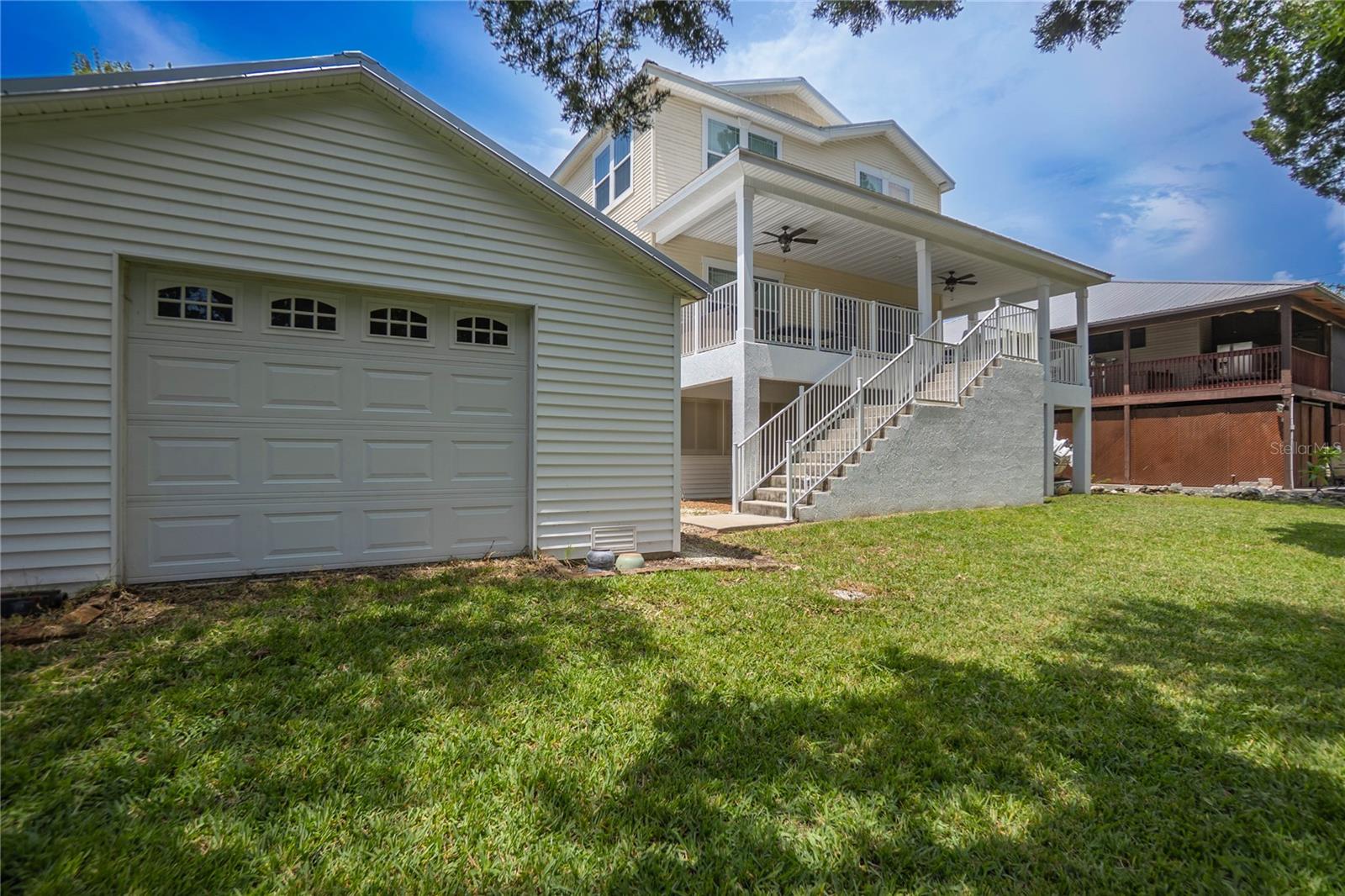 Welcome to the heart of Florida’s stunning Nature Coast! This waterfront gem is a 2008-built, 3-bedroom, 2.5-bathroom home with a 2-car garage and 2,295 sq ft of living, perfectly situated on a deep canal just minutes from the beautiful Crystal River & Springs. Designed for both comfort and adventure, this three-story home offers ground-level 2-car parking, an abundance of storage, a covered area for your outdoor gear, and detached 30x40 garage—ideal for all your boating or workshop needs. With over 60 feet of dock and an 80-foot seawall, it’s a true water lover’s dream. Access the second and third floors via stairs or your private elevator. The second level boasts a desirable open floor plan with a well-designed kitchen featuring wood cabinets, a breakfast bar, appliances, and a walk-in pantry. You'll also find a cozy desk area off the foyer, an interior laundry room with washer and dryer, a half bath, a welcoming living and dining area, and a covered lanai with tranquil water views. Upstairs, the third floor offers a primary suite with sitting area, a tray ceiling, dual sinks, walk-in closet, garden tub, and separate shower. Two additional bedrooms and a full bathroom complete the upper level. The metal roof was updated in 2022 and the central AC in 2019. As a bonus, this home is located in a community with a voluntary HOA that includes access to a private boat ramp just a few parcels away. Enjoy the best of the Nature Coast lifestyle—scalloping, boating, dining, manatee watching, and more—all from your very own waterfront haven!