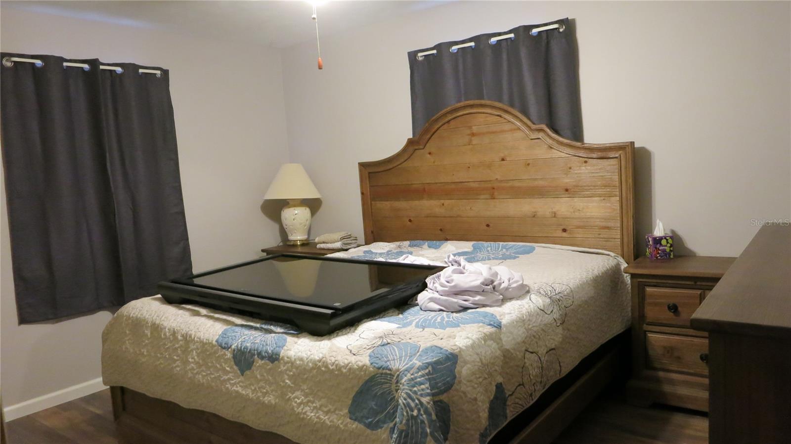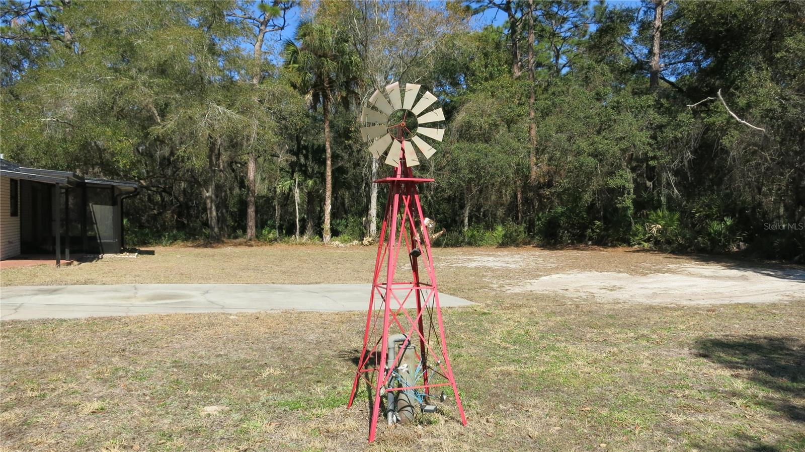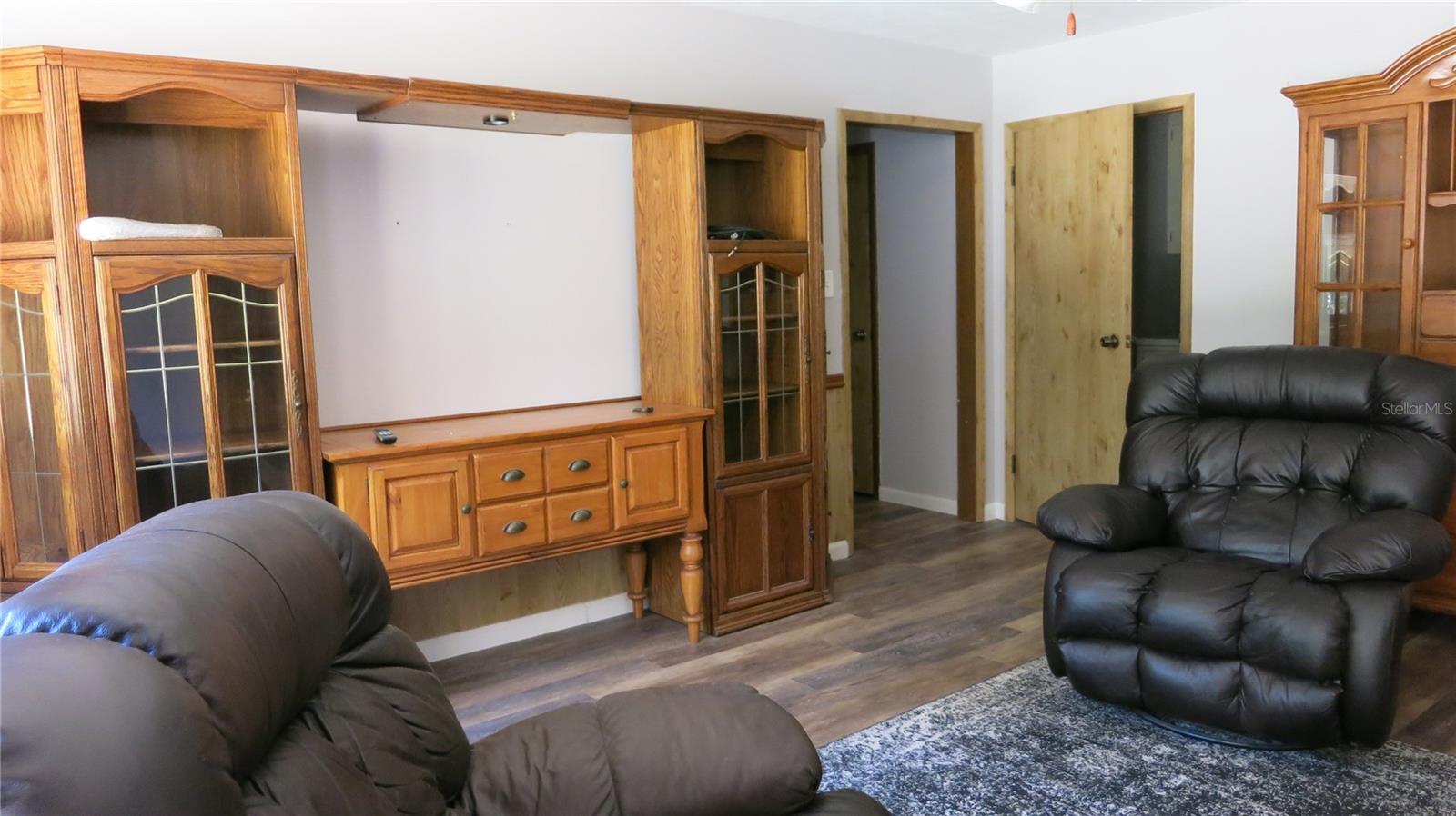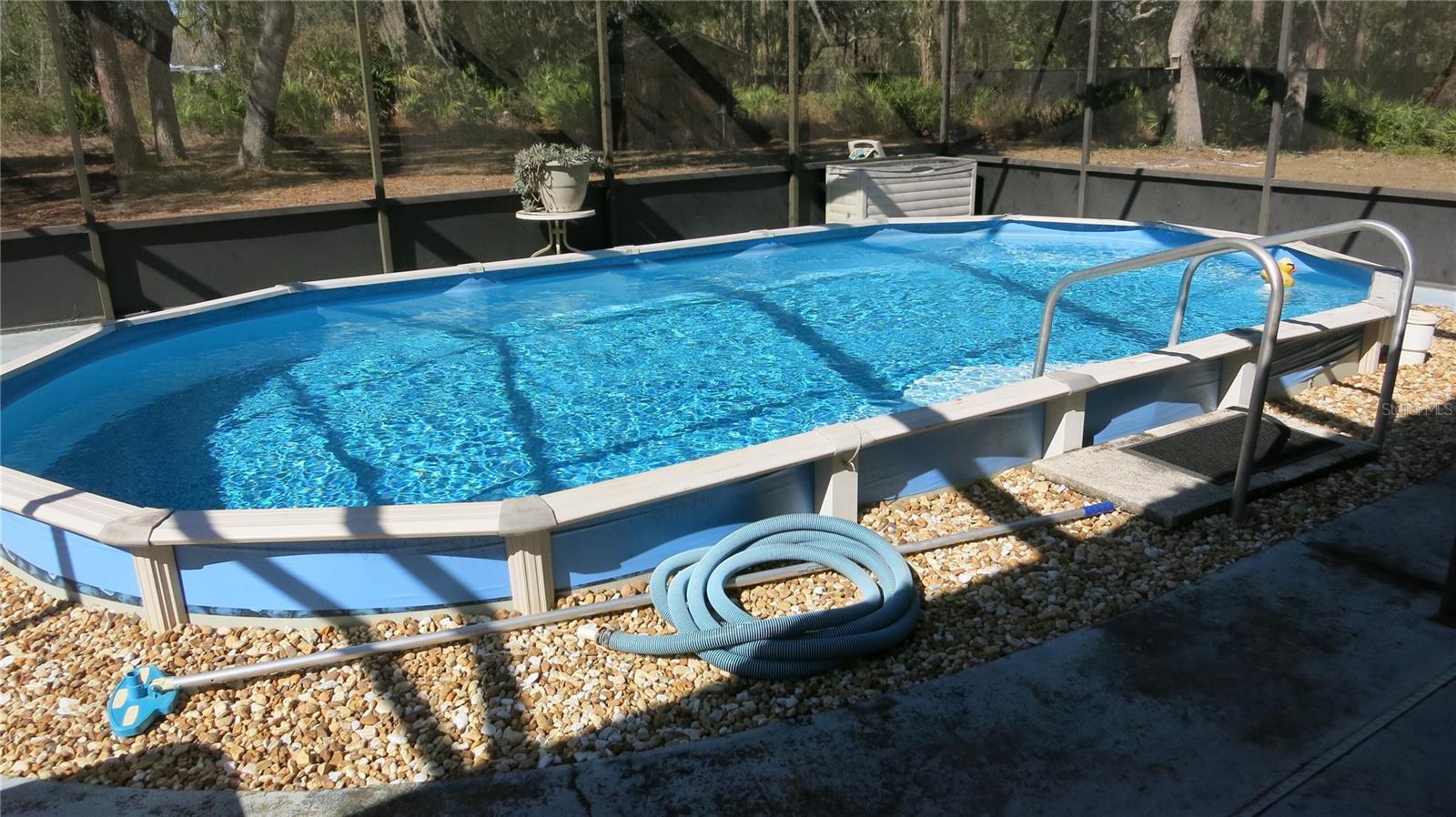 Ready to move right in! This beautiful, well-maintained home comes fully furnished. On nearly 1/2 acre with no HOA it's the last home on the dead-end road. Relax by the pool in the screened-in lanai, looking out to the big backyard. No restrictions, bring your trailer, RV, boat & pets. Beautifully updated kitchen with wood cabinets, stainless steel appliances & pantry, inside laundry room with washer & dryer included. Separate living room & family room. Bedrooms feature built-in cabinets. Plenty of storage! Part of the garage was finished for the 3rd bedroom, leaving an 8 x 15 storage/work room.