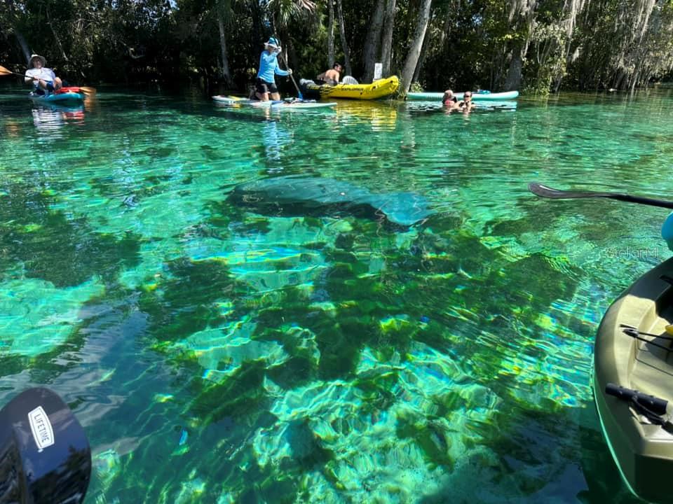 Welcome to your private waterfront oasis just five houses from the world-famous Three Sisters Springs, where manatees gather from all over Florida. During winter, hundreds of manatees can be seen gliding gracefully through the canals. This beautifully updated 2BR/2BA retreat offers a rare natural shoreline where manatees often swim right up to feed—sometimes with a mama and calf just steps away. Step into the water from your backyard and swim with the manatees or launch your kayaks, with a convenient outdoor shower to wash off afterward. Inside, coastal charm meets modern luxury with terrazzo floors, faux wood blinds and cool colors throughout. Step into an oversized living room that is perfect for entertaining. The kitchen and living room overlook an expansive great room with panoramic waterway views. This chefs kitchen features solid wood soft-close cabinetry with glass accents, slide-out shelving, and granite counters. There is a custom coffee bar, pantry and a 13-ft bar with pop-up outlets and elegant lighting—ideal for holidays and hosting friends and family. The expansive primary bedroom easily accommodates a king-size set and flows into a spa-like ensuite with an oversized Zen-like shower with frameless glass and two separately controlled showerheads. Complete with granite double vanities, lighted anti-fog mirrors, and a Bluetooth exhaust fan with music. The suite also includes two closets, one being an oversized walk-in. The bathroom features a door with interior blinds that opens directly to a beautiful oasis and waterway view. The spacious guest bedroom offers plenty of room, while the guest bathroom features custom cabinets, granite countertops, and a backlit anti-fog mirror. Unwind with a good book and bath bomb in the deep soaking tub. Updates include a 2019 roof, new stainless appliances, washer/dryer, two new water heaters, upgraded electrical, and new mini-split AC units with individual room controls. The garage fits two cars deep and two wide with an air-conditioned bonus area, plus a two-car carport adorned with massive decorative staghorn ferns. Ideal for seasonal or full-time vacation living, the home can be offered furnished and ready to enjoy. You can savor morning coffee on the back patio surrounded by herons, hawks, blue jays, eagles, and manatees or enjoy the breathtaking sunsets from your screened-in front patio and finish off Moonlighting in your hot tub. Walk to downtown for waterfront dining, live music, and boutique shopping—or take a short drive to beaches and boating. This home is a true waterfront getaway, offering the ultimate Crystal River lifestyle with manatees, wildlife, and endless water adventures.