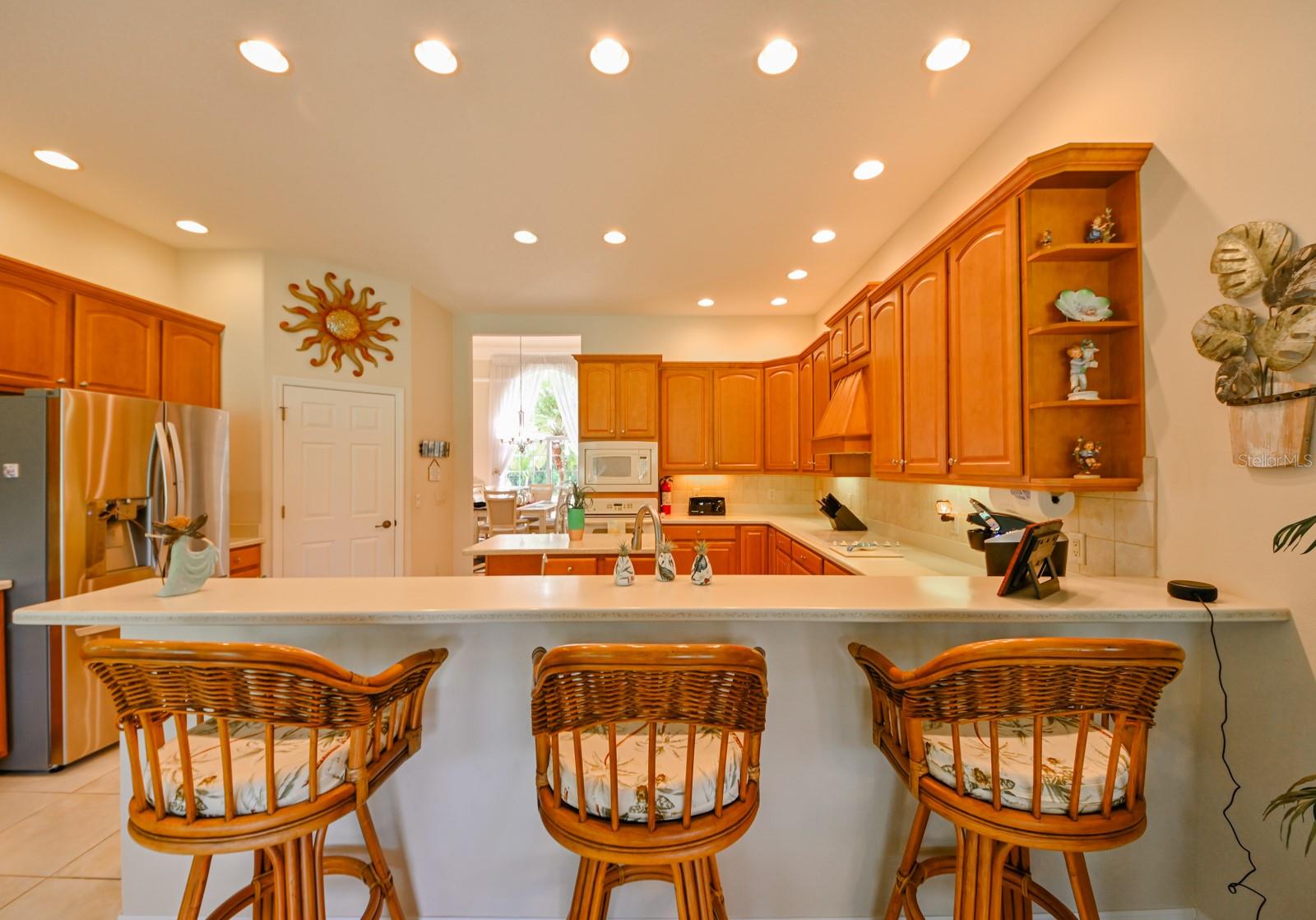 Price Reduced! Experience the pinnacle of golf course living at its finest with this stunning home situated on Hole #6 of the Plantation Golf Course, impeccably maintained and has never flooded. Offering versatility as a short-term rental, this property provides access to the Plantation Pool and other amenities. This home features a fully heated and air-conditioned garage, accommodating two cars and a golf cart with ease. The kitchen seamlessly integrates with the family room, complemented by a charming breakfast area and a spacious walk-in pantry. Boasting three bedrooms, three full baths, and a sizable den/fourth bedroom, there's ample space for comfortable living. The house is adorned with durable 30-year shingles. Outside, the driveway and expansive lanai are adorned with elegant pavers. HVAC is optimized with three zones, with heat pumps recently replaced in both 2021 and 2022. Don't miss the chance to behold this exquisite property firsthand, this beauty must be seen…