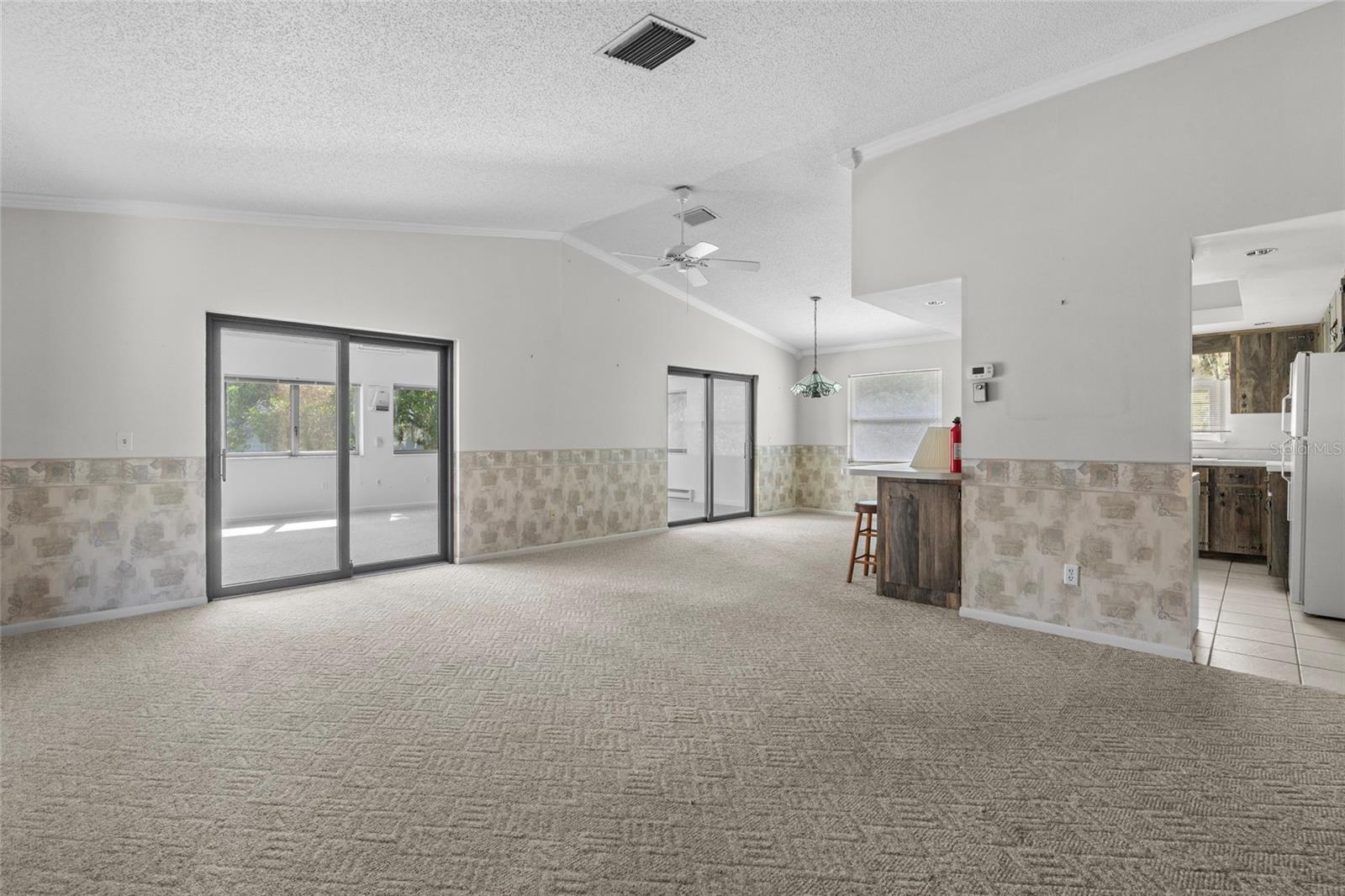 5 CAR GARAGE!!!!! Sellers willing to contribute concessions! Nestled amidst the pristine greens of Seven Rivers Golf and Country Club, this exceptional 3-bedroom, 2.5-bathroom home offers an unparalleled blend of privacy and convenience. Boasting a generous setback, it provides a tranquil sanctuary away from the hustle and bustle. Step inside and be greeted by a single-story floor plan that exudes comfort and functionality. To the right, the living and dining areas invite you to relax and entertain, while the private office provides an ideal workspace. On the left, the primary bedroom beckons with a spacious layout and luxurious ensuite bathroom. Two additional bedrooms ensure ample space for family or guests. The home's highlight is its 5 CAR GARAGE & expansive screened-in patio, offering breathtaking views of the golf course. Immerse yourself in nature as you sip your morning coffee or unwind after a long day, surrounded by the serene beauty of the surroundings. Beyond its exceptional features, this home is situated in a phenomenal community that seamlessly blends tranquility with convenience. It's located less than 10 minutes from shopping and dining, and just a short ride away from the pristine beaches. This exceptional property is the perfect choice for those seeking a luxurious and carefree lifestyle in a picturesque setting.