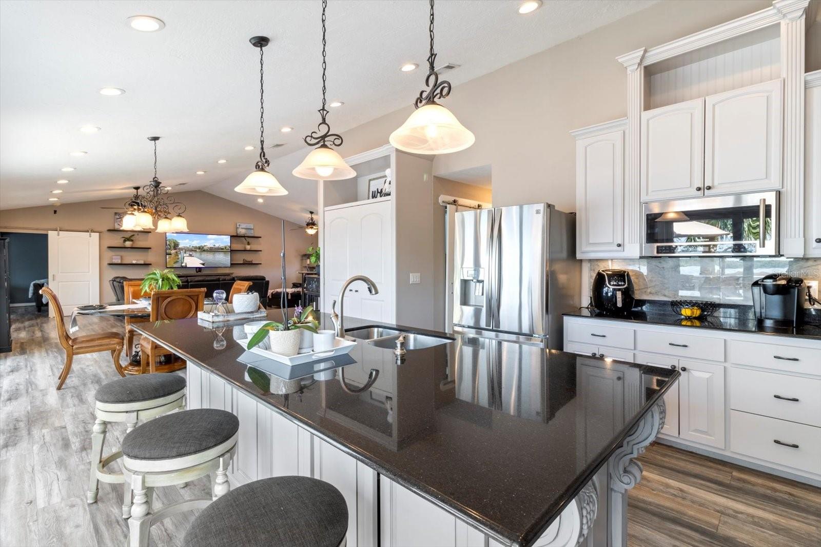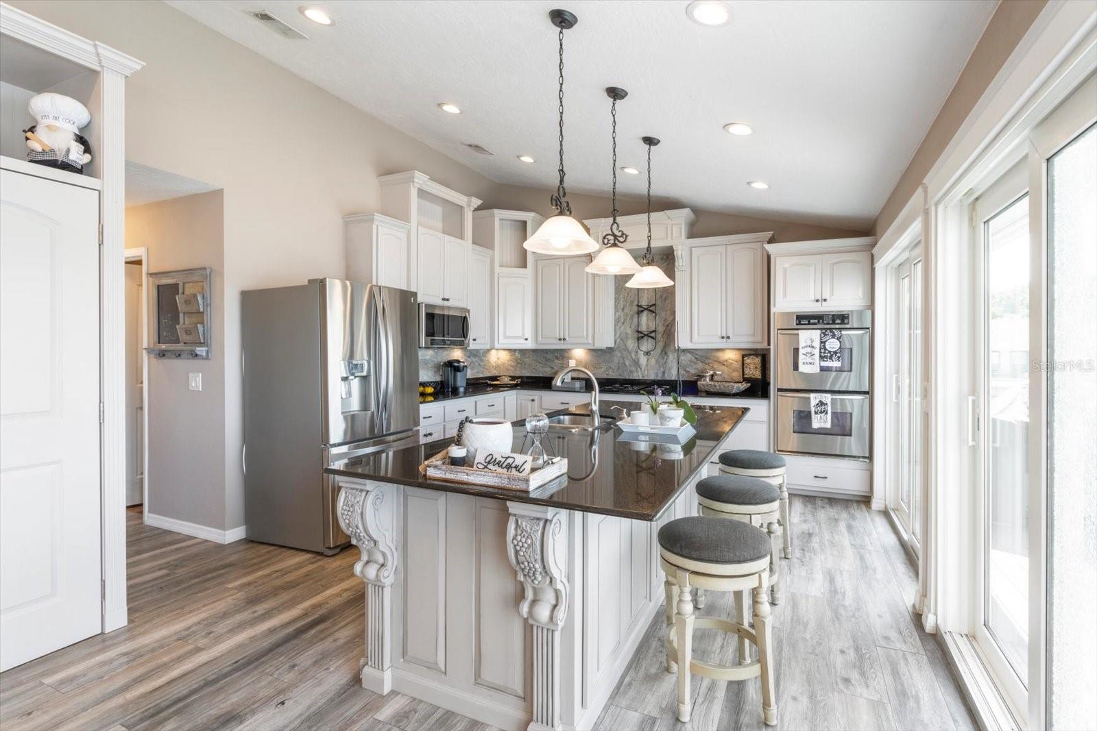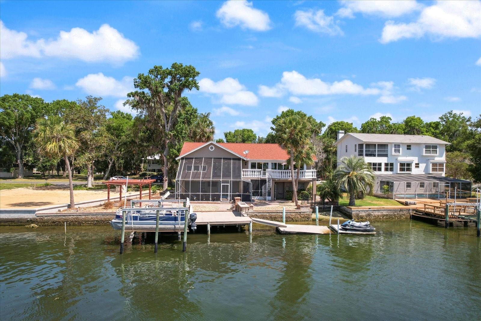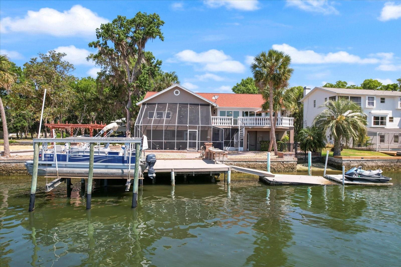 Directly on the Crystal River with an expansive view! Custom built POOL home in 1990, 3/2 upstairs with a gorgeous kitchen featuring wood cabinets and granite counter-tops. Vinyl plank flooring throughout, spacious primary bedroom with updated master bath. Tons of windows on the water side to enjoy the manatee swimming by! Downstairs features bonus space with a bedroom, full bath, media room and family room. Over 2800 sq ft upstairs with total under roof, per county, of 4144 square feet. Sea-doo platform, dock with lift plus a floating dock. Outside Pergola and propane fire pit. Screened porch off primary bedroom and large deck area outside. Coveted area inside the City limits of Crystal River where Golf Carts are welcome. Near downtown shopping and the expanding restaurant scene. A great place to live and play!