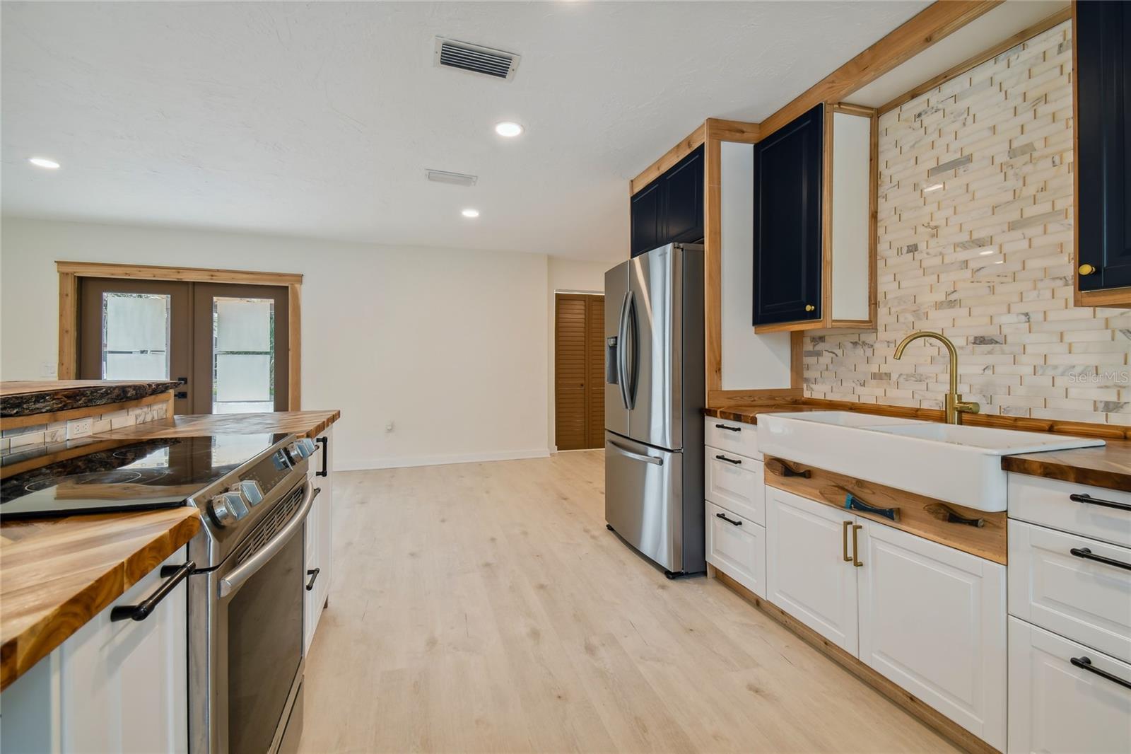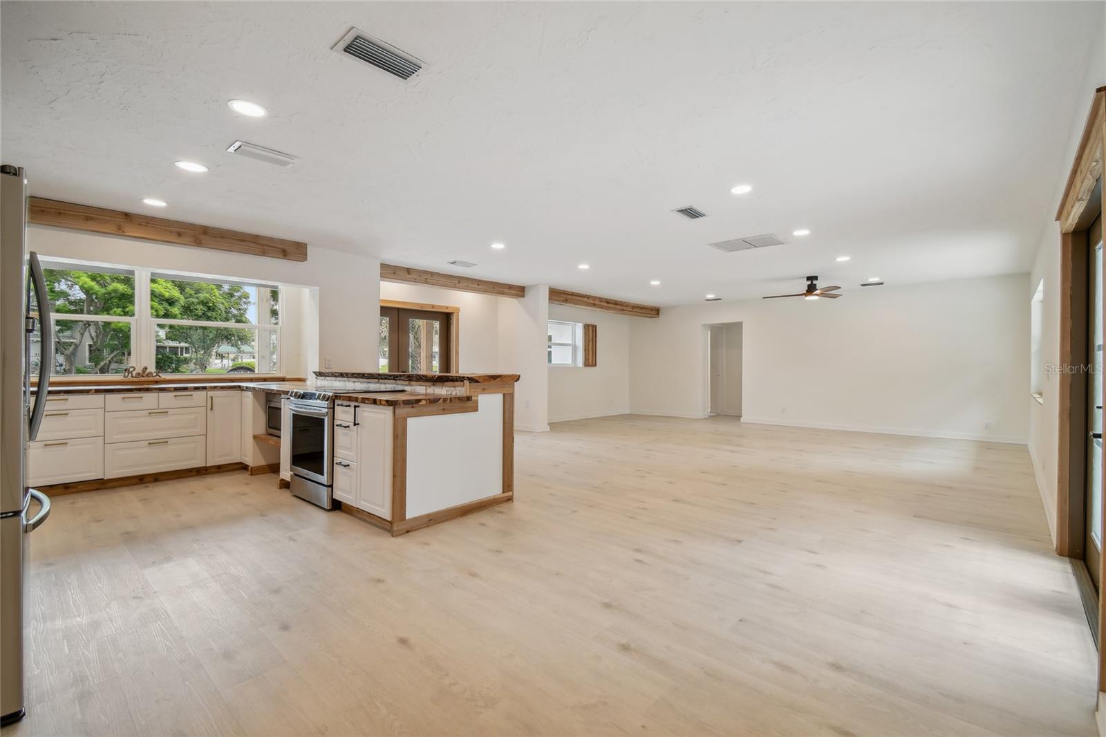 This FULLY REMODELED waterfront home combines unmatched privacy with picturesque panoramic water views to create the perfect place to call HOME. Enjoy the waterfront lifestyle on this oversized .36 acre lot located at the end of a dead-end street with 260ft seawall, 2 floating docks, and built-in boat slip. Located just 2 houses from Kings Bay, spend your days exploring the springs, swimming with the manatees, eating at waterfront restaurants, and fishing the Gulf of Mexico. Welcoming you to the home is a large circle drive, tropical landscaping and accents, front porch with exposed wood pergola, and double lite front doors. Stepping inside, sleek waterproof plank floors flow throughout the open living area, custom cedar millwork accentuates the home, and EVERY ROOM HAS VIEWS OF THE WATER. The custom kitchen features 2-tone cabinetry with cedar trim, fully tiled backsplash, white farmhouse sink, gold accents, butcher block counters, stainless appliances, walk-in pantry, and live-edge bar top overlooking the living room and backyard. A split bedroom floor plan incorporates a large master bedroom with custom walk-in closet and fully remodeled en-suite bath featuring double vanity, tiled backsplash, backlit mirror, waterproof flooring, and fully tiled shower. The highlight of this home is the expansive backyard with open patios, wide-open water views in every direction, large fire pit, boat slip, massive open yard, bar top, and kitchen stub-out. Feel safe with all brand new impact windows, doors, and garage door. Additional notes: All 3 bathrooms remodeled, hand textured walls/ceilings, new fixtures, new LED lighting, new switches and plates, new doors, new baseboards and trim, new fans, new paint inside/out, new stucco, new gas water heater, and new gutters. Clear 4-point inspection and survey are available. Start living the waterfront life today!