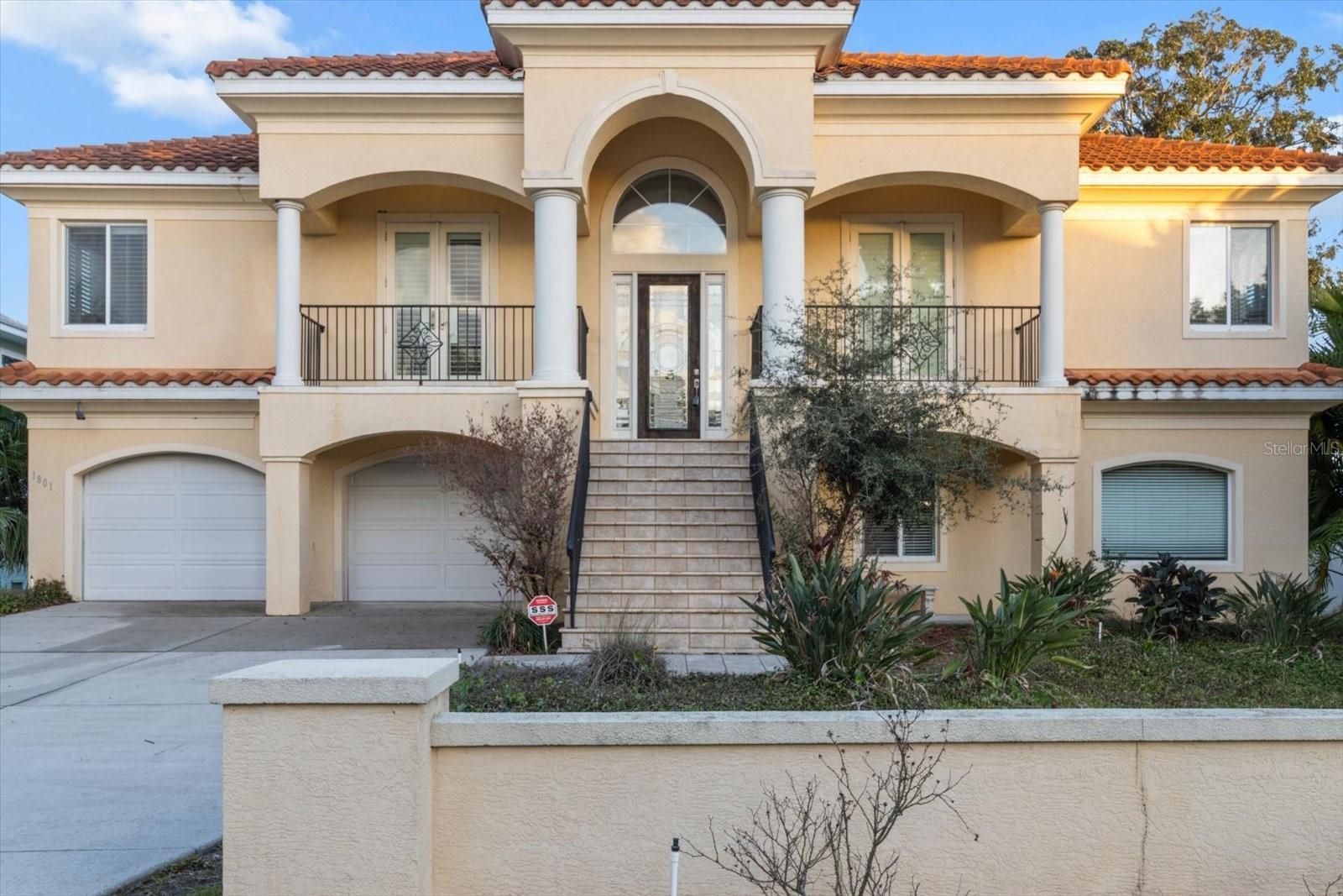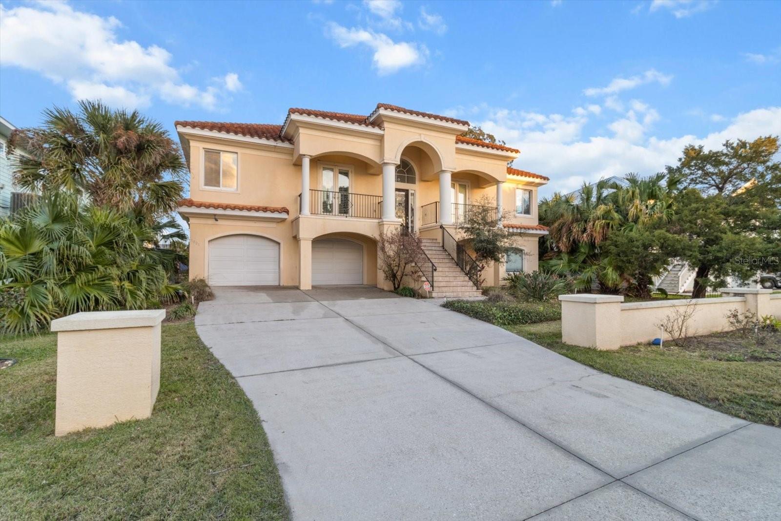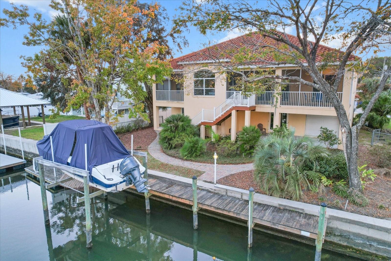 Spectacular Custom Built Stilt home on the Grand Canal in Woodland Estates! Stunning Mediterranean exterior with tile roof, grand entrance, built on pilings. 3 bed, 2.5 baths, office, open floorplan, split bedroom, garage doors on front & rear. City Amenities, custom built in 2008. Elevator shaft, central vaccuum. No Flooding here! Dock with 10,000 lb. lift, concrete seawall! Included in sale is a 23ft. Wellcraft boat with 250 hp Yamaha motor!