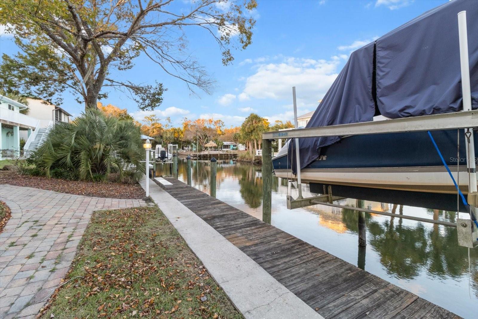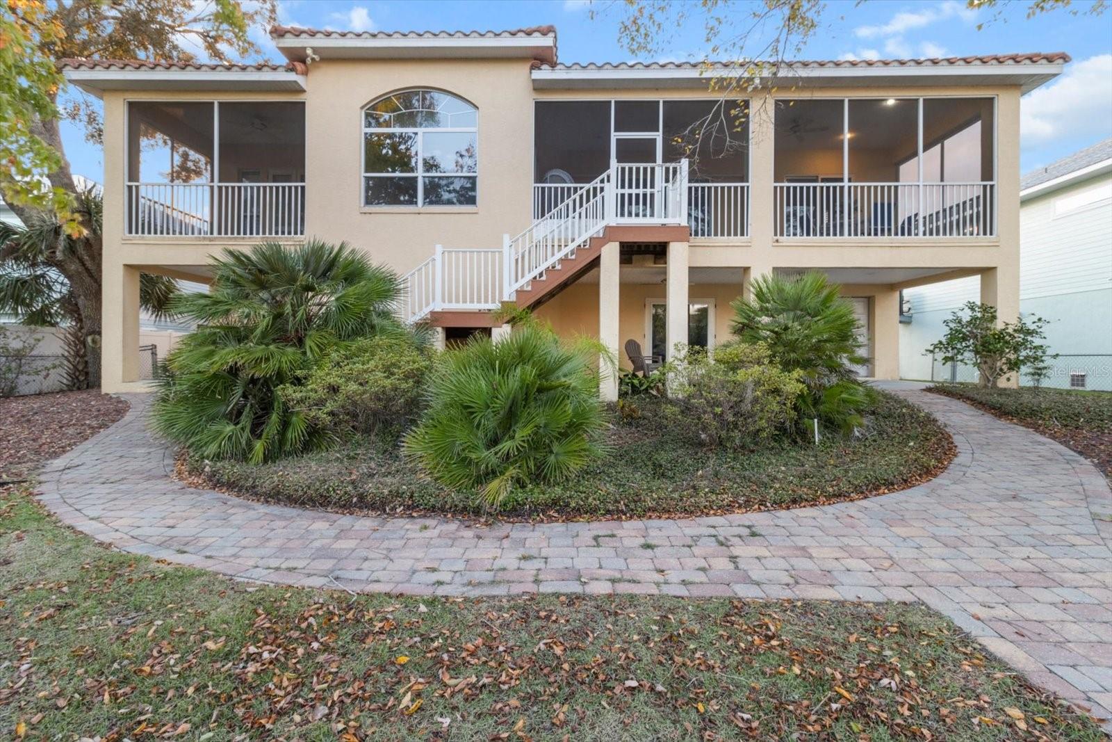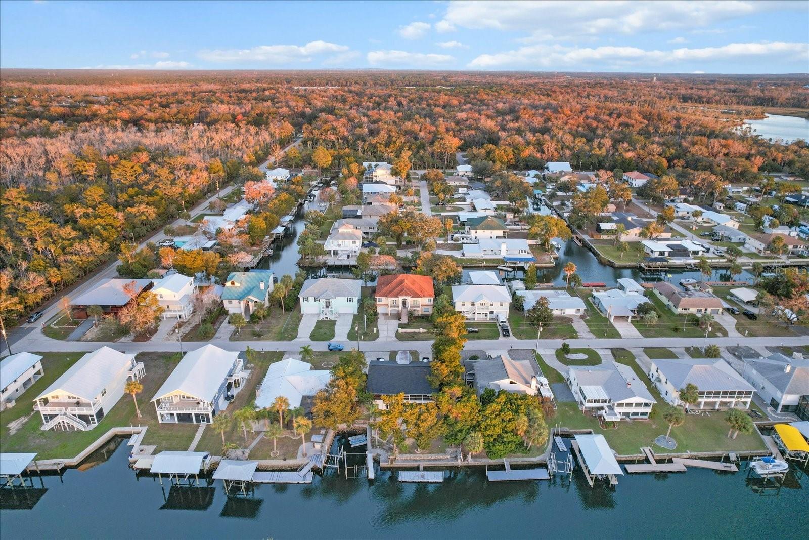 Spectacular Custom Built Stilt home on the Grand Canal in Woodland Estates! Stunning Mediterranean exterior with tile roof, grand entrance, built on pilings. 3 bed, 2.5 baths, office, open floorplan, split bedroom, garage doors on front & rear. City Amenities, custom built in 2008. Elevator shaft, central vaccuum. No Flooding here! Dock with 10,000 lb. lift, concrete seawall! Included in sale is a 23ft. Wellcraft boat with 250 hp Yamaha motor!