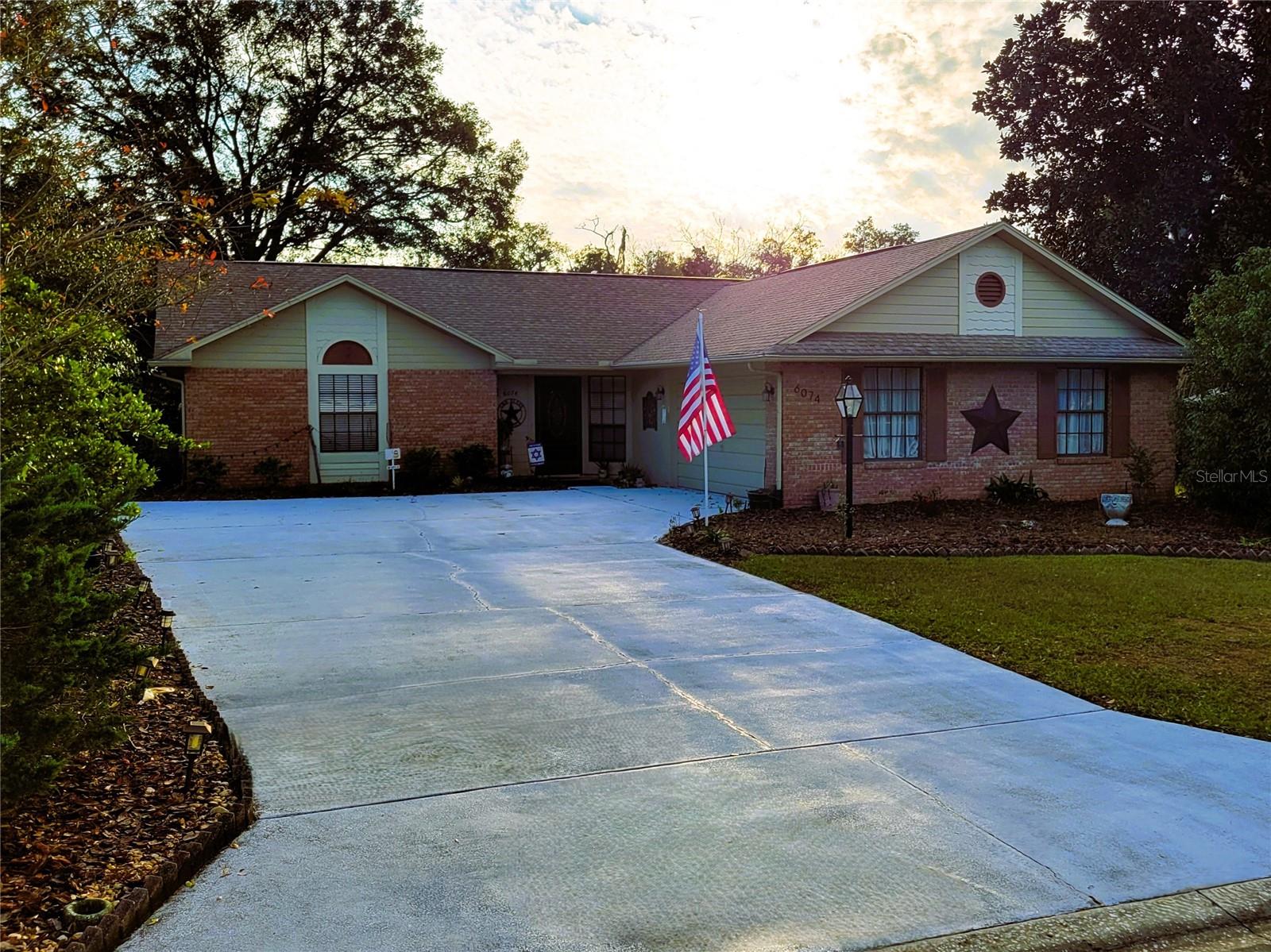 Welcome to Meadowcrest: Live the Resort Lifestyle like you are on a permanent vacation! Meadowcrest comprises five villages of residential homes in the Nature Coast city of Crystal River, 80 miles north of Tampa on Florida's Gulf Coast. Imagine a meadow transformed into gently rolling hills with majestic old oak trees, winding roads, and homes perfectly situated. Add small ponds, fountains, walkways, and abundant wildlife – fish, turtles, great blue herons, egrets, and more – all basking in the Florida sunshine and blue sky. This lovely 3-bedroom home is beautifully landscaped on an oversized lot. The open living and dining area is just off the kitchen, featuring a breakfast bar and dining space. The main bedroom suite has a private bath with a garden tub and is separated from the other bedrooms for added privacy. The third bedroom has glass sliding doors to the Florida room, making it an ideal office space that flows into the jumbo Florida room—perfect for a library, sunroom, or extra bedroom. Step out onto the back patio to enjoy the beautifully landscaped garden, ideal for a BBQ and soaking up the sun. A generous utility room with a washer and dryer offers plenty of storage, leading to the large two-car garage. This home is conveniently located near medical facilities, shopping, dining, and the Suncoast Parkway, providing easy access to all Florida offers. This home is a short stroll to the pool and clubhouse, which includes amenities such as a park with walking trails, tennis courts, a horseshoe area, a bocce ball court, shuffleboards, gardens, waterfalls, and fountains. Ready to live the Florida lifestyle?