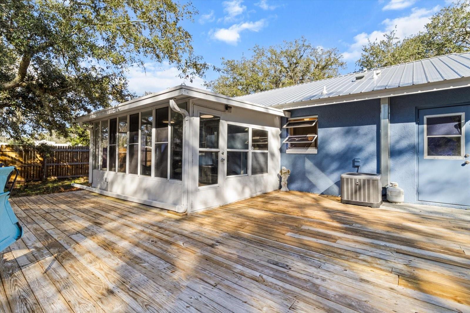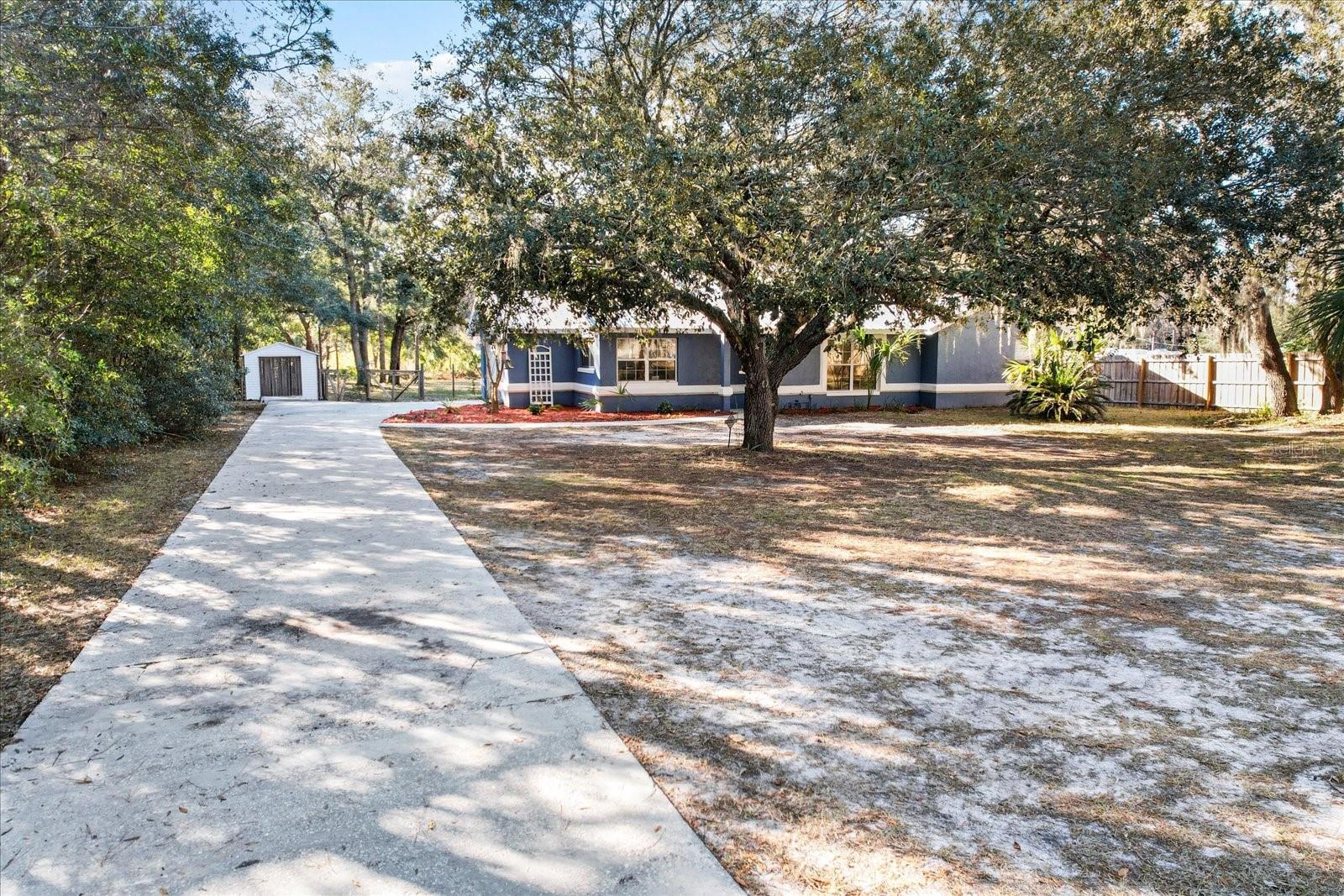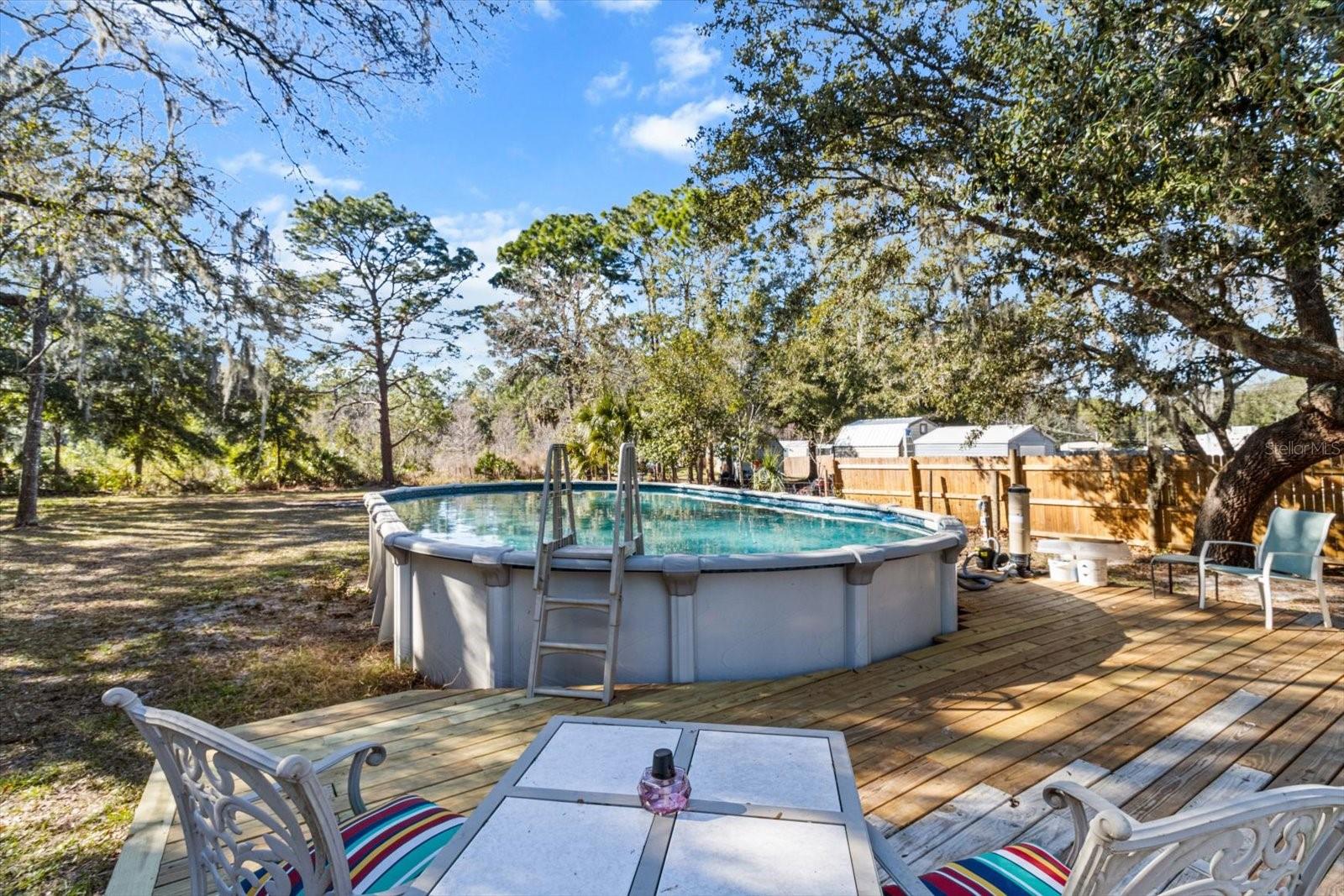 SWEET SERENITY! This 3 BD/2 BA, 1351sqft home is quietly tucked away in a small, charming subdivision that offers a perfect blend of beauty and peace, yet less than a mile from the main thoroughfare to all the conveniences that Crystal River has to offer. Set back about 200ft from the road and surrounded by beautiful oaks and shade trees, the backdrop is set and your interest is piqued. The sleek metal roof and the vibrant colors of the home’s exterior make an inviting impression. Upon entry, the flow of the floorplan is both efficient and accommodating, while the vaulted ceiling, neutral colors and laminate flooring throughout provide a cohesive look. The freshly painted master bedroom boasts an ensuite with a walk-in closet and marble, garden tub. The kitchen features clean, simple lines with white cabinetry, plenty of countertop space, a peninsula, tiled backsplash and closet pantry. The dining area slider opens to an enclosed sunroom where morning coffee is savored, good books are enjoyed, and nature is appreciated. The sunroom opens to a LARGE 33’ x 49’ wooden deck which can then only lead to one place…THE POOL! A LARGE 18’ x 33’ above ground pool was installed in 2021. Plenty of room to move around on 1.22 acres, so don't forget your boat and all your toys! NO HOA & NO DEED RESTRICTIONS! As if it couldn’t get any better, this location is truly amazing; being situated just outside the city limits, short-term rentals (VRBO & Airbnb) are allowed. Two public boat launches directly into Kings Bay are less than 10 minutes away. Downtown Crystal River is about 5 minutes away for shopping and restaurants. Three Sister Springs and Hunter Springs Park are only 4 miles away for boating, fishing, beautiful nature walks & the only place to SWIM W/ THE MANATEES! A FREE 1-year HOME WARRANTY for PEACE OF MIND is OFFERED to the BUYER!