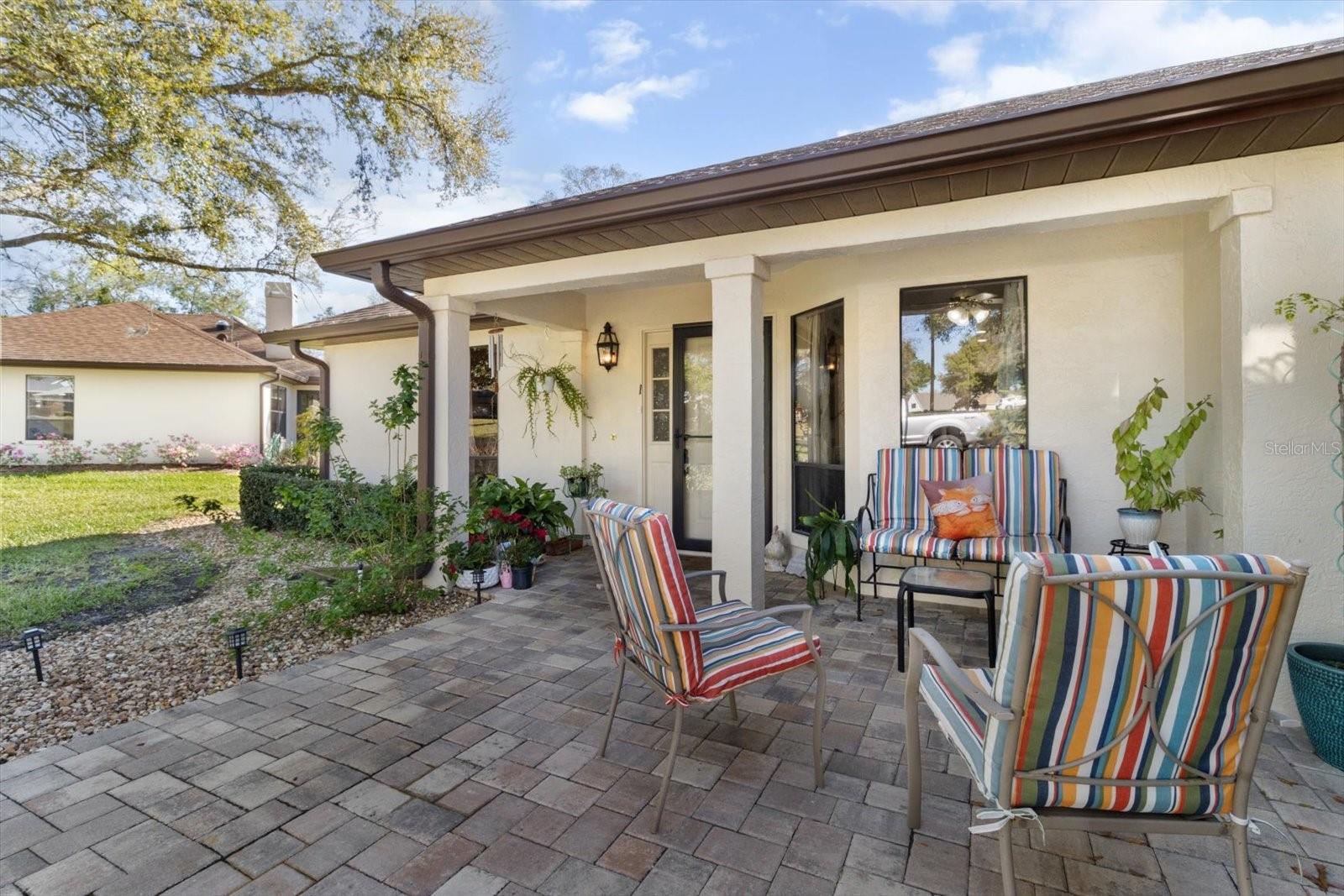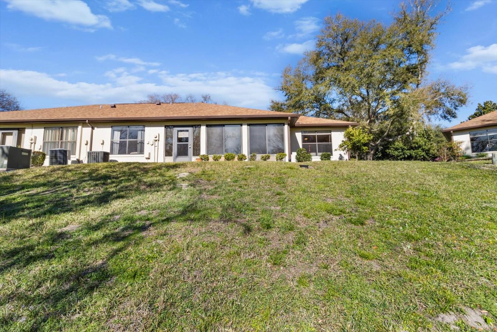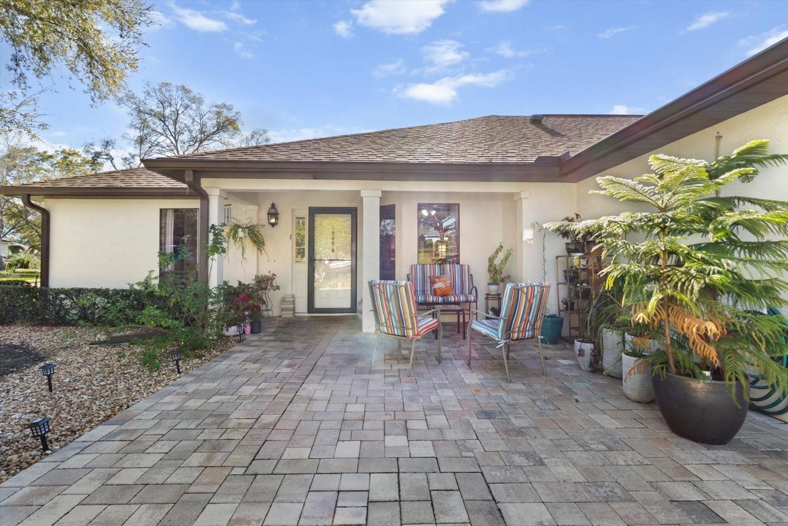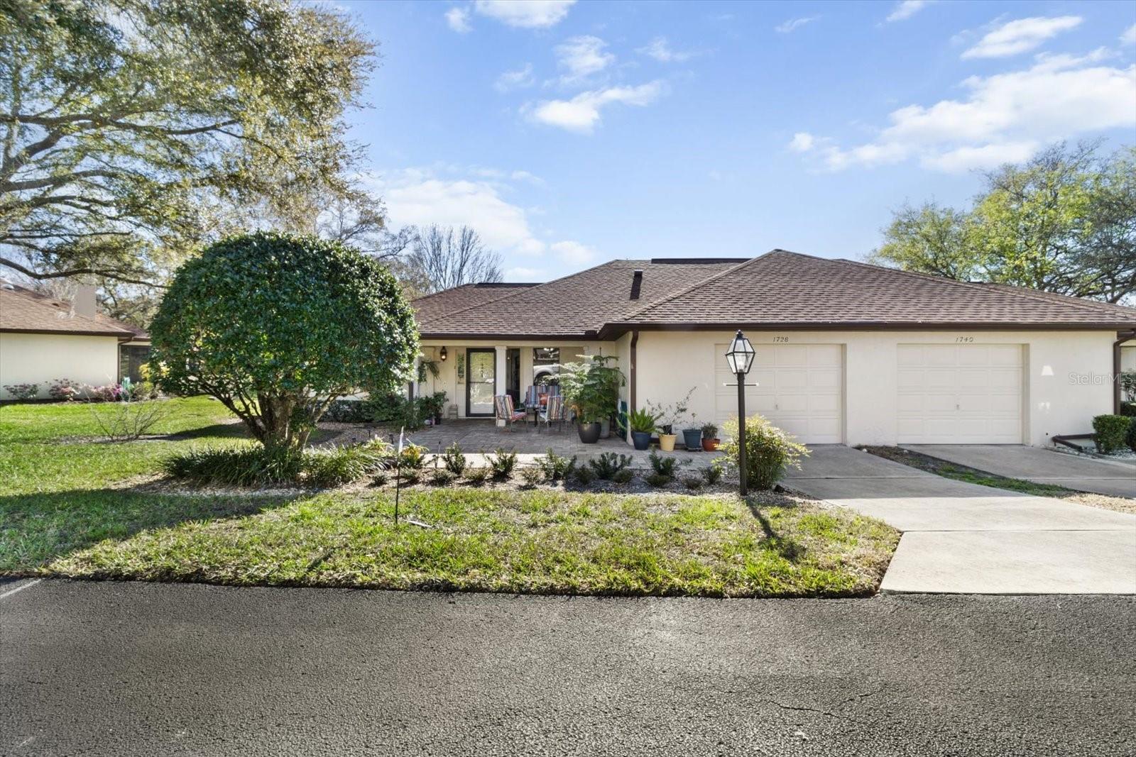 This beautifully updated villa offers modern upgrades, stylish finishes, and a fantastic layout with two master suites, each featuring walk-in closets for ample storage. The open living area is enhanced with porcelain tile flooring, while the kitchen shines with finished counter tops, newer appliances, and elegant canned lighting in both the kitchen and bedrooms. Step outside and enjoy the expanded front patio with pavers, for relaxing or entertaining. The beautiful lanai offers a serene retreat with a great view, easily accessed through French doors. Additional upgrades include a new roof (2022), a new storm door, a new breaker panel, extra wide gutters, and a pull-down attic ladder for extra storage convenience. The exterior was freshly painted in 2023, giving the home a fresh and inviting look. Plus, the HOA fee has been paid for an entire year—a fantastic bonus! With a water heater replaced in 2017 and thoughtful updates throughout, this villa is move-in ready and waiting for you. Don’t miss this incredible opportunity—schedule your showing today