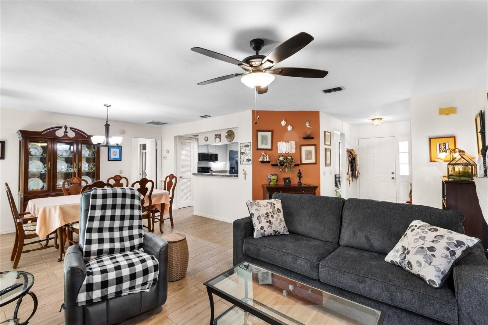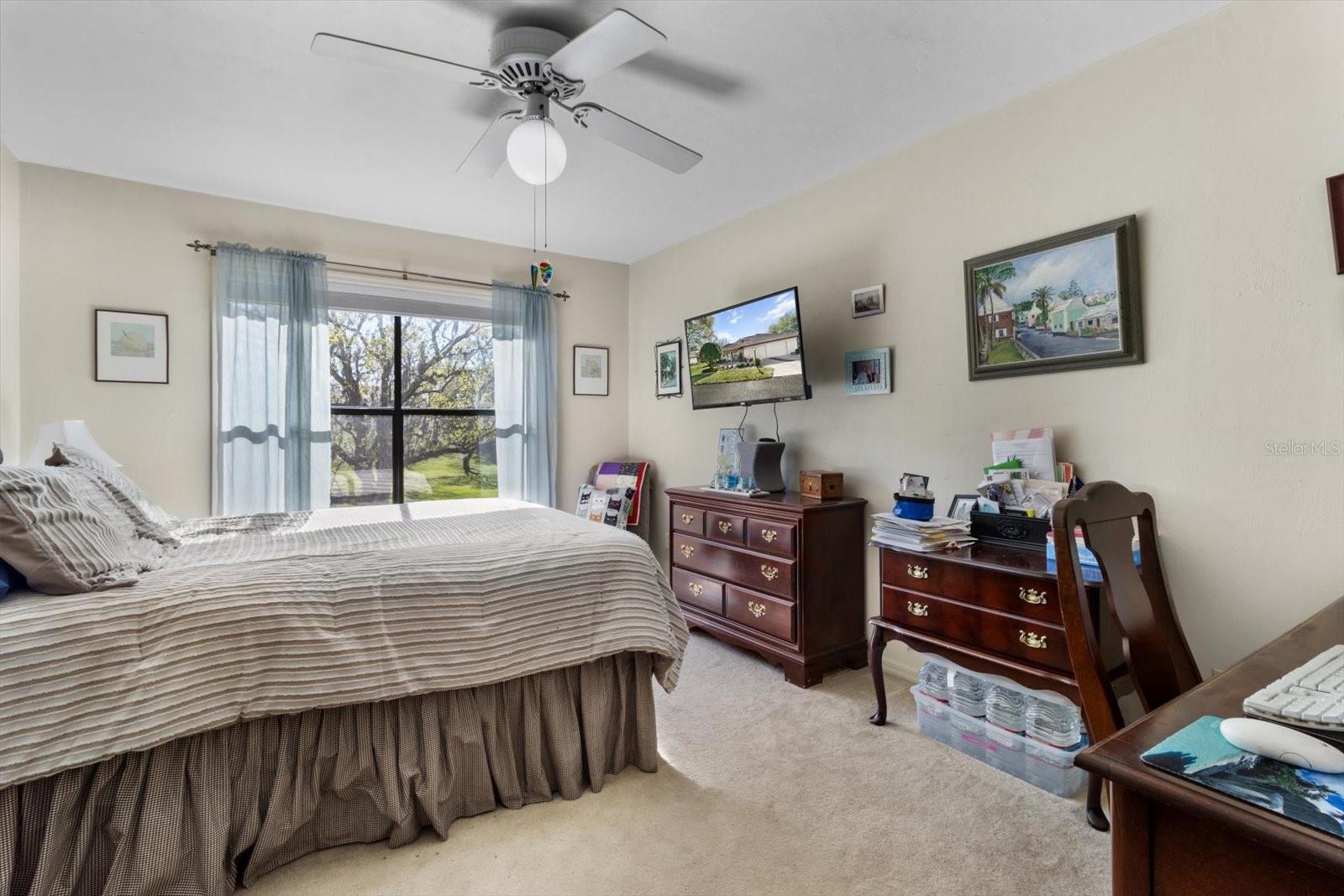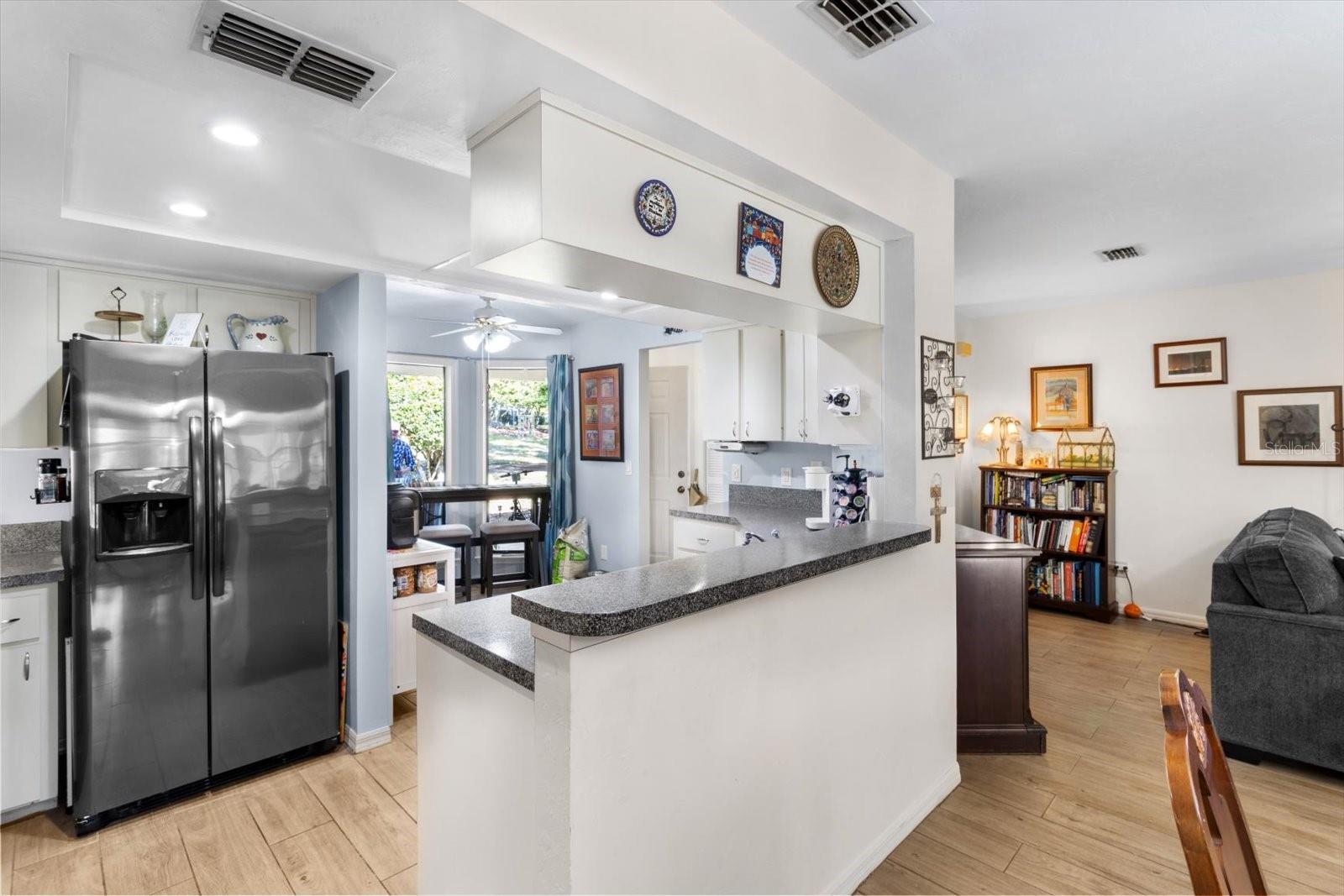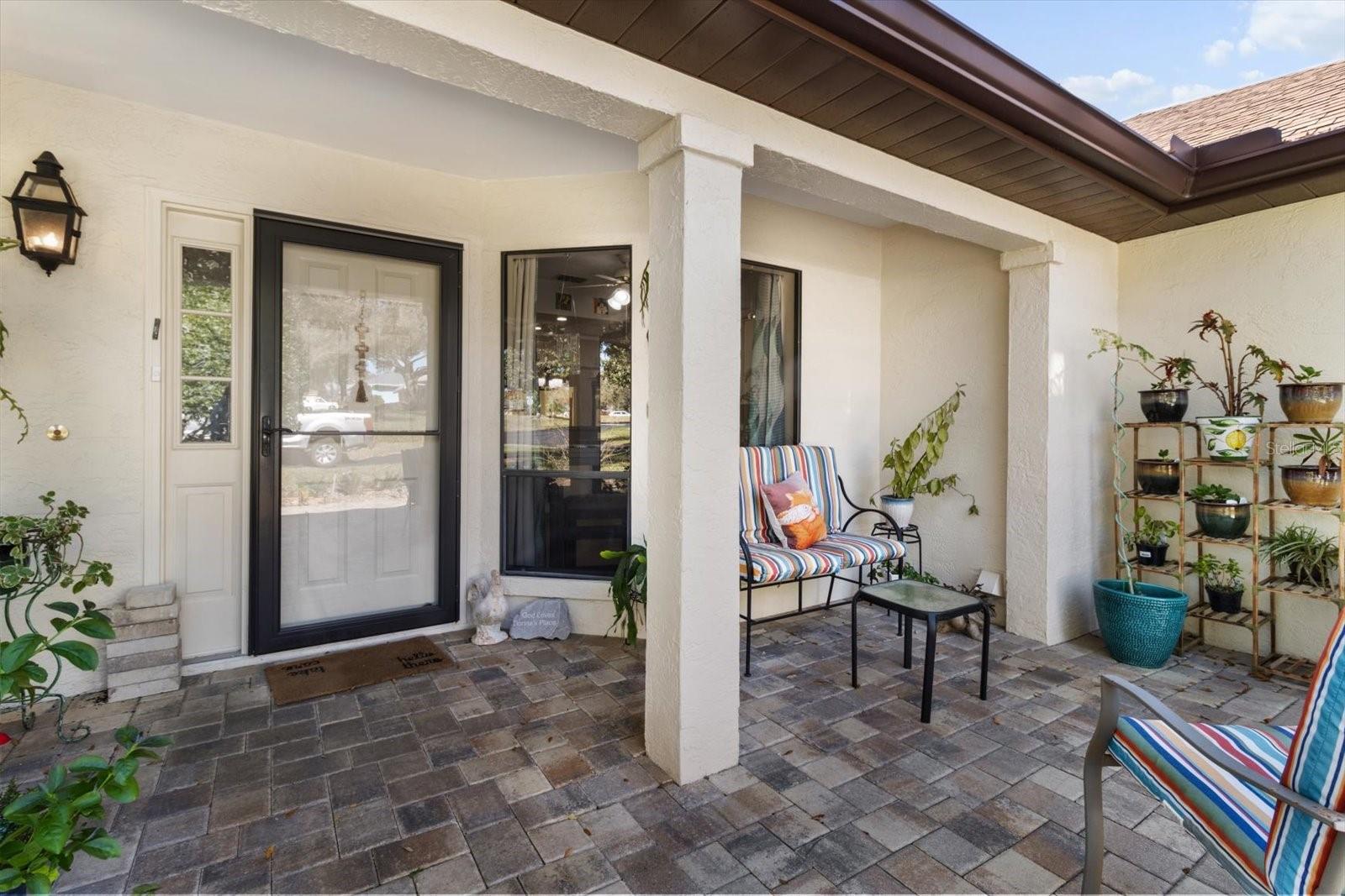This beautifully updated villa offers modern upgrades, stylish finishes, and a fantastic layout with two master suites, each featuring walk-in closets for ample storage. The open living area is enhanced with porcelain tile flooring, while the kitchen shines with finished counter tops, newer appliances, and elegant canned lighting in both the kitchen and bedrooms. Step outside and enjoy the expanded front patio with pavers, for relaxing or entertaining. The beautiful lanai offers a serene retreat with a great view, easily accessed through French doors. Additional upgrades include a new roof (2022), a new storm door, a new breaker panel, extra wide gutters, and a pull-down attic ladder for extra storage convenience. The exterior was freshly painted in 2023, giving the home a fresh and inviting look. Plus, the HOA fee has been paid for an entire year—a fantastic bonus! With a water heater replaced in 2017 and thoughtful updates throughout, this villa is move-in ready and waiting for you. Don’t miss this incredible opportunity—schedule your showing today