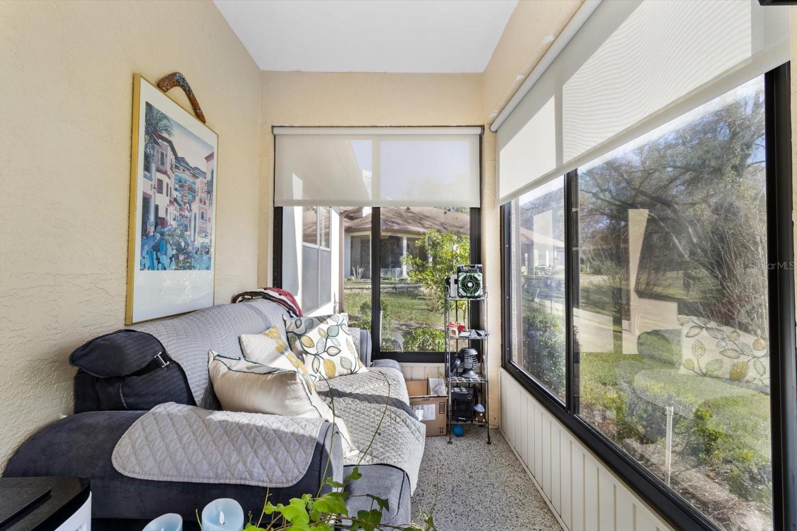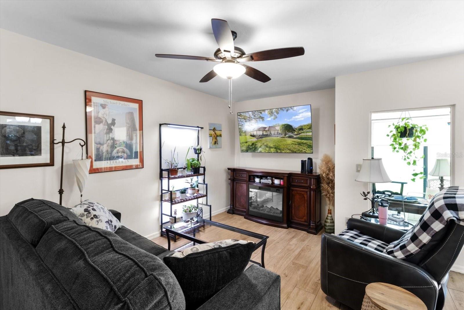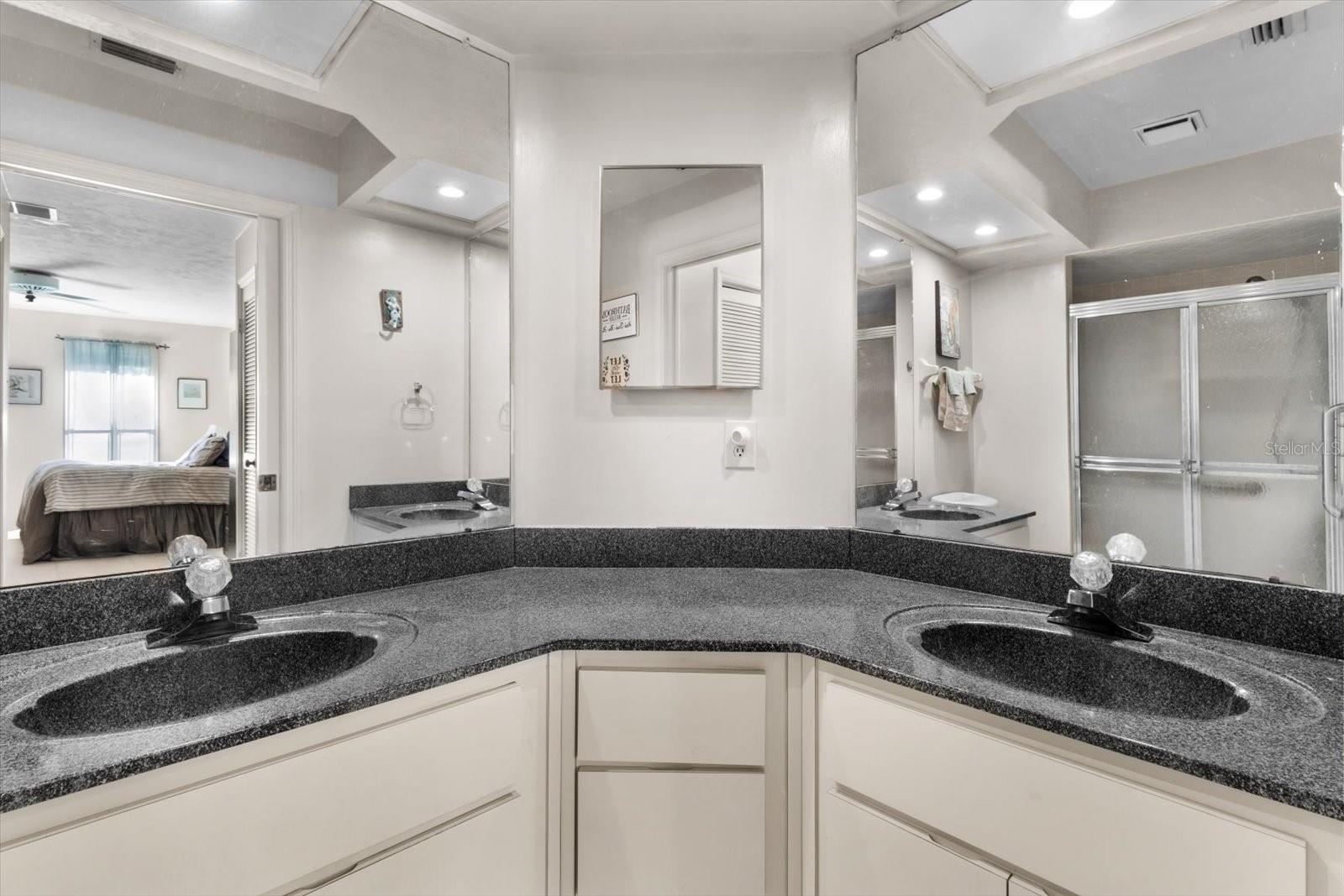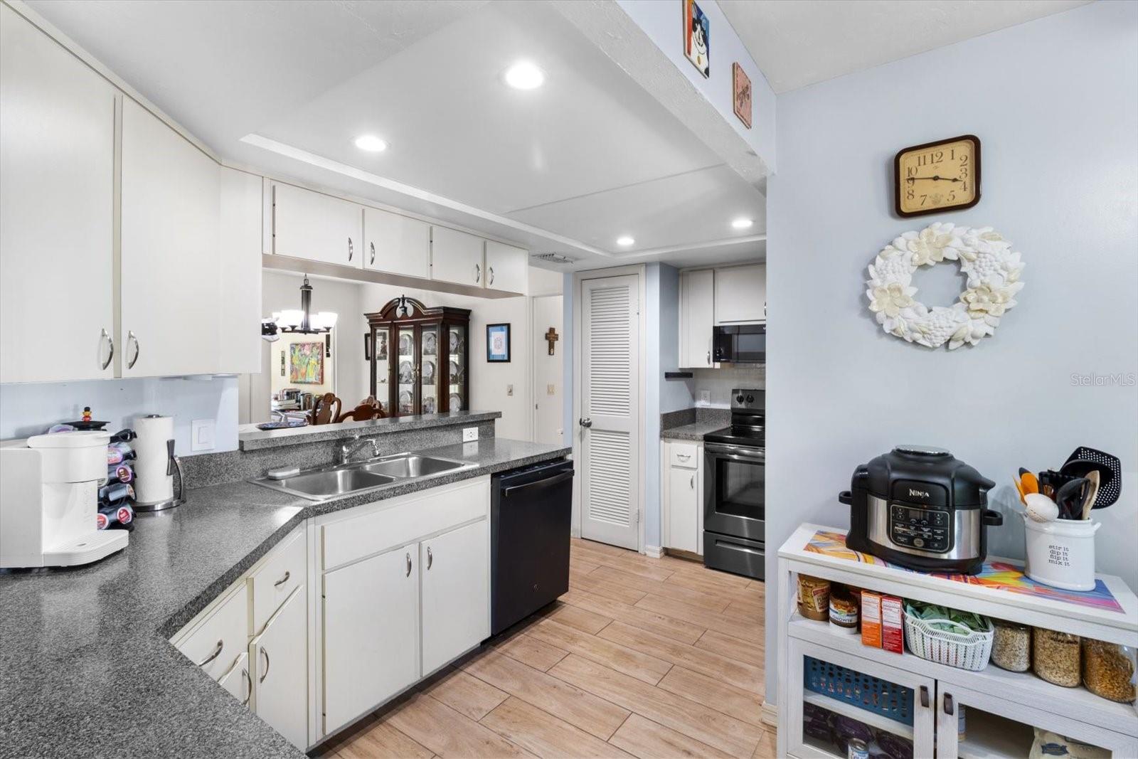 This beautifully updated villa offers modern upgrades, stylish finishes, and a fantastic layout with two master suites, each featuring walk-in closets for ample storage. The open living area is enhanced with porcelain tile flooring, while the kitchen shines with finished counter tops, newer appliances, and elegant canned lighting in both the kitchen and bedrooms. Step outside and enjoy the expanded front patio with pavers, for relaxing or entertaining. The beautiful lanai offers a serene retreat with a great view, easily accessed through French doors. Additional upgrades include a new roof (2022), a new storm door, a new breaker panel, extra wide gutters, and a pull-down attic ladder for extra storage convenience. The exterior was freshly painted in 2023, giving the home a fresh and inviting look. Plus, the HOA fee has been paid for an entire year—a fantastic bonus! With a water heater replaced in 2017 and thoughtful updates throughout, this villa is move-in ready and waiting for you. Don’t miss this incredible opportunity—schedule your showing today
