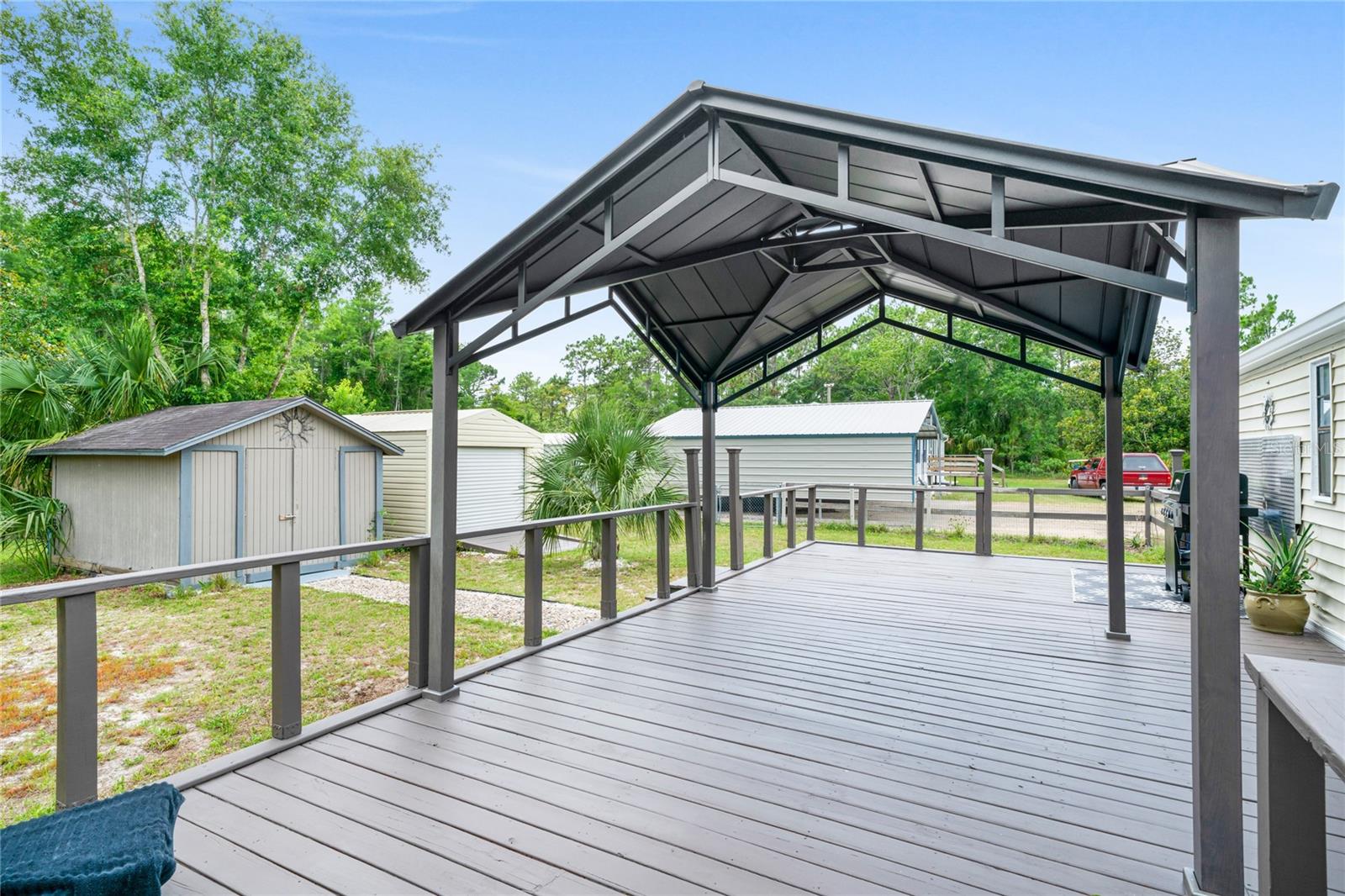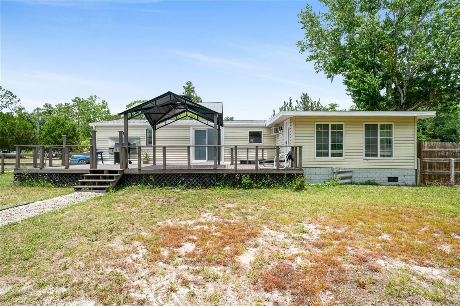Charming Income-Producing Home: Comfort Meets Opportunity! Discover an exceptional opportunity with this beautifully renovated manufactured home, perfectly situated on a generous 1.30-acre home site at the end of a quiet dead-end street. This income-producing property offers the POTENTIAL for Airbnb rental, opening doors to additional income streams. Enjoy financial independence and versatility while living comfortably. Step inside to find a host of modern upgrades. The home features stunning new tile flooring throughout, complemented by fresh interior and exterior paint for a bright, inviting atmosphere. The roof was recently replaced to ensure lasting protection and value. Septic maintenance was completed in 2025, offering added peace of mind. A spacious sunroom/enclosed lanai provides versatile space for an office, art studio, or relaxation area. The property includes three roomy bedrooms, giving everyone their own comfortable retreat. For added convenience, a large shed equipped with a washer and dryer makes laundry tasks easy and accessible, while an additional tool shed offers ample storage for equipment and hobbies. With NO HOA restrictions, you have complete freedom to personalize your property as you wish. TWO RV PARKING PADS with hook-ups are located at the back of the homesite, offering both extra convenience and the potential for additional rental income. The air conditioning system was replaced around 2019, ensuring reliable climate control year-round. This home is ideally located for both relaxation and outdoor adventure. The surrounding area brims with Gulf-side activities, such as paddleboarding, kayaking, swimming with manatees, and fishing in both the Gulf and nearby fresh waters. Land-based recreation opportunities include hiking and biking through scenic wildlife areas. Enjoy easy access to local shops, restaurants, and a welcoming community atmosphere. Schedule your visit today and experience the charm, comfort, and endless possibilities this exceptional property gives you!