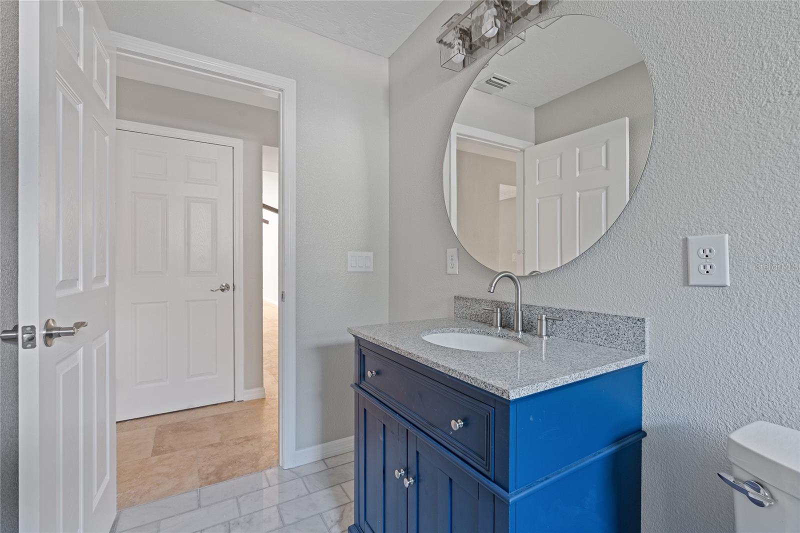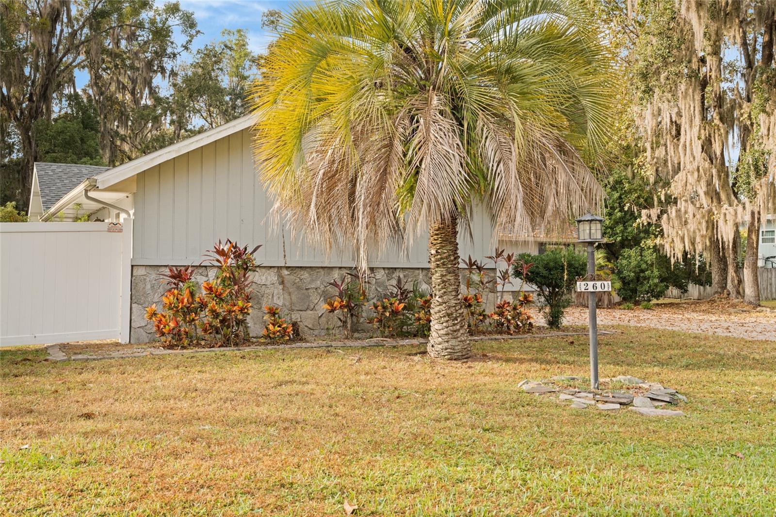 One or more photo(s) has been virtually staged. Beautifully updated 2BR/2BA, 1,640 sq ft home on a 0.44-acre corner lot in the Village of Picardy, featuring a new 2025 roof and a bright, open layout. The spacious living room showcases vaulted ceilings with exposed wood beams, tile flooring, and a striking stone wood-burning fireplace. The remodeled kitchen offers granite countertops, dark blue/white cabinetry, stainless steel appliances, breakfast bar, and pantry. The primary suite includes a walk-in closet and a modern bathroom with dual sinks and a glass walk-in shower with rain head. A tiled sunroom lined with windows provides extra living space year-round. Outdoors, enjoy a fully fenced backyard, pergola-covered patio, storage shed, side-entry garage, and additional parking pad. No HOA. Ideally located minutes from Hunter Springs, Three Sisters Springs, dining, shopping, and all that Crystal River has to offer.