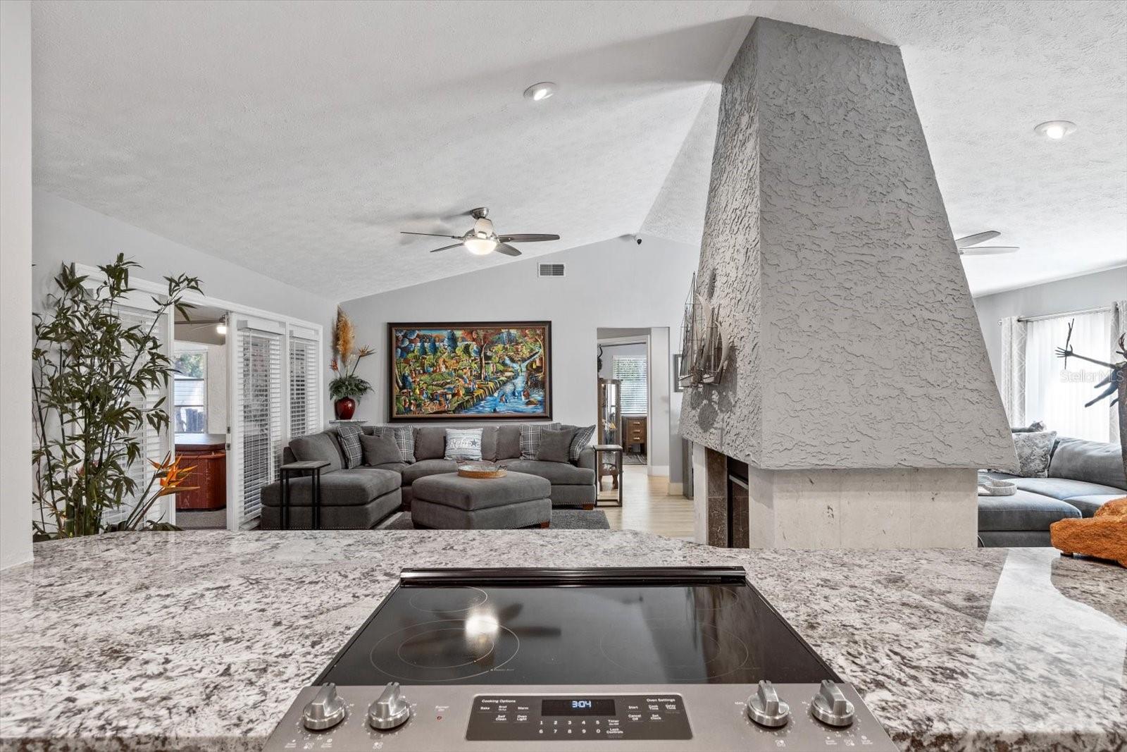 Wake up to fairway views and end your day soaking in the hot tub—this beautifully renovated 3-bedroom, 2-bath home sits right by the 14th tee of the Plantation Golf Course and delivers the laid-back lifestyle Florida is famous for. Best of all, it has NEVER FLOODED! Inside, the open floor plan is filled with natural light thanks to all-new Low-E windows, complemented by Luxury Pergo and Mohawk flooring throughout. A stunning dual-sided wood-burning fireplace—finished with coral imported from the Dominican Republic and Egyptian shell stone hearths—anchors the living space and sets the tone for relaxed elegance. The kitchen is designed for both everyday living and entertaining, featuring granite countertops with a waterfall edge and updated appliances including a brand new dishwasher. Spa-inspired bathrooms showcase porcelain Carrera marble showers, stone flooring, custom stone sinks, and soft kickboard lighting that adds just the right ambiance. Smart-home features make life easy with voice-activated lighting, a wireless indoor/outdoor weather station, and a Night Owl security system with infrared night vision and six cameras for peace of mind. Step out to the enclosed lanai with screen and vinyl windows—perfect year-round—then unwind in the 4-person hot tub while enjoying the Florida breeze. There’s plenty of room for toys and tools with a 2-car garage (insulated door), additional carport, and storage shed. The home is pre-wired for a generator, has a newer HVAC and water heater. Did I mentioned it has never flooded? Just minutes from the boat ramp, Fort Island Beach, and the crystal-clear waters of Three Sisters Springs, plus easy access to the Suncoast Parkway—this golf-cart-friendly neighborhood makes everyday life feel like a getaway.
