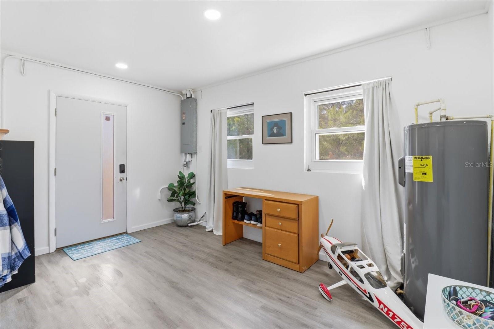 1.61 Acres, Two Story Home, 1200 Sq ft. Detached Garage with Loft and Dual Street Access Two-story home in Crystal River offering space, versatility, and numerous recent updates. The lower level provides flexible space that could be adapted for a variety of uses, including a private guest area, hobby space, or additional living quarters. The primary bedroom is conveniently located on the first floor. Upstairs features the main living area along with two additional bedrooms, creating a comfortable separation of space. A standout feature of the property is the 1200+ square foot detached garage, offering abundant room for vehicles, equipment, storage, or workshop space. Above the garage is a loft overlooking the entire garage area that could be used as an office, studio, or additional workspace. Recent improvements include updated flooring, new bathroom fixtures, added shelving, updated windows, new exterior sliding glass doors, and a screened porch on the upper deck—providing a great place to enjoy the surrounding property. Additional exterior upgrades include a carport and gutters on both the home and the detached garage. This property offers a combination of updates, space, and flexibility in a desirable Crystal River location. Situated on 1.61 acres, the property abuts two streets and offers paved driveway access from both, providing convenient entry and plenty of space for vehicles, equipment, or recreational items.