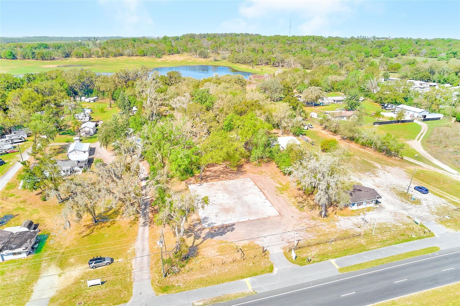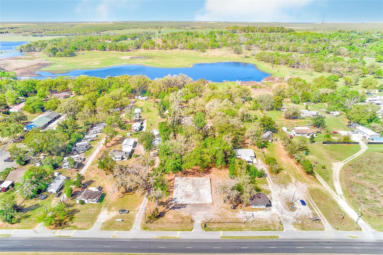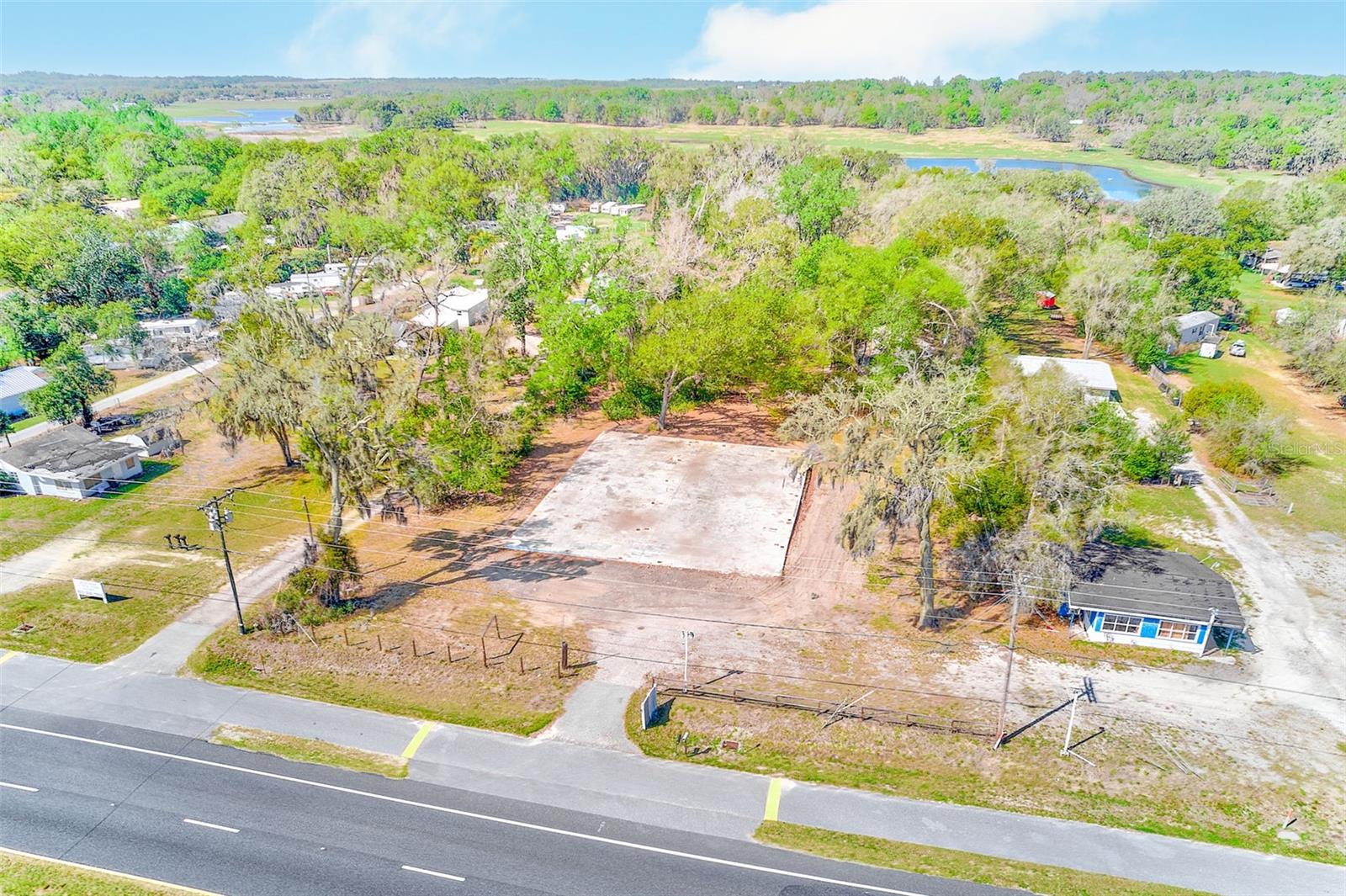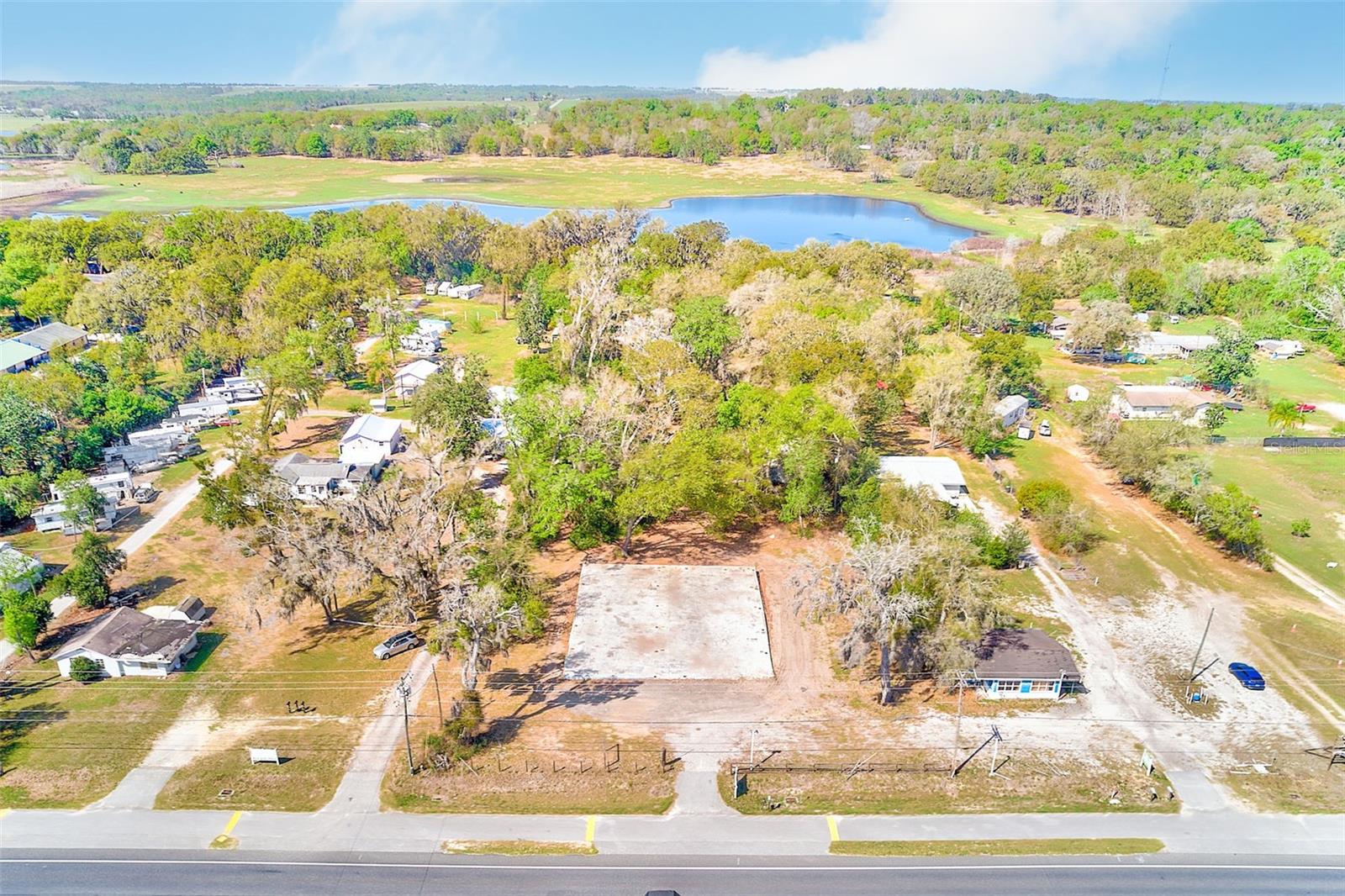 Terrific opportunity for the creative Buyer! 4.75 acres in Dade City adjacent to both U.S. Highway 301 and Lake Gilbert. The front portion of the property is approximately an acre in size and zoned commercial with 166 feet of frontage on U.S. 301. It contains an 84 by 73 foot concrete slab approx. 6000 square feet, that can accommodate a variety of future uses. The remaining approximately 3.75 acres is zoned multi-family and abuts Lake Gilbert. It contains a 2 bedroom, 1 bath, concrete block home. You must see this property to appreciate its potential!