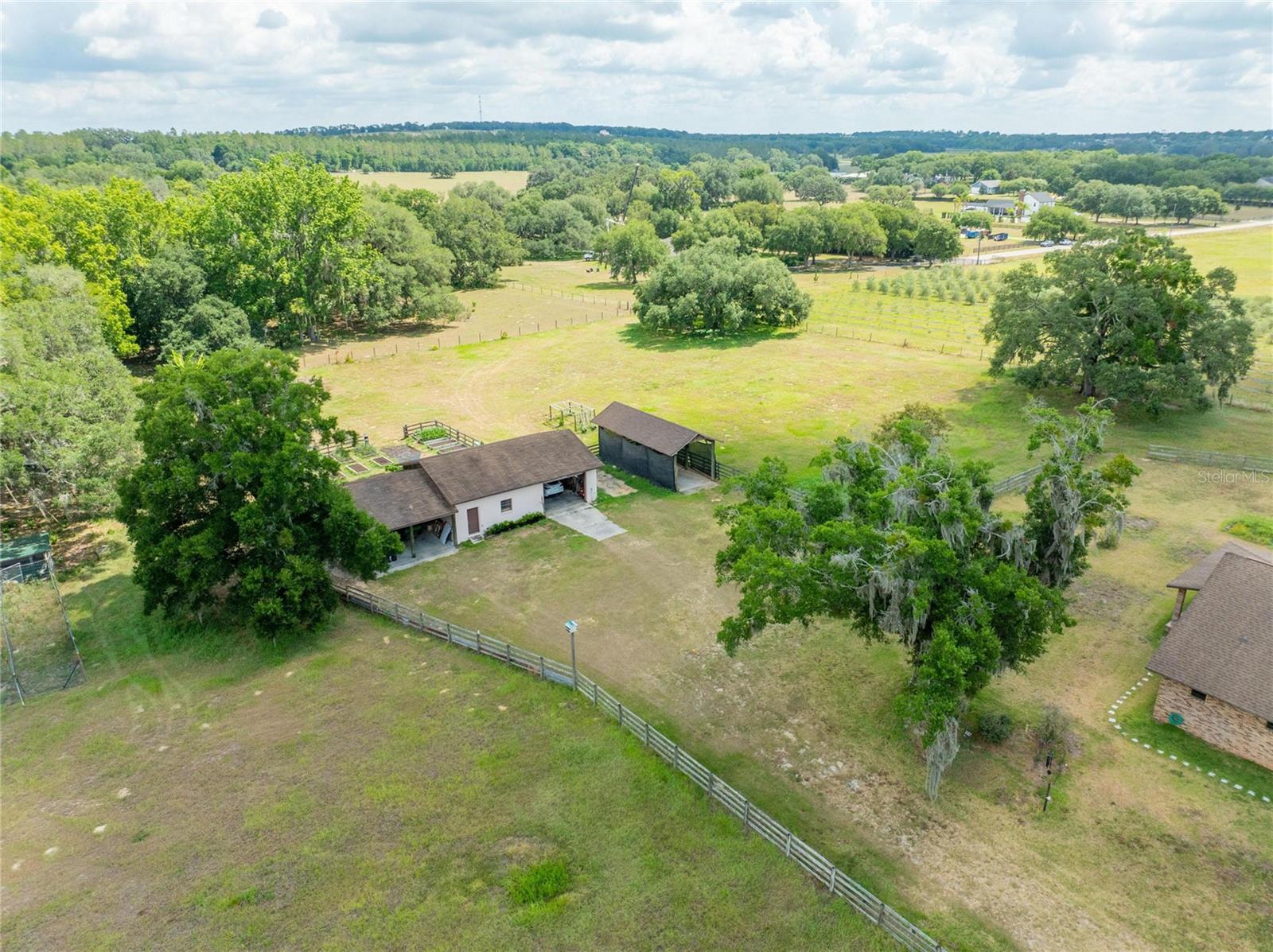 Seize the opportunity to invest in a prime 60-acre (MOL) high and dry buildable lot, strategically located next to new, upcoming developments. With direct access to Fort King Road, this property is currently zoned AC, with future land use designated as VMU2B (Village Mixed Use Type 2-B). Situated in one of the most strategic areas in Pasco County. Location highlights include being just 7 minutes from "Mirada Lagoon," the largest development in Pasco County, featuring over 5,000 homes, and only 5 miles from Downtown Zephyrhills, 6 miles from Downtown Dade City, and 3 miles from Walmart Supercenter, Lowe's, Publix, and local hospitals. It is centrally located with excellent connections to Tampa, Orlando, Lakeland, Zephyrhills, Dade City, San Antonio, and Wesley Chapel via US 98, US 301, I-4, and I-75. The property features a beautiful custom brick home with 3 bedrooms, 2 baths, offering 2,520 sq. ft. of living space plus an additional 400 sq. ft. gym/office. The home includes an open living and dining area with vaulted ceilings and a wood-burning fireplace, leading to a charming screened back porch overlooking a scenic pond. The modern kitchen features a large center island, Jenn-Air cooktop, granite countertops, stainless steel appliances, an oversized walk-in pantry, and a spacious laundry room off the kitchen. The roof was replaced in 2017. Additional structures include a separate 1,200 sq. ft. masonry equipment barn/workshop with a half bath and sink, an RV/boat carport with water, sewer, and electric hookups, a 600 sq. ft. equipment bay, and a row of 6 beautiful, strong, and secure chicken coops, each measuring 10 ft. by 12 ft., totaling 720 sq. ft. The property also features solar panels, a 225 ft. deep well. The land can be divided into three 20-acre parcels, offering flexibility for various subdivision options or maintaining a contiguous 60-acre parcel. It is currently Green-belted with leased hay/cow fields, presenting numerous development opportunities. This property is perfect for investors and developers, being ideal for office buildings, warehouses, medical facilities, townhomes, single-family residences, hotels, self-storage units, restaurants, and more. Situated in a high-traffic area, this property is poised to capitalize on the region's booming growth. This exceptional land opportunity in Pasco County is waiting for your vision. Call today for more information!