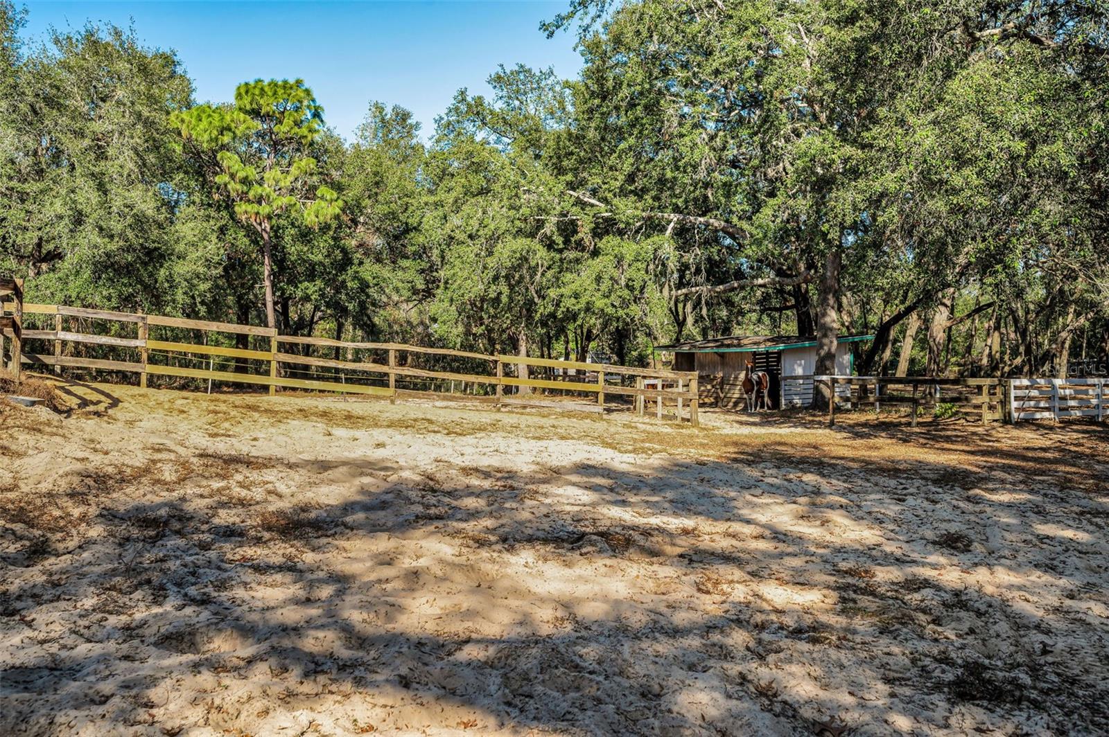 Beautiful 5-acre cleared and fenced parcel located directly behind 20111 Old Trilby Rd in the equestrian community of Trilby Trails. COME HERE AND BUILD YOUR DREAM HOME. Property features granddaddy oaks, a large dressage ring with full sprinkler system, 2-stall barn with water and electric, and existing water/electrical lines (well and utility hookup not included). Fully gated, fenced, and cross-fenced. No mobile homes allowed. No HOA. Just 3 blocks from the 45-mile Withlacoochee Trail for biking, hiking, and horseback riding. Conveniently located near Historic Dade City, approx. 45 minutes to Tampa and 1 hour to beaches and Orlando.