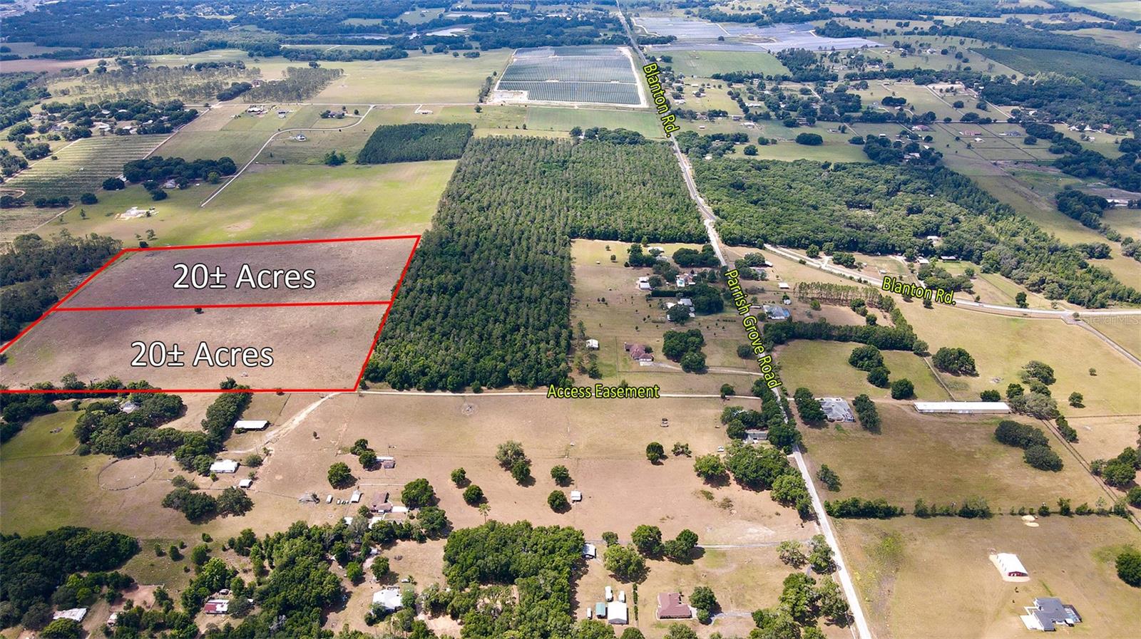 The opportunity is to purchase 20 or 40 acres of gently rolling pasture land nestled in the hills of north Dade City. The property slopes from the west to the east. The western boundary is bordered by a large, heavily wooded area. This provides a unique opportunity for someone to build a home with serene views. Additionally, the site is tucked away allowing for a private, rural setting while still being in close proximity to modern conveniences. Zoning is AR (Agriculture Residential) - which allows for one home per five acres. The property includes a 4" well that is permitted for 46,500 Avg. GPD, 263,500 Peak GPD, and 282,200 Max GPD. The well is located on Tract A. The property is located in Dade City off of Parrish Grove Road in scenic northern Pasco County. It's proximity to I-75 allows for quick travel times to Wesley Chapel (20 minutes), downtown Tampa (40 minutes), Tampa International Airport (40 minutes), St. Petersburg (1 hour), Ocala (1 hour), and Orlando (1 hour 20 minutes). Local shopping, schools and medical are all within 10 minutes as well. Seller financing to be considered.