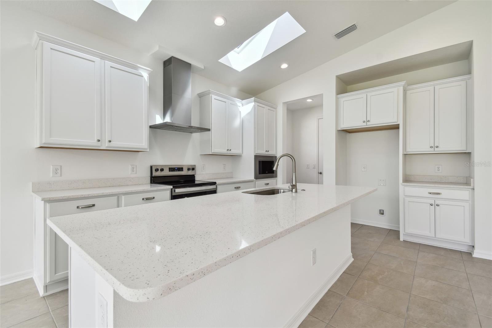 Under Construction. This is new construction home you've been looking for is at Hilltop Point in Dade City, Florida! With easy access to I-75 and SR 52 and within a short drive to historic downtown Dade City's restaurants and shopping , Hilltop Point offers a cabana covered lanai, pool, and playground. The kitchen offers plenty of counter space including the quartz center island for additional seating, free standing range with an exterior vented stainless steel range hood, built in microwave. There is a lot of storage in this home, starting with the walk in kitchen pantry, pocket office space and closets. That's not all! The guest bedrooms are nice size and don't forget the other features include 8' tall interior doors, prewires for ceiling fans in all bedrooms, Smart Home technology, and energy star certified. You will be amazed by the 14'ft Vaulted ceiling on the main level living room and the amount of natural light that beams in from the skylights, windows and sliders.