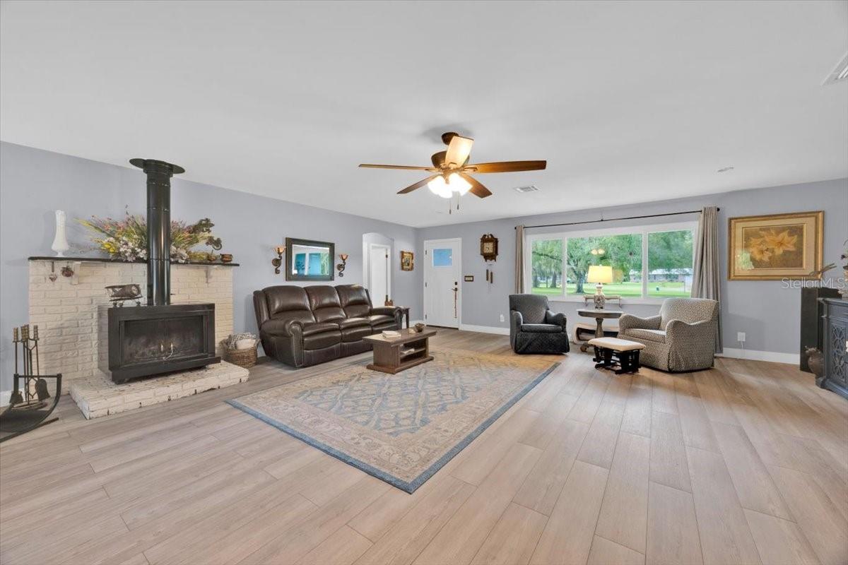 Stunning 3-Bedroom, 2-Bath Home with Detached 1-Bedroom, 1-Bath Guest House This meticulously maintained home is a true gem, offering a perfect blend of modern upgrades and charming details. Situated on a beautifully landscaped 1.25-acre lot, the main house features an open, split floor plan with luxury vinyl plank flooring throughout, creating a seamless flow from room to room. Key highlights include: Brand-new Pella windows (a $15,000 upgrade) for energy efficiency and natural light Updated bathrooms with modern finishes. Stainless steel appliances and upgraded cabinetry with pull-out shelves for added convenience A cozy real wood-burning fireplace, perfect for chilly evenings A new tankless water heater for on-demand hot water A 2-car garage offering ample storage space Roof replaced in 2014, ensuring peace of mind for years to come. The detached 1-bedroom, 1-bath guest house offers great potential for rental income or as a private home office—adding incredible value to this property. The expansive 1.25-acre lot is a serene retreat, beautifully landscaped with small gardens, a charming hen house, a large stone patio, and a firepit for outdoor relaxation and entertainment. This home truly reflects the pride of ownership and is a must-see to fully appreciate all it has to offer. Optional 1.25 acres for inquire within. HOME IS LISTED 15K BELOW APPRAISAL VALUE!!