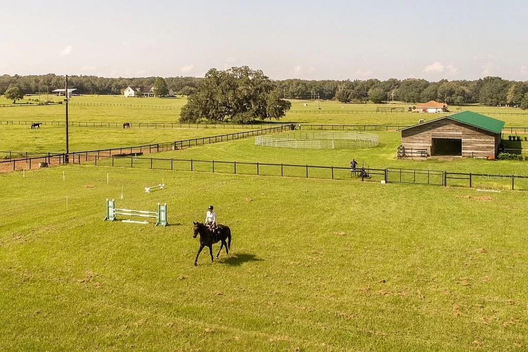 Gorgeous 18-acre property adjoining Trilby Trails Equestrian Community in Dade City, FL. Property includes a beautiful 2,000 sq ft, 4 bedroom , 2 bath dwelling with majestic high ceilings, huge closets, generous attic space, and uv protected/insulated windows . The property also includes a custom 15-stall center aisle barn consisting of minimally sized 12 x 12 fully matted stalls, galvanized steel Triton stall fronts and sliding doors, complete with feed openings and upper door openings, automatic waterers and individual remote powered fans in each stall. The barn also has a bathroom, washing machine, refrigerator, a concrete and matted center aisle, a separate 3-sided cross-tie grooming/ tacking area in the center of the barn, and outside wash stall. Property is fully fenced and cross-fenced with horse-safe no-climb fence wire, flex rail and electric wire on top. The property's deep well and water conditioning system delivers high quality water with extremely good water pressure. Property is located within 5 miles to shopping, 7 miles to hospital, 7 miles to Pasco-Hernando State College East Campus, and 10 miles to St. Leo University. Also, 30 minutes to fast-growing Wesley Chapel community. For the competitive horse enthusiast, the property is within a 1 hour drive to Tampa Show Grounds, Florida Horse Park, Ocala’s World Equestrian Center, and HITS Show Grounds. Property consists of part of parcel #34-23-21-0000-01300-0000 and part of parcel #34-23-21-0000-01300-0070. Adjoining 10 acre parcel also for sale -