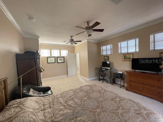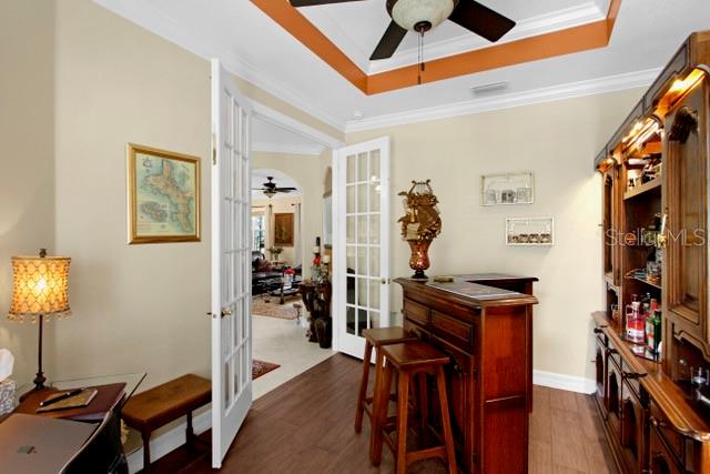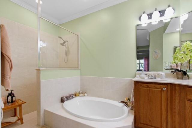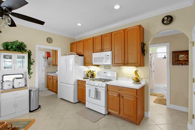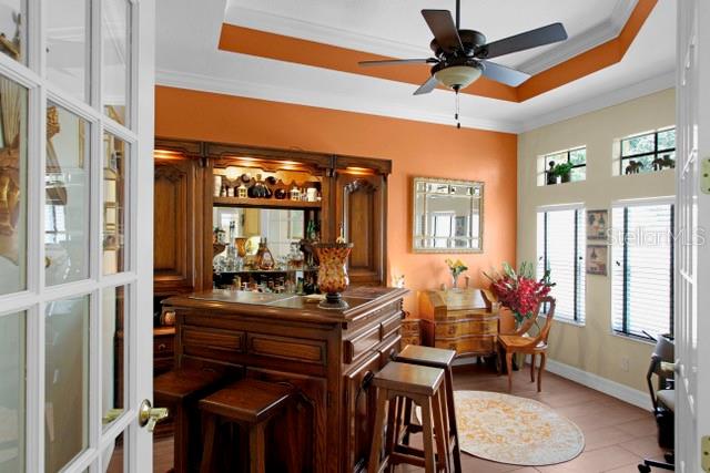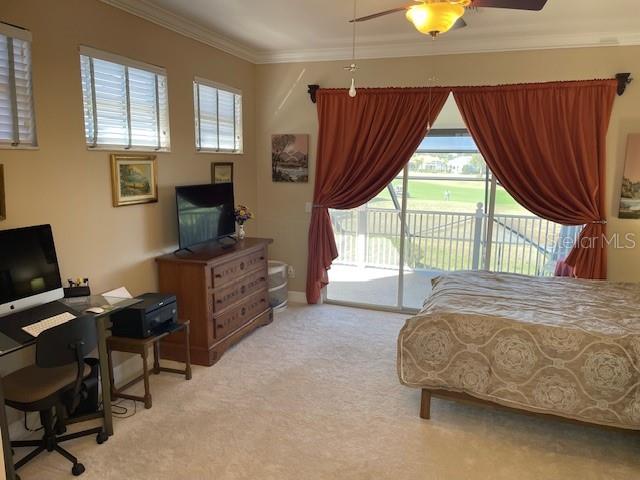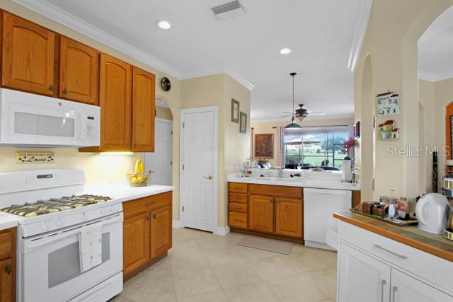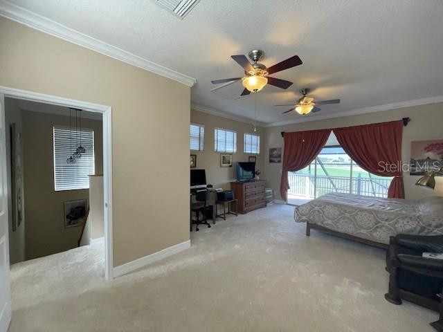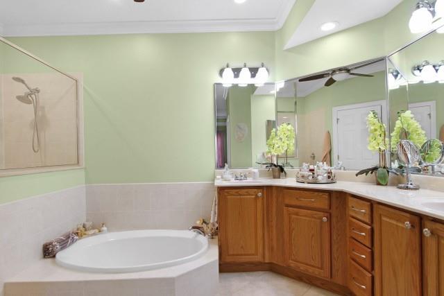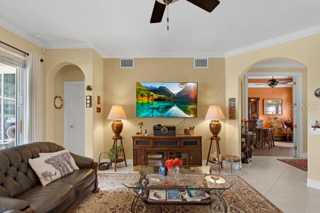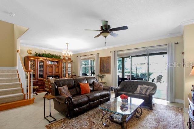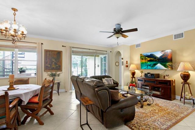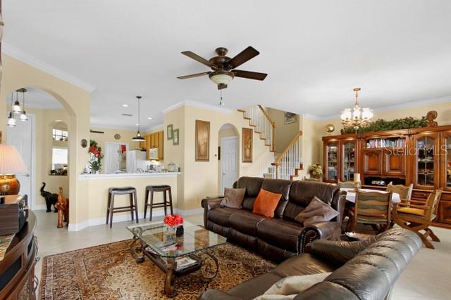 RARE OPPORTUNITY to own a one-of-a-kind 3-bed, 3-bath villa in the prestigious Lake Jovita Golf & Country Club. Situated on one of only two oversized lots in the Heathers section, this home offers breathtaking sunsets and panoramic views of the North Course. A gated courtyard, stacked stone accents, and a brand-new tile roof (2025) enhance its curb appeal. Inside, an open foyer leads to an oversized screened lanai with a hot tub and stunning golf course views. Architectural details include crown molding, arches, niches, and accent walls. A versatile flex space with tray ceilings and transom windows can be used as a formal dining room, library, office, bar, or fourth bedroom. The bright living and dining areas feature large windows and sliding glass doors. The kitchen boasts 42” wood cabinets, Corian countertops, a Kohler sink, a GE Profile gas range, a pantry with extra shelving, and updated appliances including a refrigerator and dishwasher (2023) and a new garbage disposal (2025). The private owner’s suite offers direct lanai access and scenic golf course views. The ensuite bath features a large garden tub, walk-in shower, dual sinks, private water closet, and two walk-in closets. A separate guest wing includes a spacious bedroom and full bath. Upstairs, a newly remodeled third bedroom (2025) features new carpet, a closet, an ensuite bath, and a private balcony overlooking the golf course, with a custom spiral staircase leading down to the lanai. Additional features include a new AC system and hot water heater (2023), a two-car garage with built-in storage and golf cart bay, an interior laundry room with extra cabinetry, a Maytag washer and dryer (2023), a whole-house GE Elite water system with reverse osmosis filtration, and a central vacuum system. The HOA covers landscaping, sprinklers, Spectrum cable, exterior painting (scheduled for 2025), and annual roof cleaning. Community amenities include walking trails, a dog run, playground, picnic areas, basketball, tennis, and pickleball courts. The clubhouse offers a top-rated restaurant and bar with golf course views. Conveniently located just one exit north of Wesley Chapel with easy access to shopping, dining, Downtown Tampa, the airport, and just 10 minutes from Mirada Lagoon. Call today for a private showing.