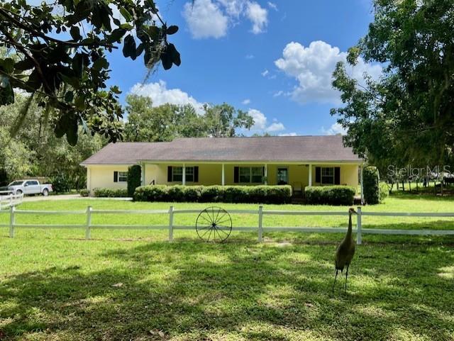 Are you looking for country living with quick access to Tampa or Ocala? This custom-built, ranch-style home on 12+ acres, offers easy access to I-75 (only 3 miles away). Zoned Agricultural-Residential and NO HOA or CDD FEES! This is the first time this well-maintained home has been for sale. The property has a winding CREEK, with a bridge, that flows through the property. The RANCH-STYLE HOUSE is approximately 1,856 sq ft with 3 bedrooms, 3 baths and a bonus room (all under air). The bonus room, which is located off the double car garage, offers a full bath and private entrance. This extra bonus space offers flexibility for whatever your needs may be. The home offers an open-concept floor plan with living room, dining room, kitchen and a split-bedroom layout designed for privacy. The long, wide, relaxing front porch (52 ft long x 8 ft wide) is the perfect place for drinking your morning coffee while watching the birds and enjoying the peace and quiet of this beautiful homestead. The home has extra insulation which contributes to lower electric bills. A deep well supplies excellent water to this home and property. The PROPERTY spans 12.72 +/- acres of cleared, high and dry pastureland, entirely fenced and crossed fenced providing boundaries and multiple sections. It has paved road access and two separate entrances, ensuring easy and convenient entry into the property and barn area. Agricultural zoning allows you to bring your horses, livestock, animals, start your own hobby farm or just escape life’s “hustle and bustle” and come home to this peaceful setting. Mature trees, open pastures and a creek that runs through the property make this property unique. It’s conveniently located to restaurants, shopping, medical facilities, major cities, and other attractions. This property is located just (15 minutes) from Historical Downtown Dade City, (25 minutes) from Tampa Premium Outlets, with all the restaurants & shopping you could possibly want, (40 mins) from Downtown Tampa, and (1 hour) from the World Equestrian Center in Ocala. A BARN on a concrete slab, measuring 44’ x 40’ (1760 sq ft) with a high roof, features both open storage and enclosed storage rooms with electricity and water, and is suitable for storing RV, equipment, feed, or other supplies. A 30-amp RV hookup at the barn, and a storage shed (11’ x 16’) enhance this versatile property. Don't miss the opportunity to own this home and property that blends natural beauty, peaceful living, and endless possibilities. This is a must-see property! Schedule your private showing today! Co-owner of this property is a licensed Florida Real Estate Sales Associate.