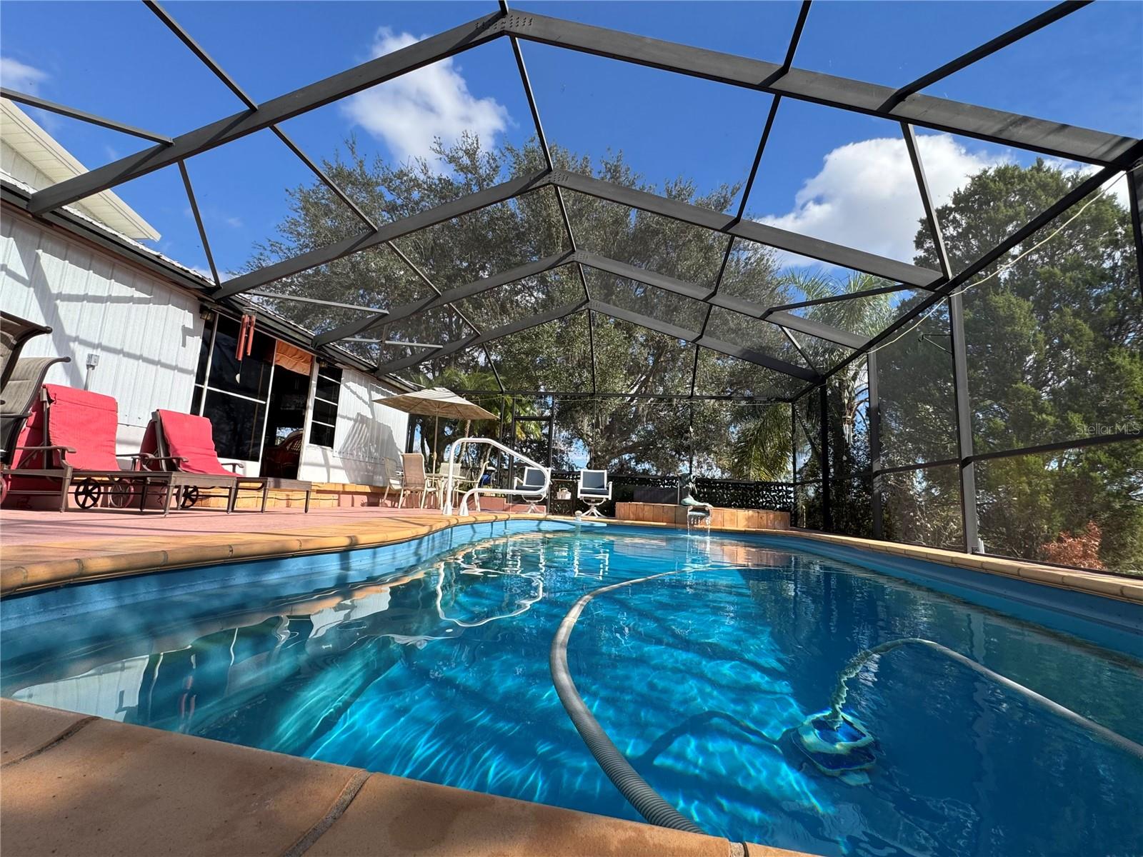 Private 15-acre farm located in Dade City. This thoughtfully designed home features a compliment of 3 generously sized bedrooms all with ensuite baths and large walk in closets. Over sized Primary suite includes 3 additional storage spaces or study. 2nd primary suite includes seperate private entrance on first floor. ideal for guests or in-laws. Kitchen features a welcoming layed out, large showcasing island, quality corian counter tops, bar seating and abundant storage. Luxury vinyl tile flooring throughout the first floor and complemented by high quality Andersen vinyl-clad double-pane windows through out. The owner’s entry includes a laundry area, reach-in pantry, and a full bath for added convenience. Both the home and workshop are equipped with durable Master Rib metal roofing and exterior siding, ensuring longevity, low maintenance, and energy efficiency. Enjoy over sized 70’ x 13’ enclosed Florida Lanai with tile floors, a wet bar, high-top seating and full size pool bath, all leading to the screened-in pool and hot tub. The impressive 52' x 53' workshop offers large double overhead doors, additional side doors, Full linear kitchen, and a second-story loft perfect for storage or a flexible-use room. Additional amenities include carports, extra storage, and ample power for tools and equipment. The property sits high and dry, fully fenced and cross-fenced with 3-rail vinyl and field fencing. Paddocks are equipped with electric for agricultural use. The land also includes an additional septic tank and utilities. Mature landscaping highlights majestic live oaks, vibrant flower gardens, and a tranquil garden pond. A remote-controlled security gate opens to a long, private paved driveway, offering peace and privacy from the road. Mostly cleared and ready for your vision, this property provides endless scenic views and the serene charm of quiet country living—ready to make your own.