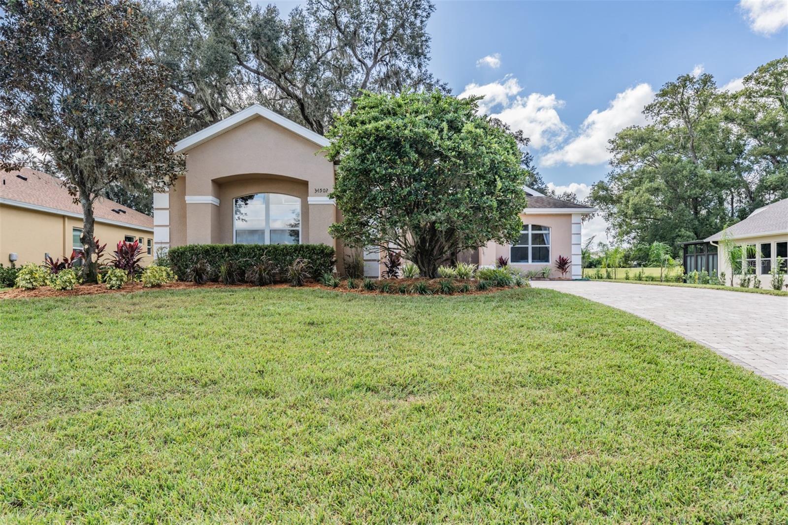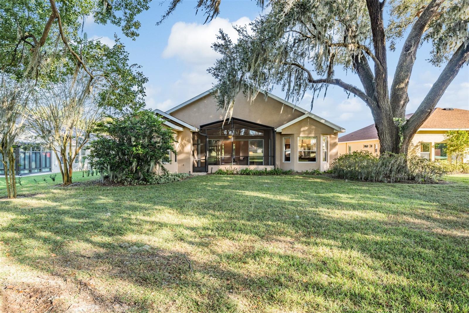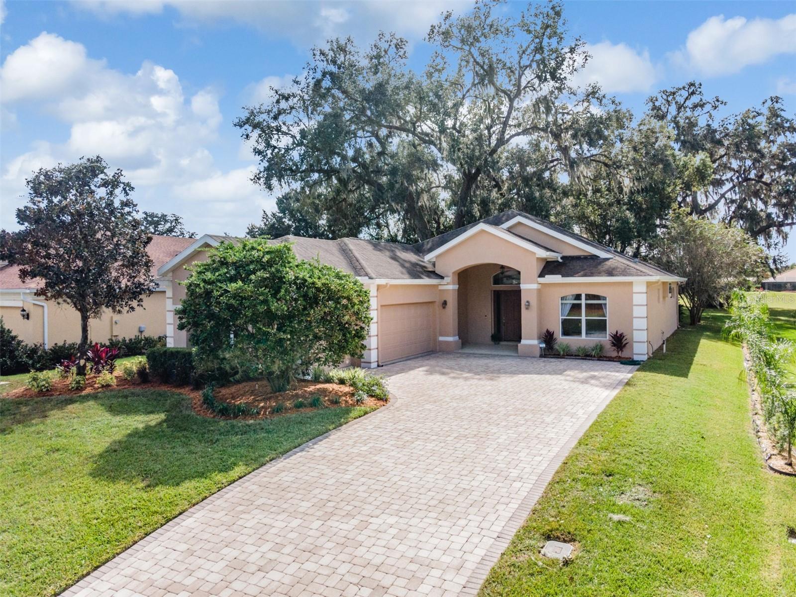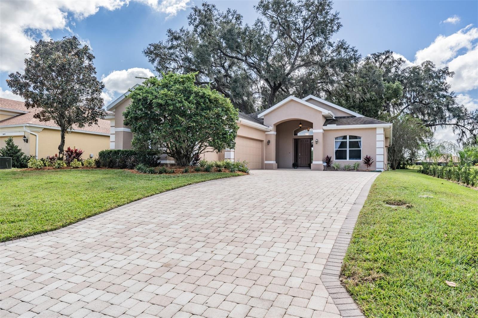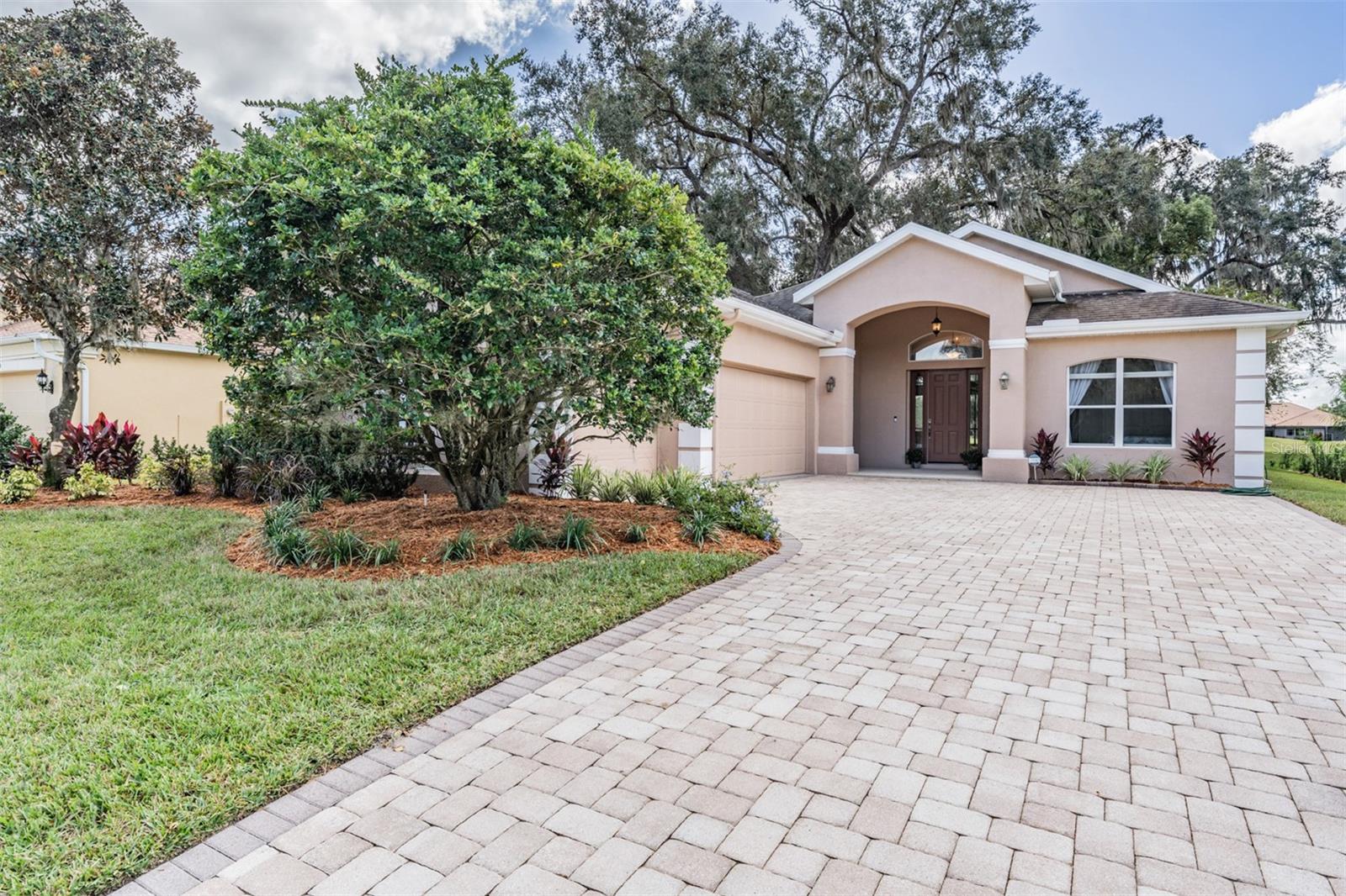 HEAVENLY VIEWS from this One owner home boasting CASUAL ELEGANCE in LAKE JOVITA Golf & Country Club! Enjoy Living in the Hills of East Pasco in this Man Guard Gated Golf Community! Situated on a quiet Cul-de-sac with no front or rear neighbors... the upscale brick PAVER driveway, Mature landscaping and Inviting front porch Welcome you to this Saint Martin III, 3 bedroom, 2.5 bath home with 3 car side entry garage! Neutral color palette inside and out with Ceramic Tile Foyer, kitchen, walkways and wet areas! Once inside, you are drawn into this OPEN great room with Cathedral ceiling and wall of glass sliding doors to let in natural light which OPEN from the center to offer a refreshing cross breeze! Leaving them open extends the entertaining space to your screened lanai! Oversized Kitchen features warm wood cabinets, Solid surface counters, tile backsplash, smooth top range in center island, white appliances with neutral interior paint for a classic feel! Large bay window breakfast nook and sliding doors to lanai illuminate the space with natural light. Great place to Relax and enjoy the Majestic Oak trees and natural foliage in the backyard with Golf course views beyond! Plenty of room for a pool in this level, private oasis. Owners retreat is situated at the rear of the home with a sitting area at one end, which would make a serene reading nook or home office overlooking the back lawn and golf course. Listen for the sound of Birds singing as the sun comes up over the trees in the morning, Bath Ensuite boasts soaking tub, glass block walk in shower and walk in closets. Quaint ½ bath with pedestal sink and mirror is just across from third bedroom which has double doors and makes a great office or den. Secondary bedroom and bath are on a private wing of the opposite side of the home for a 3 way split bedroom plan. Laundry room is spacious, has a utility sink cabinet, clothes hanging area, storage cabinets above and is just off the 3 car side entry garage which features LOADS of storage, garage door openers and Sprinkler system with exit door to side yard. Mature landscaped lot with bushes planted along lot line offering privacy in the large backyard with plenty of room to add a swimming pool or extend the screened lanai! Great location with no rear neighbors and easy access to the walking trail and amenities in Parkside which provides open greenspace sports area, fitness stations, dog parks, tennis court, basketball, pickleball, covered picnic area and playground included in Quarterly HOA fee. Several OPTIONAL memberships available for Golf, Tennis, Fitness, Swimming pool and Social membership with Lake Jovita Golf & Country Club. Located just a few miles off Interstate 75, North of Tampa in Sunny Florida, close to Premium outlets, Wiregrass Mall, Wesley Chapel, medical facilities & hospital, restaurants & new shoppes at the Krate. CALL TODAY!