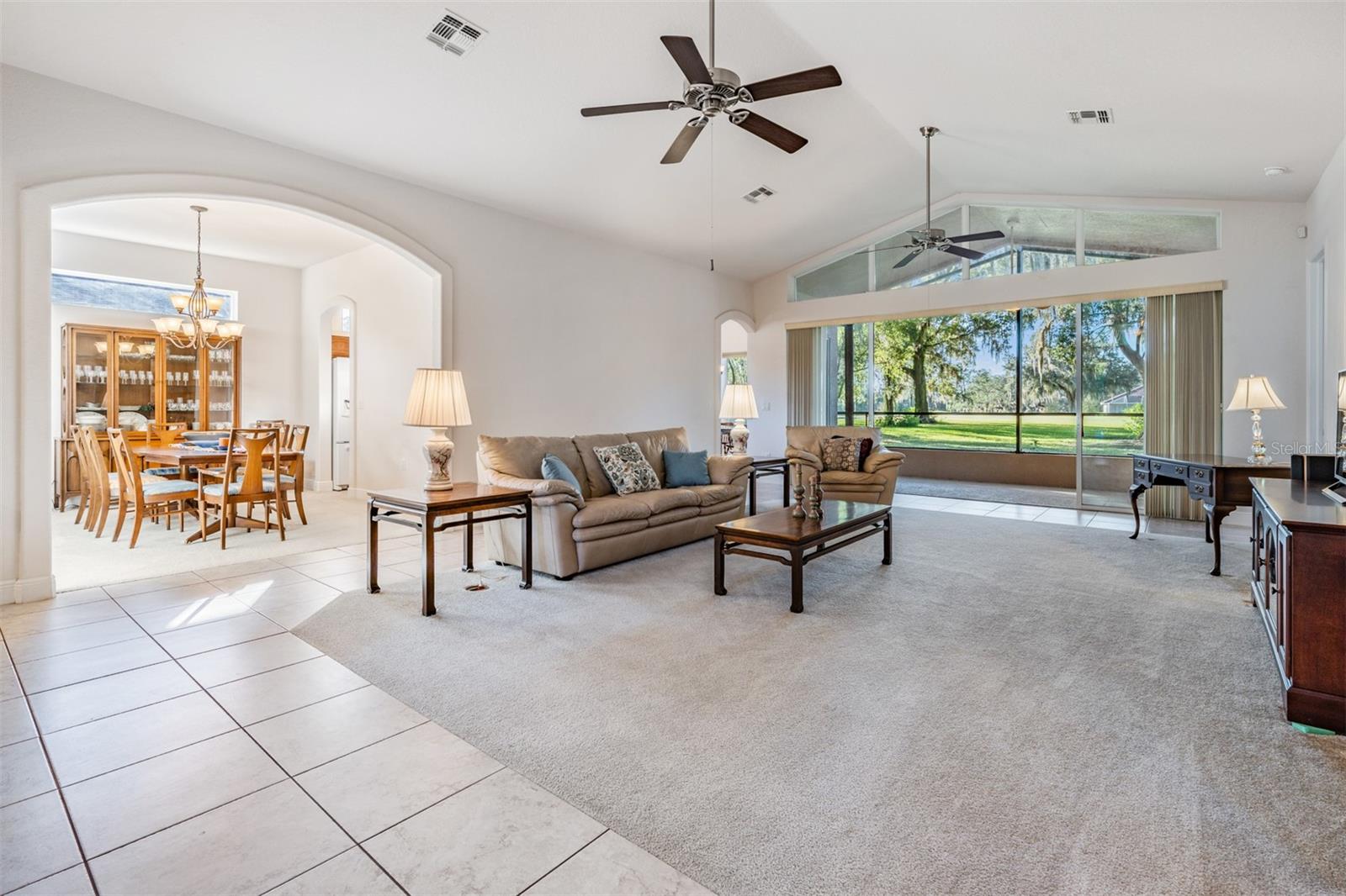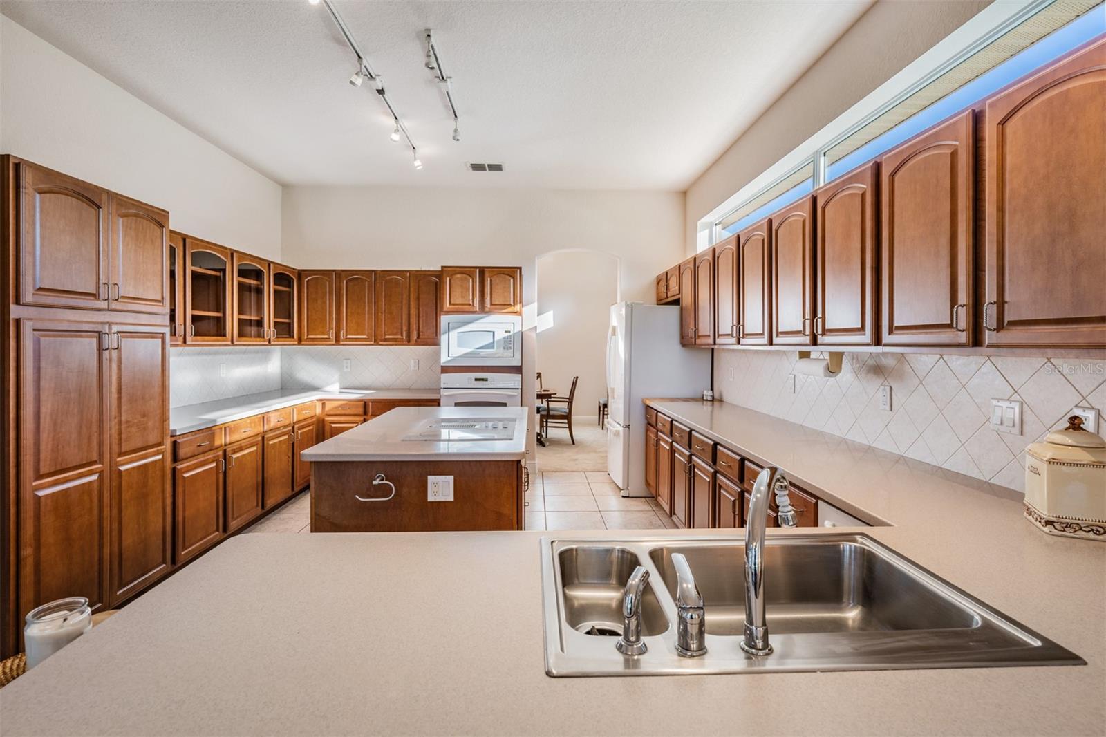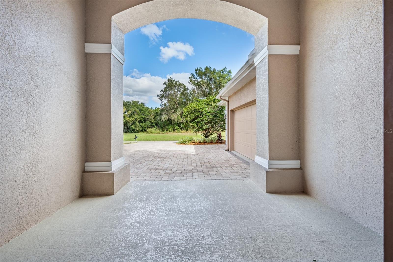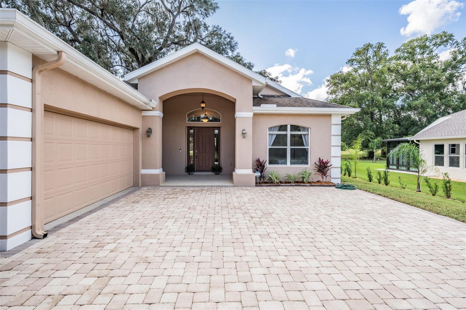 HEAVENLY VIEWS from this One owner home boasting CASUAL ELEGANCE in LAKE JOVITA Golf & Country Club! Enjoy Living in the Hills of East Pasco in this Man Guard Gated Golf Community! Situated on a quiet Cul-de-sac with no front or rear neighbors... the upscale brick PAVER driveway, Mature landscaping and Inviting front porch Welcome you to this Saint Martin III, 3 bedroom, 2.5 bath home with 3 car side entry garage! Neutral color palette inside and out with Ceramic Tile Foyer, kitchen, walkways and wet areas! Once inside, you are drawn into this OPEN great room with Cathedral ceiling and wall of glass sliding doors to let in natural light which OPEN from the center to offer a refreshing cross breeze! Leaving them open extends the entertaining space to your screened lanai! Oversized Kitchen features warm wood cabinets, Solid surface counters, tile backsplash, smooth top range in center island, white appliances with neutral interior paint for a classic feel! Large bay window breakfast nook and sliding doors to lanai illuminate the space with natural light. Great place to Relax and enjoy the Majestic Oak trees and natural foliage in the backyard with Golf course views beyond! Plenty of room for a pool in this level, private oasis. Owners retreat is situated at the rear of the home with a sitting area at one end, which would make a serene reading nook or home office overlooking the back lawn and golf course. Listen for the sound of Birds singing as the sun comes up over the trees in the morning, Bath Ensuite boasts soaking tub, glass block walk in shower and walk in closets. Quaint ½ bath with pedestal sink and mirror is just across from third bedroom which has double doors and makes a great office or den. Secondary bedroom and bath are on a private wing of the opposite side of the home for a 3 way split bedroom plan. Laundry room is spacious, has a utility sink cabinet, clothes hanging area, storage cabinets above and is just off the 3 car side entry garage which features LOADS of storage, garage door openers and Sprinkler system with exit door to side yard. Mature landscaped lot with bushes planted along lot line offering privacy in the large backyard with plenty of room to add a swimming pool or extend the screened lanai! Great location with no rear neighbors and easy access to the walking trail and amenities in Parkside which provides open greenspace sports area, fitness stations, dog parks, tennis court, basketball, pickleball, covered picnic area and playground included in Quarterly HOA fee. Several OPTIONAL memberships available for Golf, Tennis, Fitness, Swimming pool and Social membership with Lake Jovita Golf & Country Club. Located just a few miles off Interstate 75, North of Tampa in Sunny Florida, close to Premium outlets, Wiregrass Mall, Wesley Chapel, medical facilities & hospital, restaurants & new shoppes at the Krate. CALL TODAY!