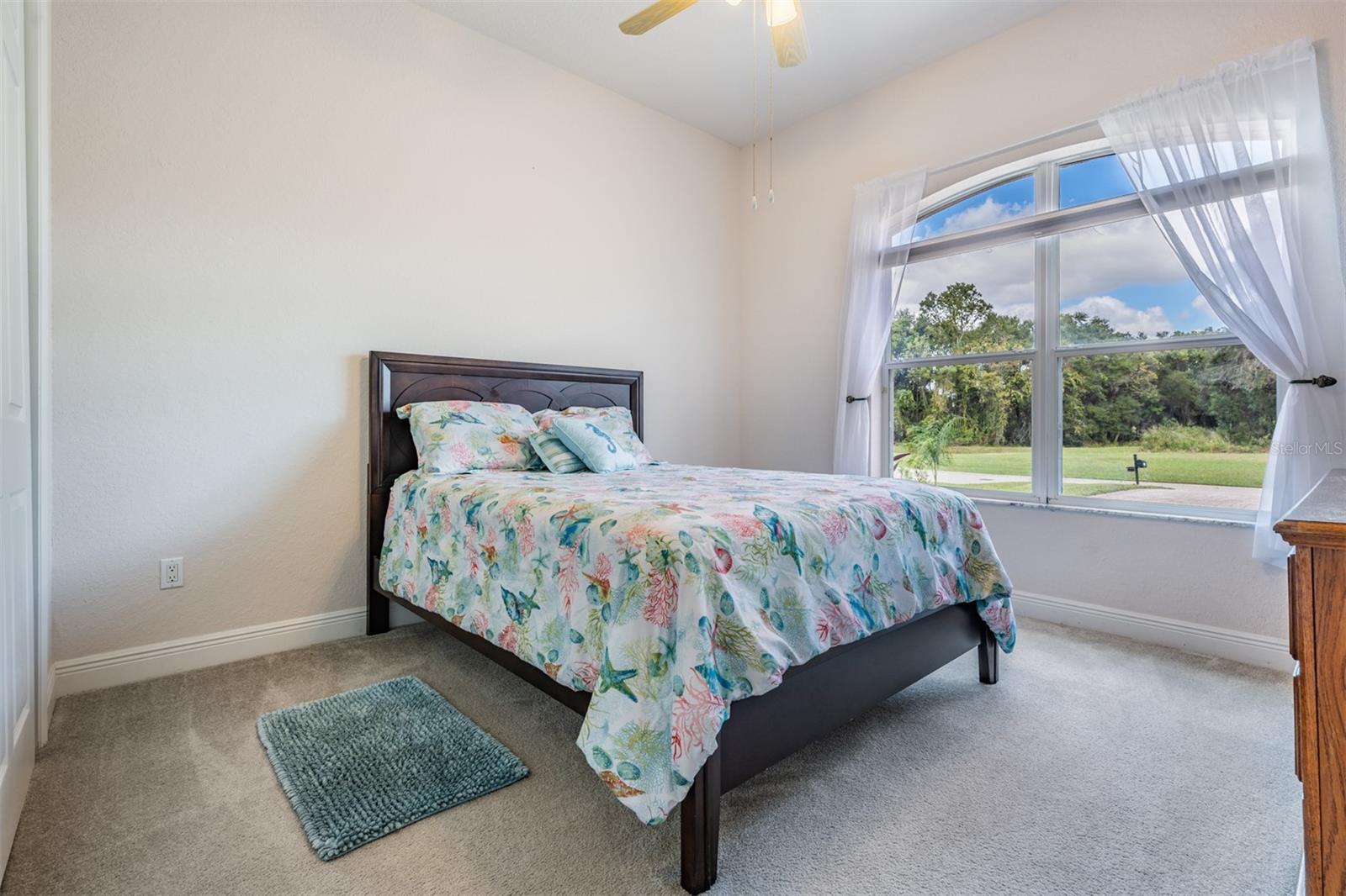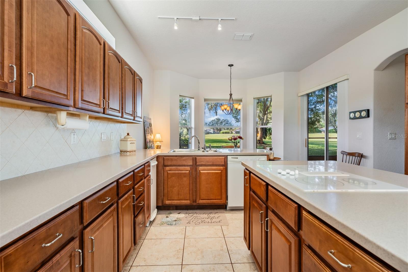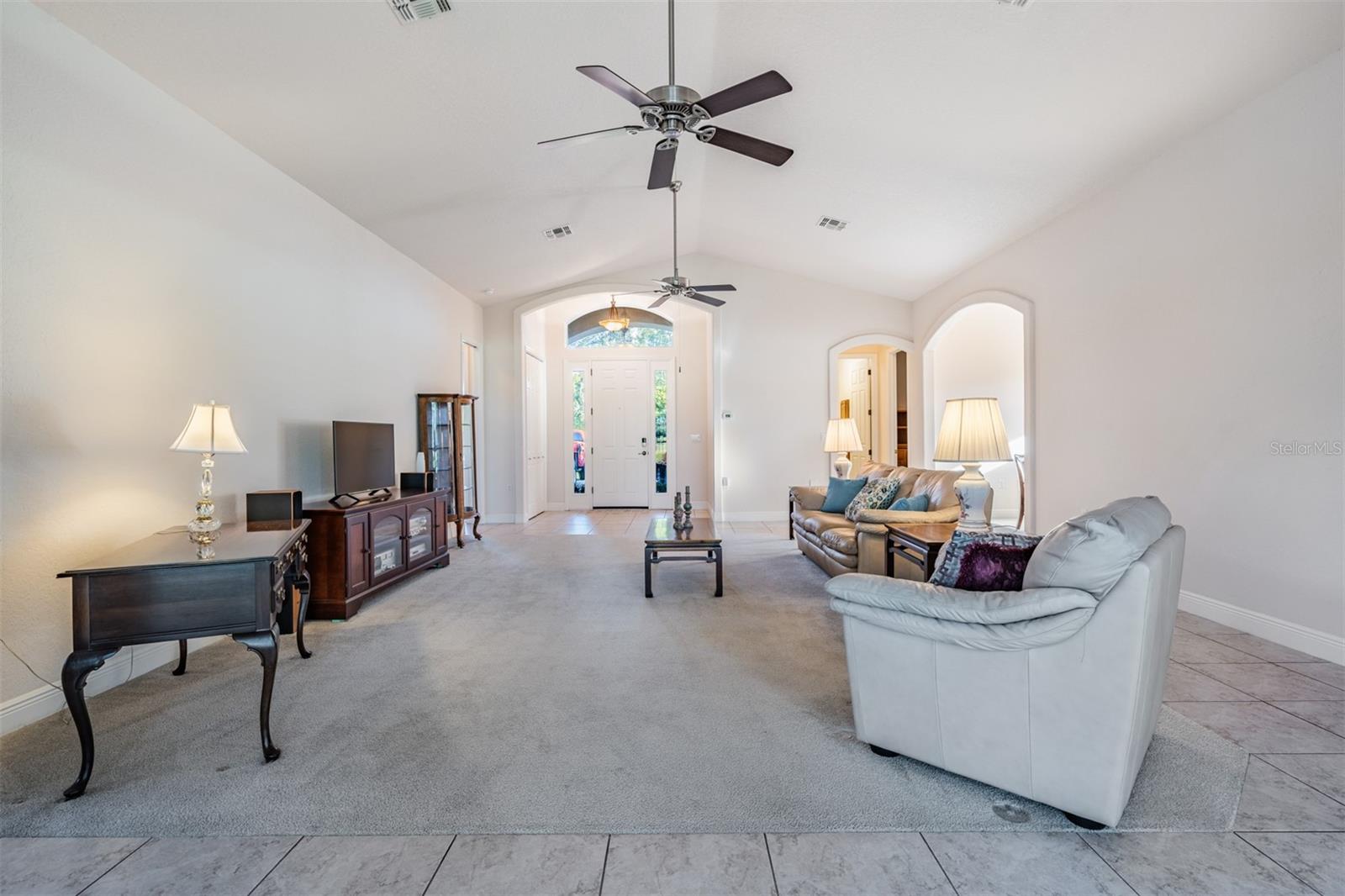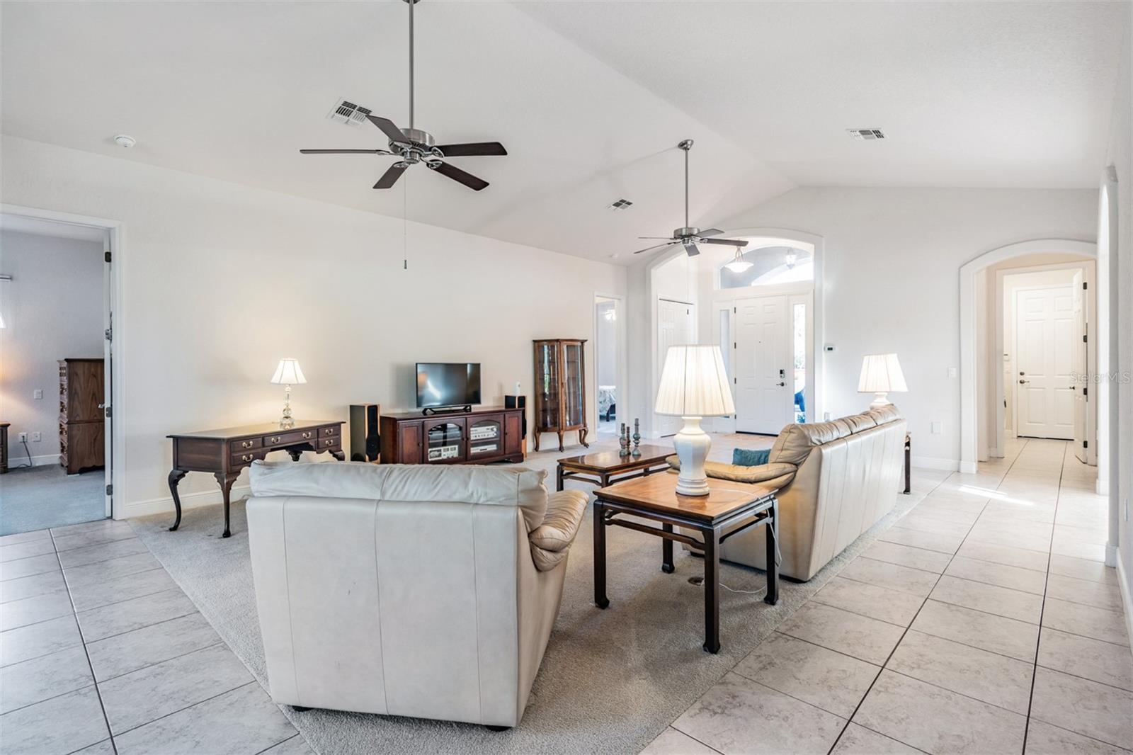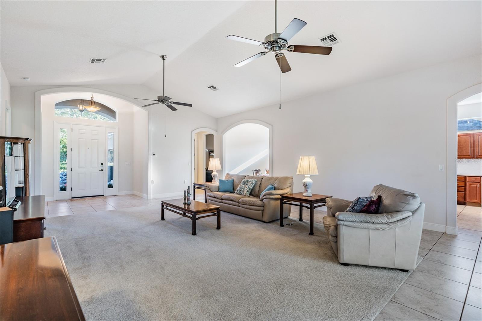 HEAVENLY VIEWS from this One owner home boasting CASUAL ELEGANCE in LAKE JOVITA Golf & Country Club! Enjoy Living in the Hills of East Pasco in this Man Guard Gated Golf Community! Situated on a quiet Cul-de-sac with no front or rear neighbors... the upscale brick PAVER driveway, Mature landscaping and Inviting front porch Welcome you to this Saint Martin III, 3 bedroom, 2.5 bath home with 3 car side entry garage! Neutral color palette inside and out with Ceramic Tile Foyer, kitchen, walkways and wet areas! Once inside, you are drawn into this OPEN great room with Cathedral ceiling and wall of glass sliding doors to let in natural light which OPEN from the center to offer a refreshing cross breeze! Leaving them open extends the entertaining space to your screened lanai! Oversized Kitchen features warm wood cabinets, Solid surface counters, tile backsplash, smooth top range in center island, white appliances with neutral interior paint for a classic feel! Large bay window breakfast nook and sliding doors to lanai illuminate the space with natural light. Great place to Relax and enjoy the Majestic Oak trees and natural foliage in the backyard with Golf course views beyond! Plenty of room for a pool in this level, private oasis. Owners retreat is situated at the rear of the home with a sitting area at one end, which would make a serene reading nook or home office overlooking the back lawn and golf course. Listen for the sound of Birds singing as the sun comes up over the trees in the morning, Bath Ensuite boasts soaking tub, glass block walk in shower and walk in closets. Quaint ½ bath with pedestal sink and mirror is just across from third bedroom which has double doors and makes a great office or den. Secondary bedroom and bath are on a private wing of the opposite side of the home for a 3 way split bedroom plan. Laundry room is spacious, has a utility sink cabinet, clothes hanging area, storage cabinets above and is just off the 3 car side entry garage which features LOADS of storage, garage door openers and Sprinkler system with exit door to side yard. Mature landscaped lot with bushes planted along lot line offering privacy in the large backyard with plenty of room to add a swimming pool or extend the screened lanai! Great location with no rear neighbors and easy access to the walking trail and amenities in Parkside which provides open greenspace sports area, fitness stations, dog parks, tennis court, basketball, pickleball, covered picnic area and playground included in Quarterly HOA fee. Several OPTIONAL memberships available for Golf, Tennis, Fitness, Swimming pool and Social membership with Lake Jovita Golf & Country Club. Located just a few miles off Interstate 75, North of Tampa in Sunny Florida, close to Premium outlets, Wiregrass Mall, Wesley Chapel, medical facilities & hospital, restaurants & new shoppes at the Krate. CALL TODAY!