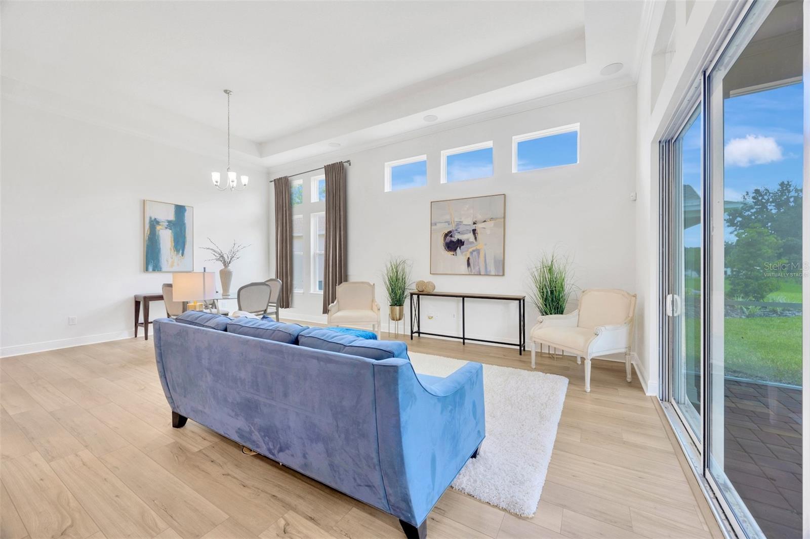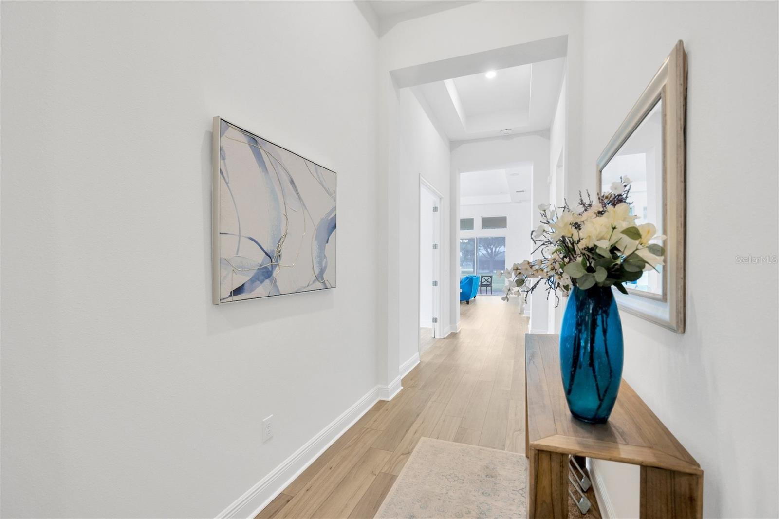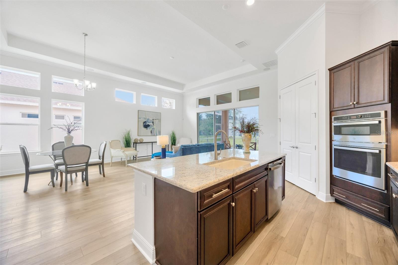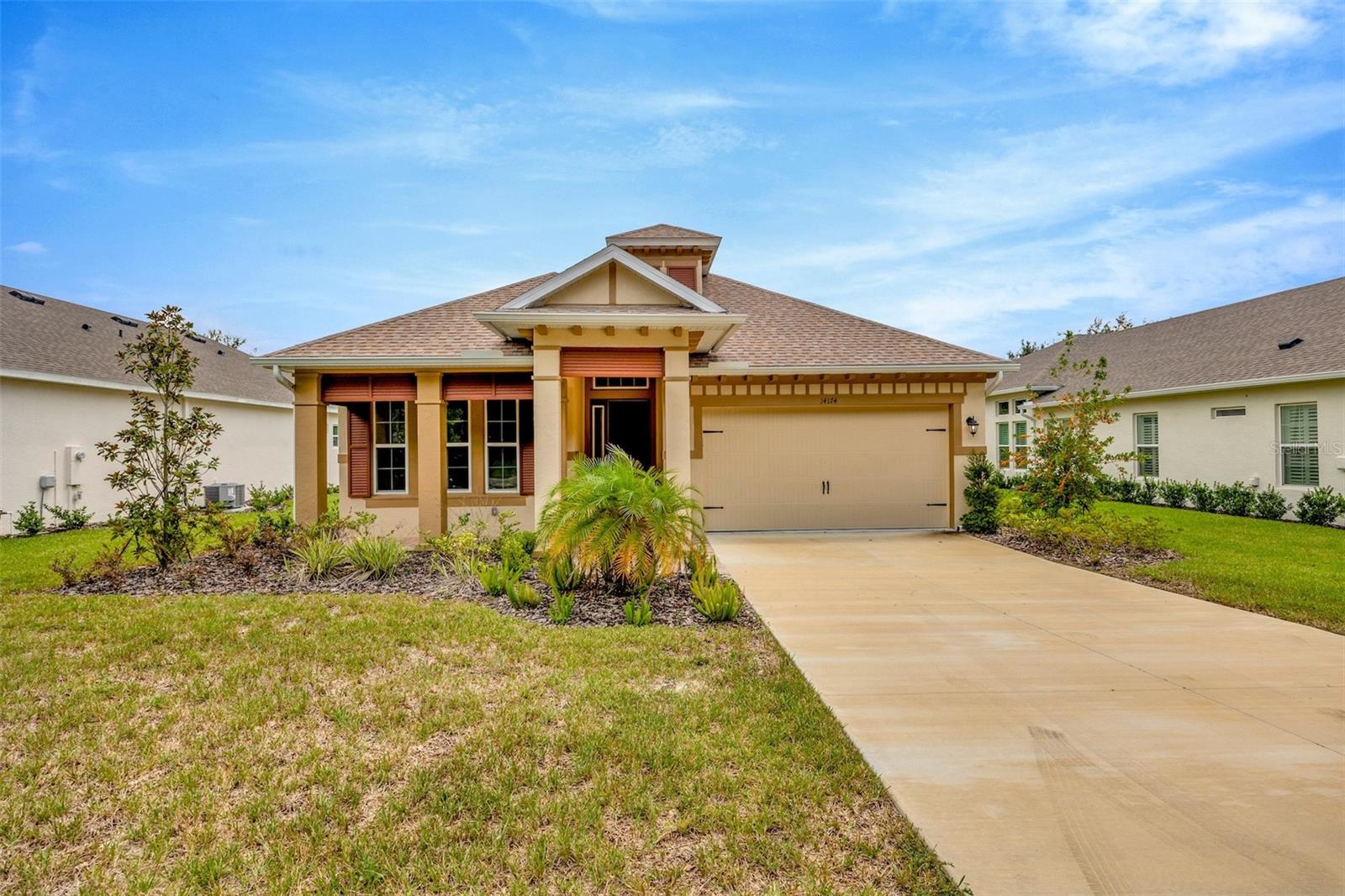STUNNING NEW CONSTRUCTION ICI Homes Serena Floor Plan features 3 Bedrooms/2.5 Baths/3 Car Tandem Garage + OFFICE and NEW COVERED SCREENED LANAI! The Serena offers over 2100sf of living space in this bright and open home. As you step into the entryway, you’re greeted by views of the covered, screened lanai and back yard. To your left are two secondary bedrooms which share a full bath. Walk down the hallway and to your left is the office featuring glass front doors and windows to allow plenty of natural light. To your right is the large laundry room with a utility sink, overhead cabinets and granite counters. The heart of the home is the great room and kitchen. This is truly a gourmet cook’s delight! Plenty of cabinet space for storage in addition to the double-door pantry, built-in convection oven and microwave and gorgeous stainless steel hood (vented outdoors, of course). Each lower cabinet has wood pull-out drawers and all cabinets and drawers are soft-closing. Yes, drawers! How many times have you wished for more drawer space in your kitchen? The GE Profile Stainless Steel appliance package includes the Convection Oven, Microwave, Stainless Steel Range Hood, Induction Cooktop, Dishwasher and Smart 4-Door French Door Refrigerator. The Primary Suite has been EXTENDED 2 FT, giving this room a luxurious feel. The ensuite bath features a granite counter vanity with his/hers sinks, frameless glass shower with river rock floor, corner seat and niche to store your toiletries. The walk-in closet is HUGE and features a luggage shelf around 3 sides of the top 2’ of the closet. Unwind after a hectic day and relax on your brick-paved lanai which has been PRE-PLUMBED FOR SUMMER KITCHEN. The PRIVACY SCREENING on the lanai lets you see what's happening out back, but no one can see in. Let your imagination run wild with possibilities of what you could do to create your back yard oasis. Just out back is the community park which features pickleball courts, dog runs, basketball court and playground. There's also a walking path that winds through the community golf course for a picturesque morning or evening stroll. It's like having your own private play area! Just imagine entertaining here! The garage is deceiving! Looks like 2-car garage, but is actually a 3- car tandem – plenty of space for storage of toys! There’s even a separate 220-volt outlet for an EV or golf cart. The home is wired for security and surround sound in the Great Room, Primary Suite and Lanai. All doors are 8’ giving this home a grand look and feel. No detail has been overlooked! Lake Jovita is located minutes from historic downtown Dade City, 20 minutes north of Tampa and 1 Hour from Orlando. This luxurious master-planned community features scenic 36 hole championship golf course, miles of walking trails, social clubs and gorgeous Clubhouse with fitness center, banquet hall and restaurant. Shopping and restaurants are minutes away with more to come! Experience the Florida lifestyle in luxury!