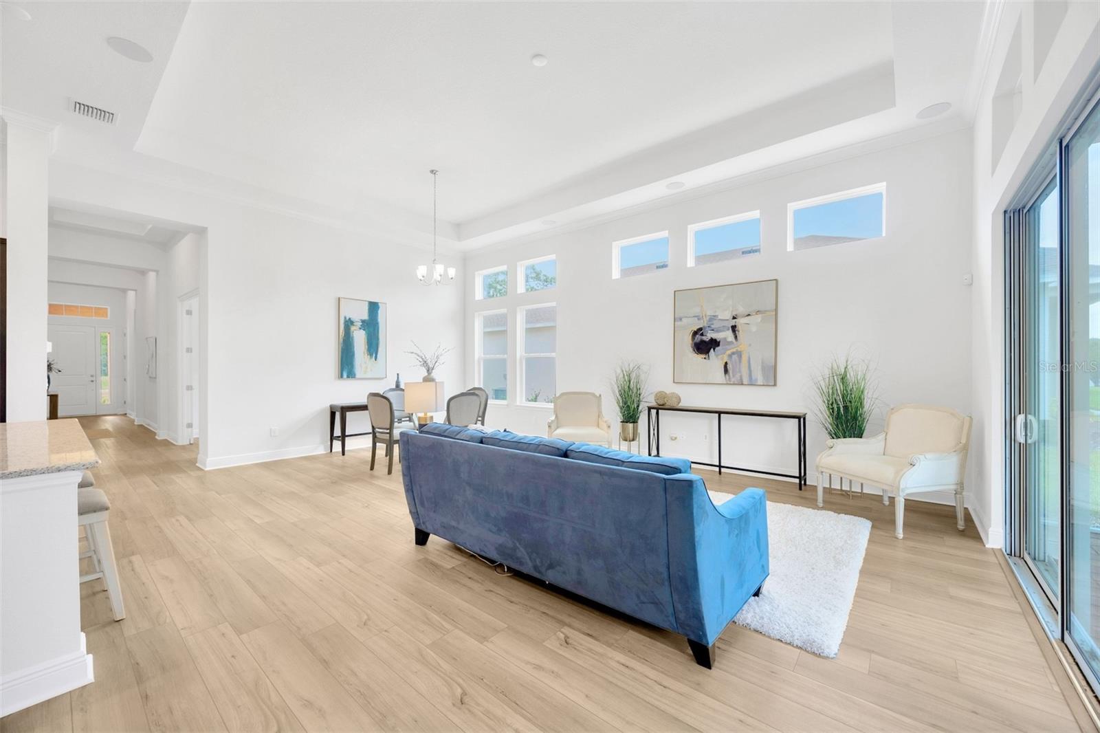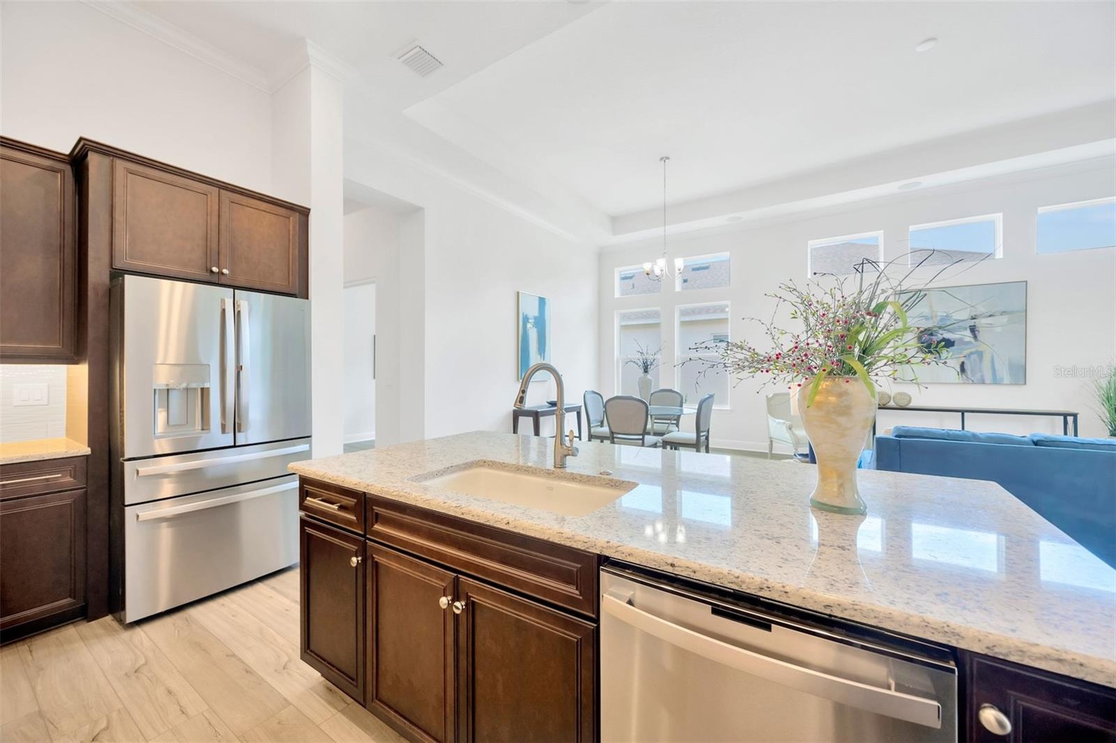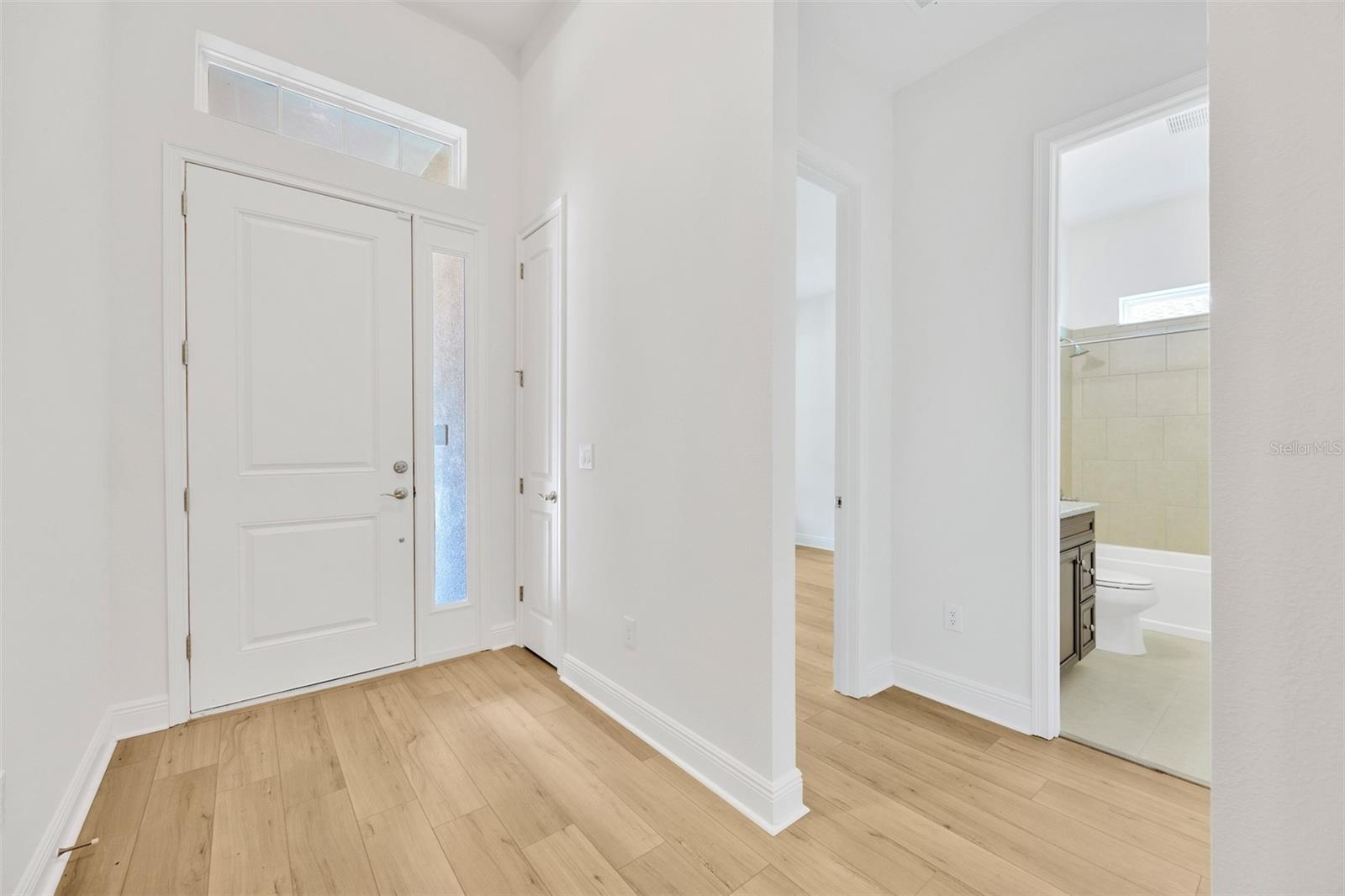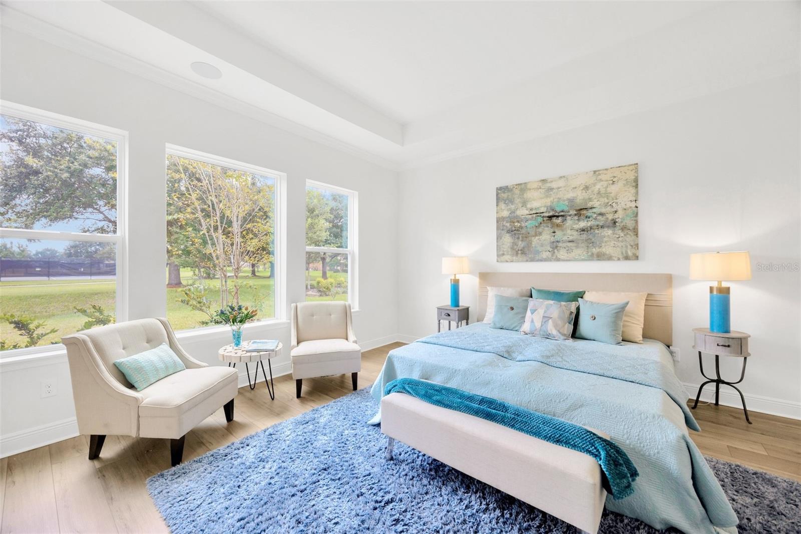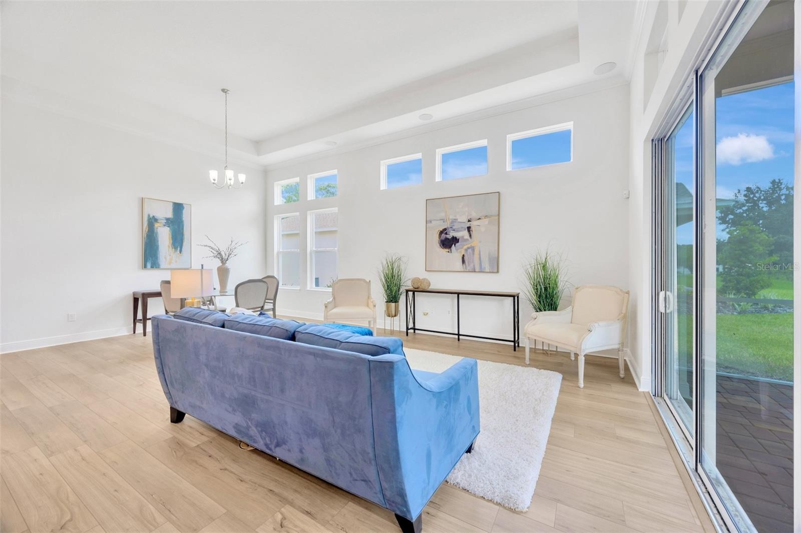STUNNING NEW CONSTRUCTION ICI Homes Serena Floor Plan features 3 Bedrooms/2.5 Baths/3 Car Tandem Garage + OFFICE and NEW COVERED SCREENED LANAI! The Serena offers over 2100sf of living space in this bright and open home. As you step into the entryway, you’re greeted by views of the covered, screened lanai and back yard. To your left are two secondary bedrooms which share a full bath. Walk down the hallway and to your left is the office featuring glass front doors and windows to allow plenty of natural light. To your right is the large laundry room with a utility sink, overhead cabinets and granite counters. The heart of the home is the great room and kitchen. This is truly a gourmet cook’s delight! Plenty of cabinet space for storage in addition to the double-door pantry, built-in convection oven and microwave and gorgeous stainless steel hood (vented outdoors, of course). Each lower cabinet has wood pull-out drawers and all cabinets and drawers are soft-closing. Yes, drawers! How many times have you wished for more drawer space in your kitchen? The GE Profile Stainless Steel appliance package includes the Convection Oven, Microwave, Stainless Steel Range Hood, Induction Cooktop, Dishwasher and Smart 4-Door French Door Refrigerator. The Primary Suite has been EXTENDED 2 FT, giving this room a luxurious feel. The ensuite bath features a granite counter vanity with his/hers sinks, frameless glass shower with river rock floor, corner seat and niche to store your toiletries. The walk-in closet is HUGE and features a luggage shelf around 3 sides of the top 2’ of the closet. Unwind after a hectic day and relax on your brick-paved lanai which has been PRE-PLUMBED FOR SUMMER KITCHEN. The PRIVACY SCREENING on the lanai lets you see what's happening out back, but no one can see in. Let your imagination run wild with possibilities of what you could do to create your back yard oasis. Just out back is the community park which features pickleball courts, dog runs, basketball court and playground. There's also a walking path that winds through the community golf course for a picturesque morning or evening stroll. It's like having your own private play area! Just imagine entertaining here! The garage is deceiving! Looks like 2-car garage, but is actually a 3- car tandem – plenty of space for storage of toys! There’s even a separate 220-volt outlet for an EV or golf cart. The home is wired for security and surround sound in the Great Room, Primary Suite and Lanai. All doors are 8’ giving this home a grand look and feel. No detail has been overlooked! Lake Jovita is located minutes from historic downtown Dade City, 20 minutes north of Tampa and 1 Hour from Orlando. This luxurious master-planned community features scenic 36 hole championship golf course, miles of walking trails, social clubs and gorgeous Clubhouse with fitness center, banquet hall and restaurant. Shopping and restaurants are minutes away with more to come! Experience the Florida lifestyle in luxury!