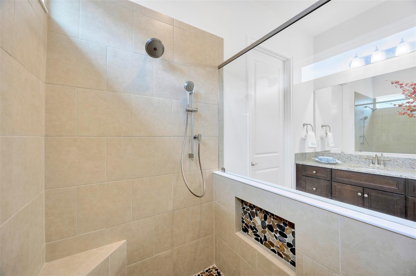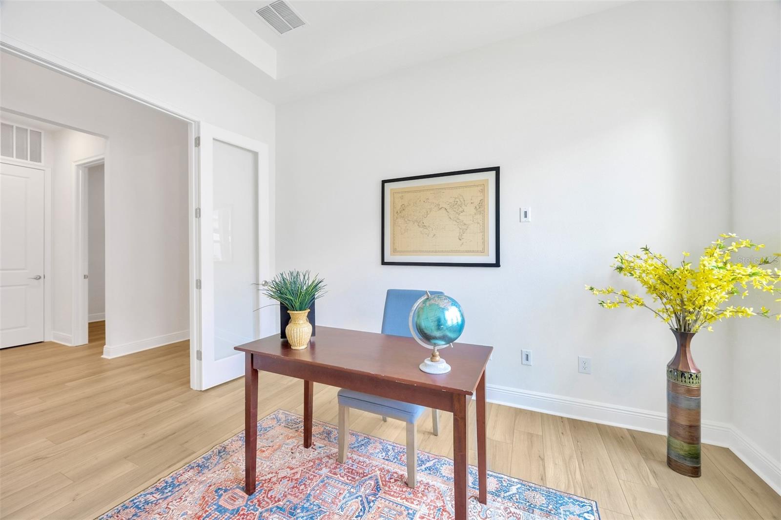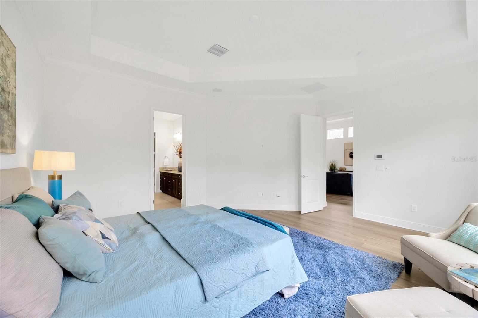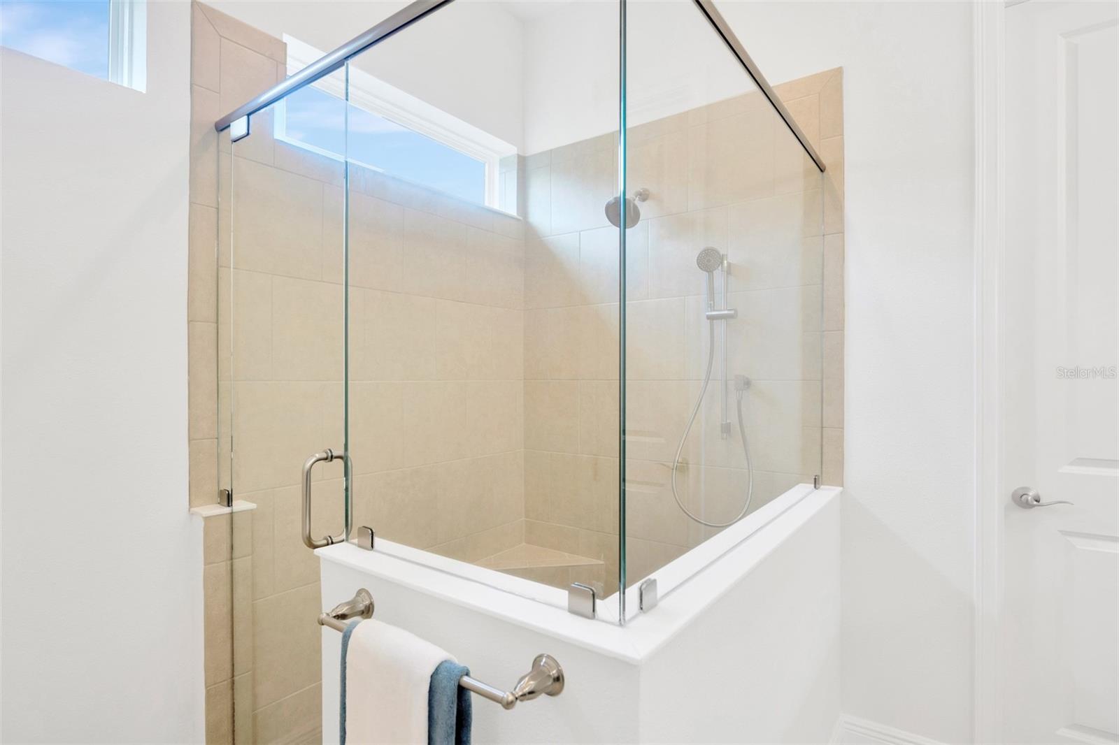 STUNNING NEW CONSTRUCTION ICI Homes Serena Floor Plan features 3 Bedrooms/2.5 Baths/3 Car Tandem Garage + OFFICE and NEW COVERED SCREENED LANAI! The Serena offers over 2100sf of living space in this bright and open home. As you step into the entryway, you’re greeted by views of the covered, screened lanai and back yard. To your left are two secondary bedrooms which share a full bath. Walk down the hallway and to your left is the office featuring glass front doors and windows to allow plenty of natural light. To your right is the large laundry room with a utility sink, overhead cabinets and granite counters. The heart of the home is the great room and kitchen. This is truly a gourmet cook’s delight! Plenty of cabinet space for storage in addition to the double-door pantry, built-in convection oven and microwave and gorgeous stainless steel hood (vented outdoors, of course). Each lower cabinet has wood pull-out drawers and all cabinets and drawers are soft-closing. Yes, drawers! How many times have you wished for more drawer space in your kitchen? The GE Profile Stainless Steel appliance package includes the Convection Oven, Microwave, Stainless Steel Range Hood, Induction Cooktop, Dishwasher and Smart 4-Door French Door Refrigerator. The Primary Suite has been EXTENDED 2 FT, giving this room a luxurious feel. The ensuite bath features a granite counter vanity with his/hers sinks, frameless glass shower with river rock floor, corner seat and niche to store your toiletries. The walk-in closet is HUGE and features a luggage shelf around 3 sides of the top 2’ of the closet. Unwind after a hectic day and relax on your brick-paved lanai which has been PRE-PLUMBED FOR SUMMER KITCHEN. The PRIVACY SCREENING on the lanai lets you see what's happening out back, but no one can see in. Let your imagination run wild with possibilities of what you could do to create your back yard oasis. Just out back is the community park which features pickleball courts, dog runs, basketball court and playground. There's also a walking path that winds through the community golf course for a picturesque morning or evening stroll. It's like having your own private play area! Just imagine entertaining here! The garage is deceiving! Looks like 2-car garage, but is actually a 3- car tandem – plenty of space for storage of toys! There’s even a separate 220-volt outlet for an EV or golf cart. The home is wired for security and surround sound in the Great Room, Primary Suite and Lanai. All doors are 8’ giving this home a grand look and feel. No detail has been overlooked! Lake Jovita is located minutes from historic downtown Dade City, 20 minutes north of Tampa and 1 Hour from Orlando. This luxurious master-planned community features scenic 36 hole championship golf course, miles of walking trails, social clubs and gorgeous Clubhouse with fitness center, banquet hall and restaurant. Shopping and restaurants are minutes away with more to come! Experience the Florida lifestyle in luxury!