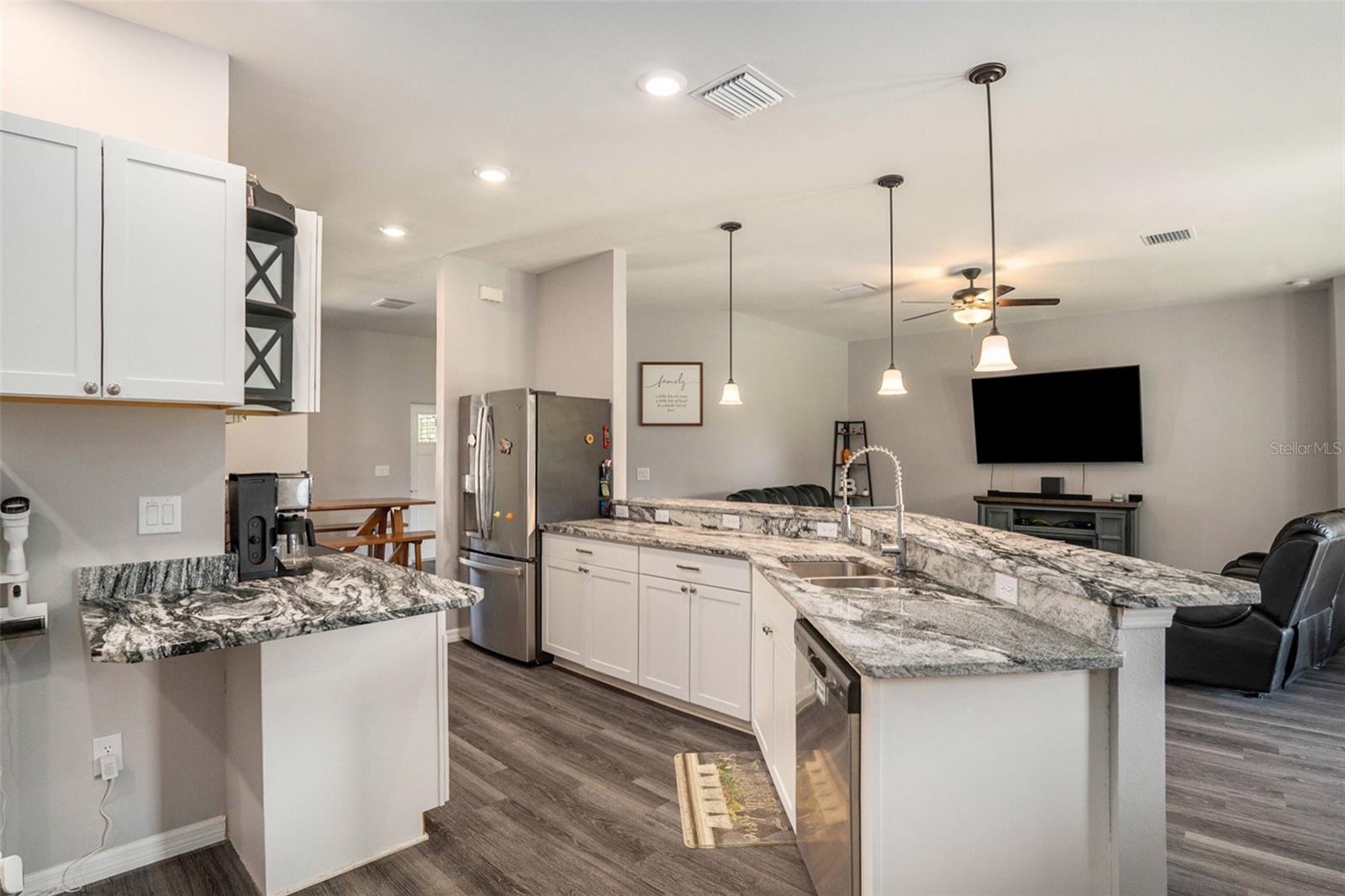 One or more photo(s) has been virtually staged. Welcome to your dream home in the serene Whispering Oaks neighborhood of Ridge Manor, FL! This stunning brand new 2023 construction boasts a spacious layout with 4 bedrooms and 3 bathrooms, offering ample space for comfortable living and entertaining. Upon entering, you'll be greeted by an inviting open floor plan, seamlessly blending the living, dining, and kitchen areas. The modern kitchen is adorned with elegant granite countertops, providing both style and functionality for your culinary endeavors. The master suite is a luxurious retreat, featuring a generous bedroom space, a walk-in closet, and a master bath complete with premium fixtures and finishes. Three additional bedrooms offer versatility for guests, a home office, or hobbies, ensuring everyone has their own space to unwind. Outside, the property sits on an oversize lot, offering plenty of room for outdoor activities, gardening, or simply enjoying the beautiful Florida weather. Whether you're hosting a barbecue with friends or relaxing in the sunshine, the spacious yard provides endless possibilities for outdoor enjoyment. Located in the sought-after Whispering Oaks neighborhood, you'll enjoy a peaceful atmosphere surrounded by nature's beauty, yet still conveniently close to Historic Downtown Brooksville, Downtown Dade City, shopping, dining, and recreational amenities. With its combination of modern elegance, comfort, and prime location, this immaculate home offers the perfect opportunity to embrace the Florida lifestyle to its fullest. Don't miss out on the chance to make this exquisite property your own!