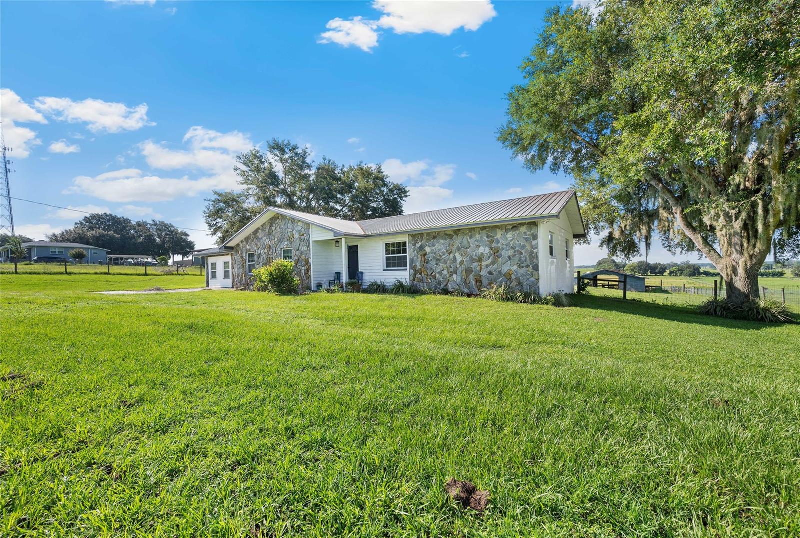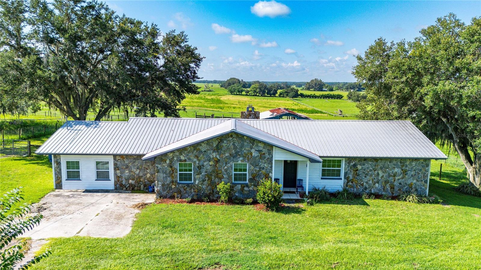 Enjoy all that country living has to offer with this 3-bedroom, 3-bath home situated on over 4 acres. When you enter the home, you will immediately feel the warmth of a comfortable and relaxing abode. With a ranch style floor plan and plenty of community space, between the family room and living room and an additional spacious bonus room, there will always be space for togetherness... or maybe a little personal space! What a wonderful way to wind down for the evening, then cozying up to the gorgeous wood burning fire place in the living room with gorgeous pecky cypress covered walls. Off the kitchen you will find the oversized bonus room which features brand new luxury vinyl floors, and you will also find bathroom 3 with a walk in shower. You can step into the screen covered back porch with amazing views of rolling hills and pastures for that morning cup of coffee. The spacious owner’s suite features a walk-in closet, vanity area and an oversized garden tub. Some additional of the amenities of the home include solid wood cabinets, brand new refrigerator, upgraded Green star windows, inside laundry room. There are NO DEED RESTRICTIONS, so bring the boat, RV, ATVs, etc. AC ZONING also allows livestock, chickens, and swine, so bring the animals too! Conveniently located near I-75 and just a short drive to Wesley Chapel. Call today for your private showing!