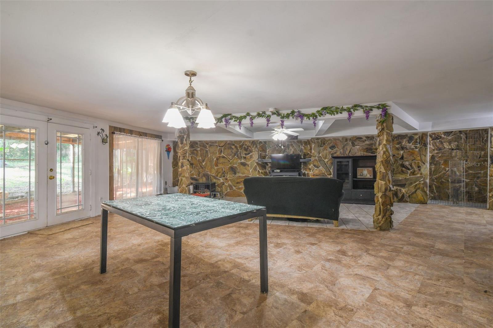 *** BACK ON MARKET WITH EXCITING NEWS *** This unique Dade City home which sits on 2.96 acres of privacy and serenity just got a fresh start with a new roof (February 2025) and remodel of two bedrooms, walk-in closet and bathroom (in progress). This one-of-a-kind home offers 3 bedrooms, 2.5 bathrooms, family room and bonus room. The open floor plan is adorned with intricate real stonework with plenty of elbow space for the large or extended family. New appliances installed 06/2024, ceiling fans and inside laundry, and a freshly painted interior. The home is also connected to an exterior emergency generator system. The well is 100 ft deep with a new motor, pipes and gauges (installed 08/2023). There is also a 6-stall center aisle horse barn and 2 bonus stalls that could also be used for storage. There is a green house, a tool barn (17’ x 23' with concrete floor and 2nd floor loft), and 2 additional outbuildings. The property is fenced and crossed fenced. Close to shopping, restaurants, hospitals, I-75, Tampa International, beaches and Disney.