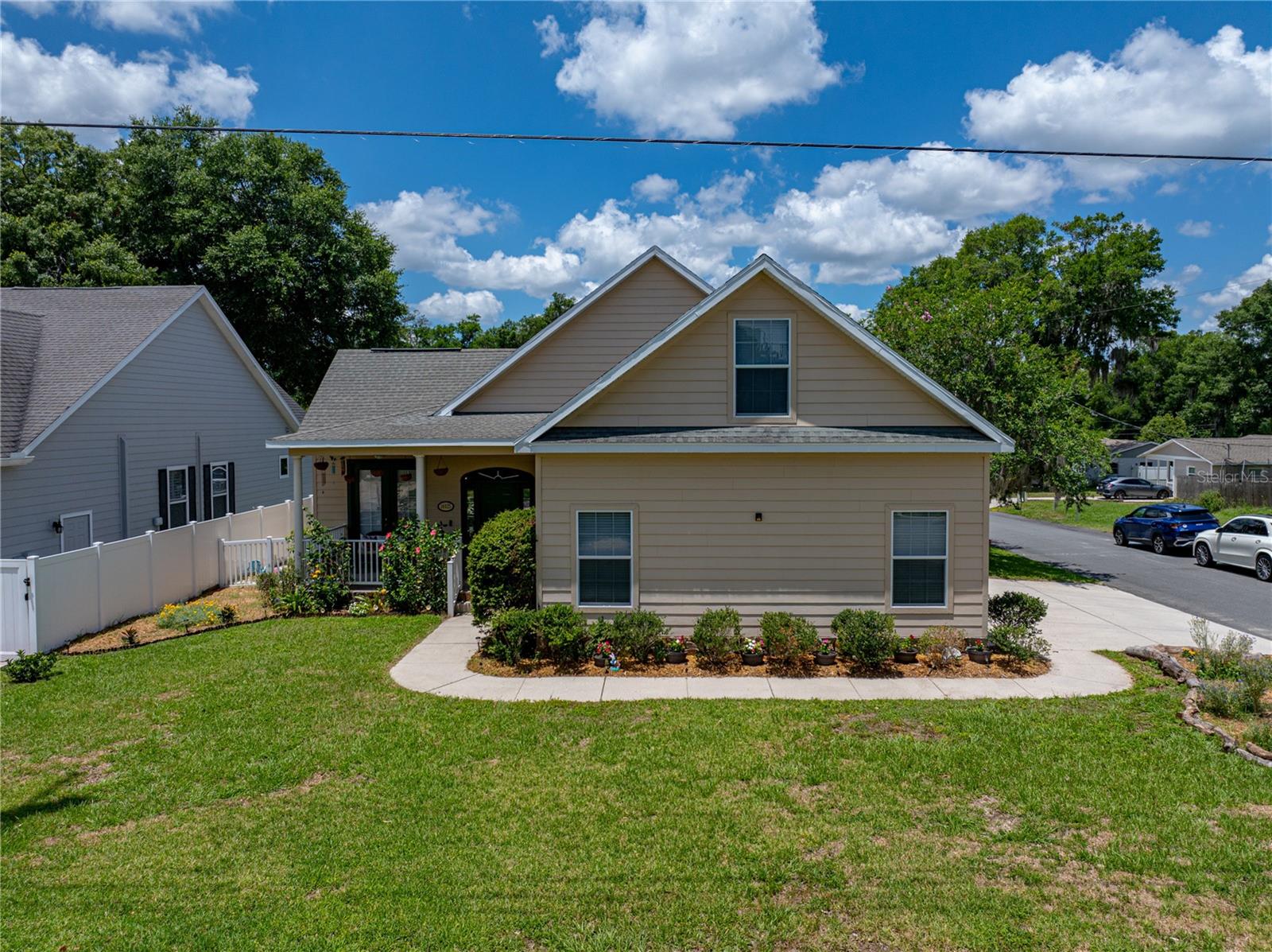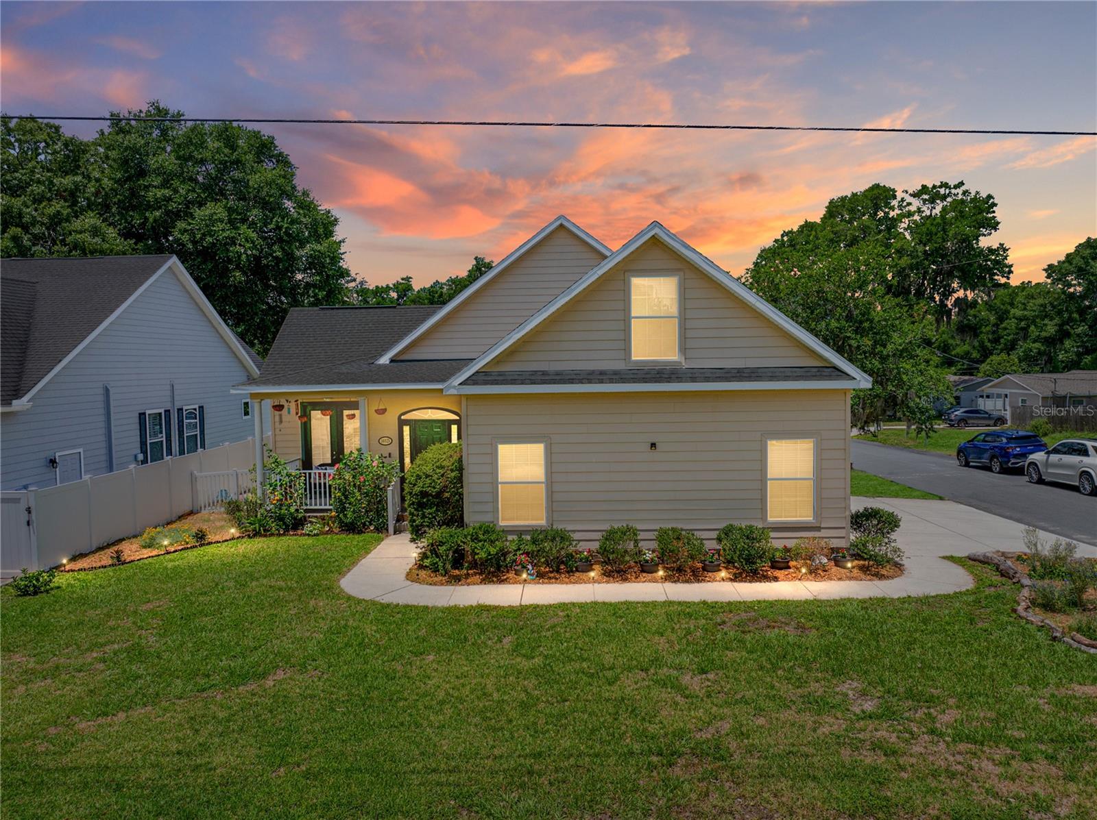 Discover the charm of this custom-built traditional home in historic Downtown Dade City! Built in 2006, this 4 bedroom, 3 bathroom, + office home spans 2,232 square feet of comfortable living space. Nestled on an oversized corner lot, it's just a short walk to all the downtown shops and restaurants and only a block away from the beloved "Church Street Christmas" festivities on historic Church Street. An inviting curb appeal welcomes guests to the property with lovely mature landscaping, a 2 car side facing garage, Hardie board siding, a covered front porch, and a vinyl-fenced yard. The spacious living room provides French door access to both the front and rear porches, as well as double-door entry to the dedicated executive office. The kitchen features 36" oak cabinets, a cabinet pantry, granite countertops, breakfast bar seating, and a generous breakfast nook. 3 bedrooms and 2 bathrooms are on the first floor, including 2 guest bedrooms, a full guest bath with a tub/shower combo, and the primary suite. The primary suite is the perfect retreat at the end of a long day; it offers 2 walk-in closets, bay windows, back porch access, and an ensuite bathroom with a soaking tub, a granite vanity, and a custom tongue and groover Western Cedar Sauna with a bench. Stroll upstairs to an ideal guest suite. Being the only room on the second floor and with its own ensuite bathroom, this is a great space to house older children, in-laws, or out-of-town guests. Relax and unwind from the comfort of the covered back porch, play in the fenced yard, explore Downtown Dade City, or enjoy quick access to major highways- this home provides an opportunity for it all! Call us today for your private tour of this beautiful custom home! Seller will contribute $5,000 towards closing costs or repairs/upgrades.