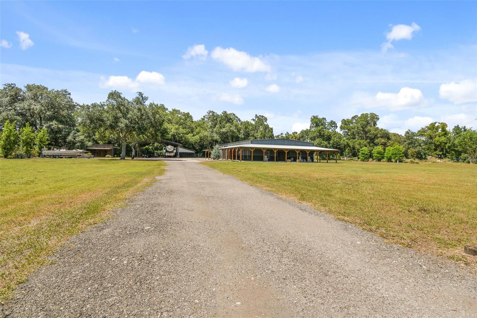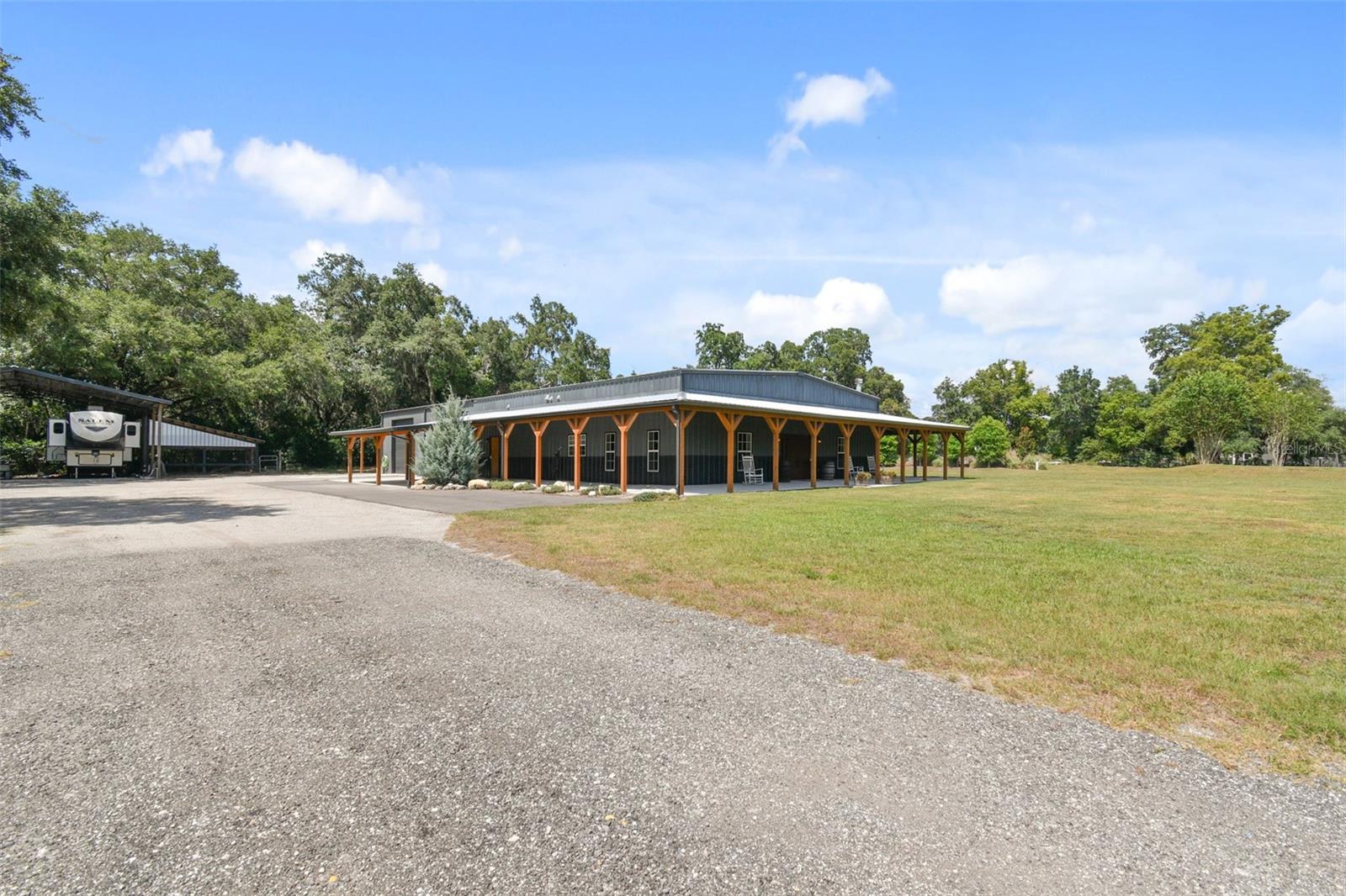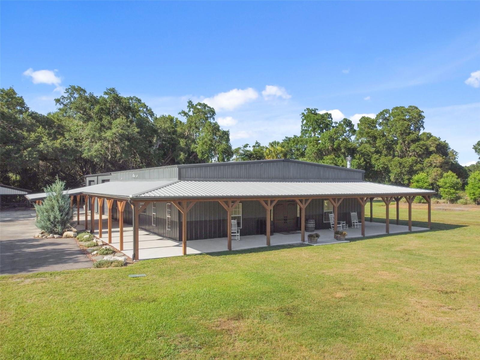 NOT IN A FLOOD ZONE - NO DAMAGE, LEAKS, OR FLOODING DURING HURRICANES HELENE OR MILTON!! BARNDOMINIUM ON 3.5 ACRES WITH GATED ENTRY!! THIS TRANQUIL PROPERTY BOASTS IN EXCESS OF 10,000 SQ.FT. UNDERROOF (MAIN HOUSE/GARAGE/WRAP-AROUND PORCHES/POLE BARN/IN-LAW SUITE)!! THE MAIN HOUSE BOASTS 3,036 SQ.FT AND INCLUDES 3 BEDROOMS 2.5 BATHROOMS, LARGE MUDROOM WITH WASHER DRYER HOOK-UP, LAUNDRY SINK, BUILT-IN STORAGE AND PLENTY OF ROOM FOR YOUR DREAM MUDROOM AND LAUNDRY ROOM COMBO. FABULOUS GOURMET KITCHEN WITH CUSTOM 42” CABINETS, DOUBLE OVEN, CUSTOM RANGE HOOD, STAINLESS FARMHOUSE SINK, STACKED STONE BACKSPLASH, CUSTOM BUTCHER BLOCK COUNTERS AND WAIT TILL YOU GET A LOOK AT THE HIDDEN PANTRY THAT INCLUDES A SINK AND LOADS OF STORAGE FOR ALL YOUR SMALL APPLIANCES AND PANTRY ITEMS. THE GREAT ROOM HAS 16’ CEILINGS, WOOD BURNING FIREPLACE, HALF BATH FOR GUESTS, DINING ROOM WITH BUILT IN BUFFET, BEVERAGE FRIDGE AND PLENTY OF SPACE FOR ENTERTAINING. FRENCH DOORS WALK-OUT TO YOUR OVER 2,000 SQ.FT. EXPANSIVE WRAP AROUND PORCH WITH UNMATCHED VIEWS OF YOUR PRIVATE POND AND BEAUTIFUL LANDSCAPING. THE SERENE PRIMARY SUITE INCLUDES A SPA LIKE LUXURIOUS ENSUITE BATHROOM WITH CUSTOM CABINETS, BEAUTIFULLY TILED WALK-IN SHOWER, SOAKING TUB, PRIVATE WATER CLOSET AND WALK-IN CLOSET. THE TWO ADDITIONAL BEDROOMS HAVE LARGE CLOSETS, GREAT NATURAL LIGHT AND SHARE THE HALL BATHROOM WITH DOUBLE SINK AND SHOWER/TUB COMBO. UPSTAIRS 200 SQ.FT. BONUS ROOM FOR OFFICE SPACE, STORAGE, PLAYROOM OR WHATEVER YOUR FAMILY MAY NEED. THIS 3.5 ACRE PROPERTY HAS AN ADDITIONAL 600 SQ.FT. DETACHED IN-LAW SUITE/MAN CAVE/GAMEROOM/BAR/OFFICE WITH WALK-IN CLOSET AND FULL BATHROOM. PREVIOULSY USED AS GUESTHOUSE, INCLUDES AC WALL UNIT AND FULLY PLUMBED FOR KITCHEN. A 1,520 SQ. FT. POLE BARN FOR COVERED BOAT & RV STORAGE, 300 SQ.FT. CHICKEN COOP, PROFESSIONALLY LANDSCAPED CEDAR TREES FOR PRIVACY WITH INSTALLED TIMER IRRIGATION SYSTEM, 750 SQ.FT. COVERED OUTDOOR KITCHEN WITH ROOM FOR ALL YOUR GUESTS, GARDEN AREA, PRE-WIRED FOR YOUR FUTURE POOL, WORKSHOP/TOOL SHED AND LOADS OF ROOM FOR ALL YOUR TOYS IN YOUR 2,164 SQ.FT. ENCLOSED GARAGE. DO NOT MISS THIS MAGNIFICENT BARNDO PROPERTY WITH EVERYTHING YOU NEED. LIVE WITHIN THE PEACE AND SERENITY OF NATURE YET CLOSE TO ALL THE MODERN-DAY NECESSITIES. GROCERY, SHOPPING, TARGET, WALMART, SAMS, COSTCO, RESTAURANTS ALL WITHIN SHORT DISTANCE. PROPERTY IS ON WELL WATER AND SEPTIC SYSTEM. ALL ROOM SIZES AND MEASURMENTS ARE APPROXIMATE. BUYER/BUYER'S AGENT TO VERIFY. ZONED AGRIGULTURE RESIDENTIAL. MILLER ROAD IS SCHEDULED TO BE PAVED. SCHEDULE YOUR SHOWING TODAY!!
