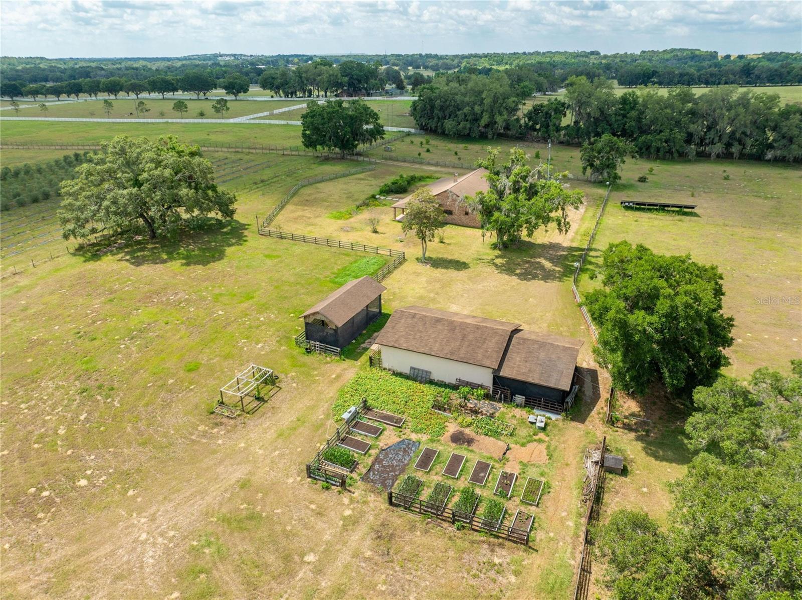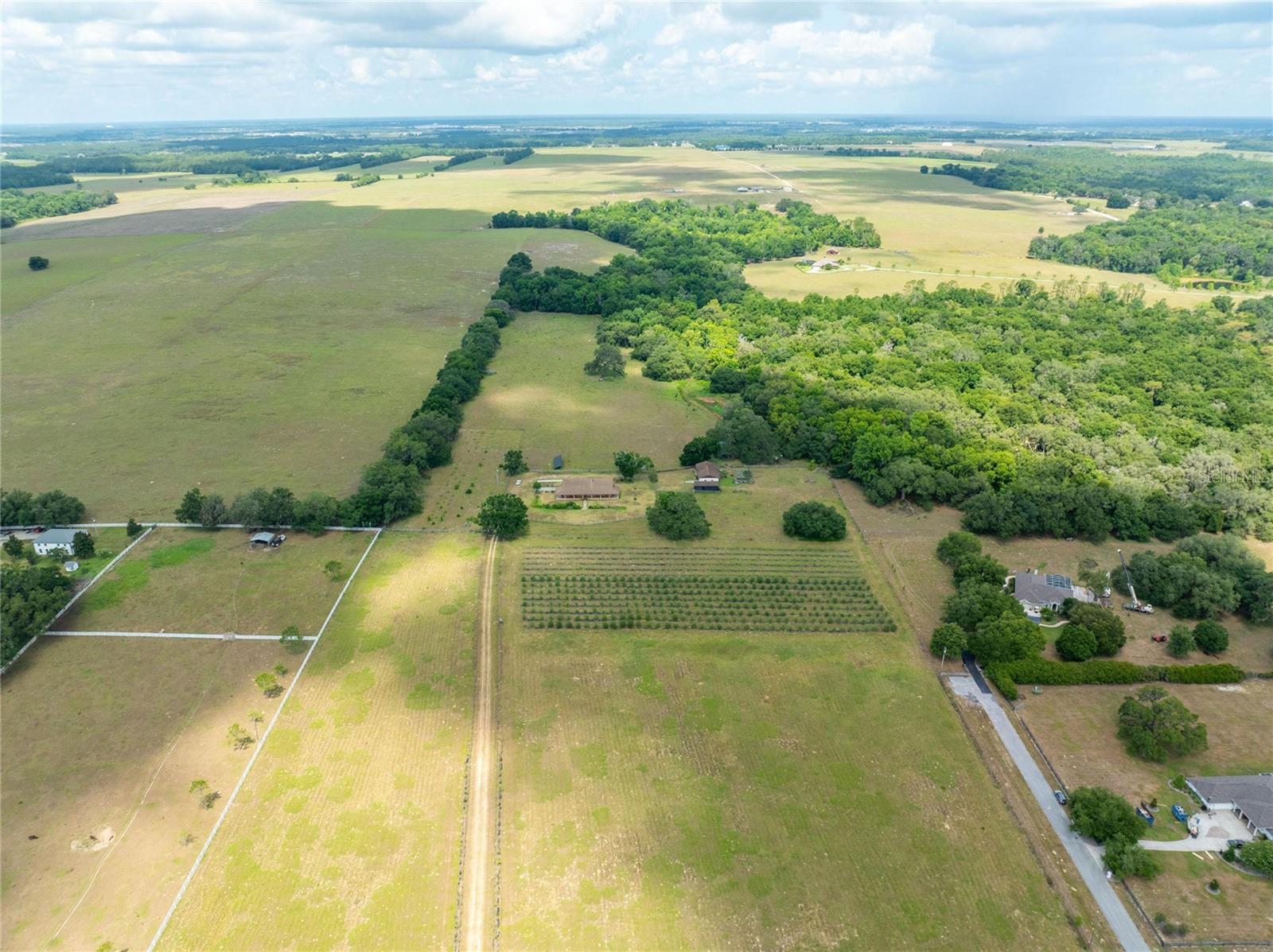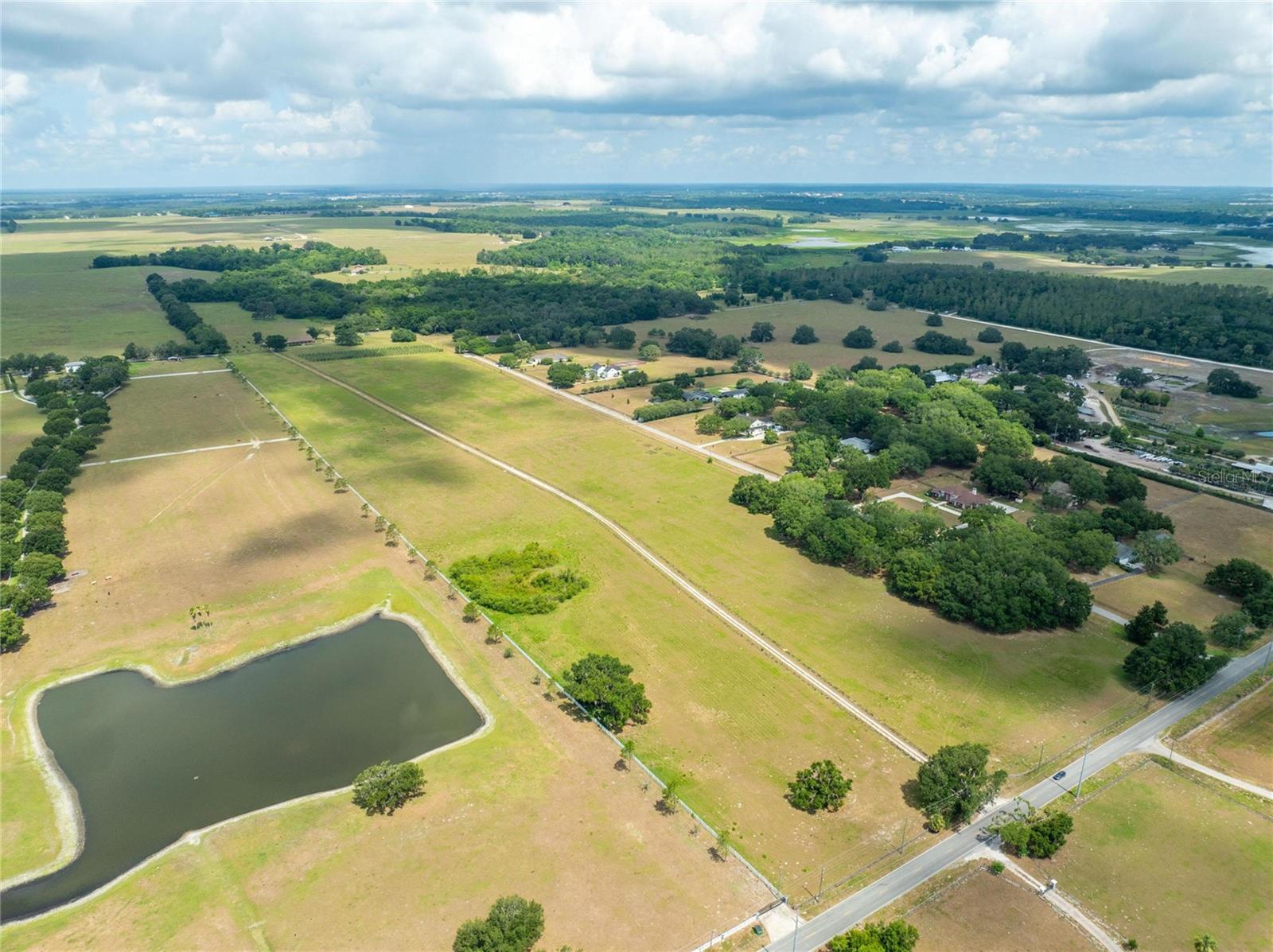 Seize the opportunity to invest in a prime 60-acre (MOL) high and dry buildable lot, strategically located next to new, upcoming developments. With direct access to Fort King Road, this property is currently zoned AC, with future land use designated as VMU2B (Village Mixed Use Type 2-B). Situated in one of the most strategic areas in Pasco County. Location highlights include being just 7 minutes from "Mirada Lagoon," the largest development in Pasco County, featuring over 5,000 homes, and only 5 miles from Downtown Zephyrhills, 6 miles from Downtown Dade City, and 3 miles from Walmart Supercenter, Lowe's, Publix, and local hospitals. It is centrally located with excellent connections to Tampa, Orlando, Lakeland, Zephyrhills, Dade City, San Antonio, and Wesley Chapel via US 98, US 301, I-4, and I-75. The property features a beautiful custom brick home with 3 bedrooms, 2 baths, offering 2,520 sq. ft. of living space plus an additional 400 sq. ft. gym/office. The home includes an open living and dining area with vaulted ceilings and a wood-burning fireplace, leading to a charming screened back porch overlooking a scenic pond. The modern kitchen features a large center island, Jenn-Air cooktop, granite countertops, stainless steel appliances, an oversized walk-in pantry, and a spacious laundry room off the kitchen. The roof was replaced in 2017. Additional structures include a separate 1,200 sq. ft. masonry equipment barn/workshop with a half bath and sink, an RV/boat carport with water, sewer, and electric hookups, a 600 sq. ft. equipment bay, and a row of 6 beautiful, strong, and secure chicken coops, each measuring 10 ft. by 12 ft., totaling 720 sq. ft. The property also features solar panels, a 225 ft. deep well. The land can be divided into three 20-acre parcels, offering flexibility for various subdivision options or maintaining a contiguous 60-acre parcel. It is currently Green-belted with leased hay/cow fields, presenting numerous development opportunities. This property is perfect for investors and developers, being ideal for office buildings, warehouses, medical facilities, townhomes, single-family residences, hotels, self-storage units, restaurants, and more. Situated in a high-traffic area, this property is poised to capitalize on the region's booming growth. This exceptional land opportunity in Pasco County is waiting for your vision. Call today for more information!