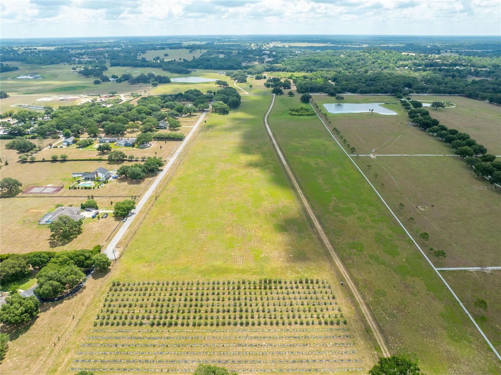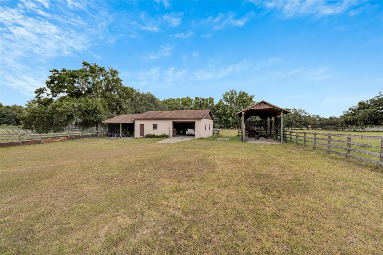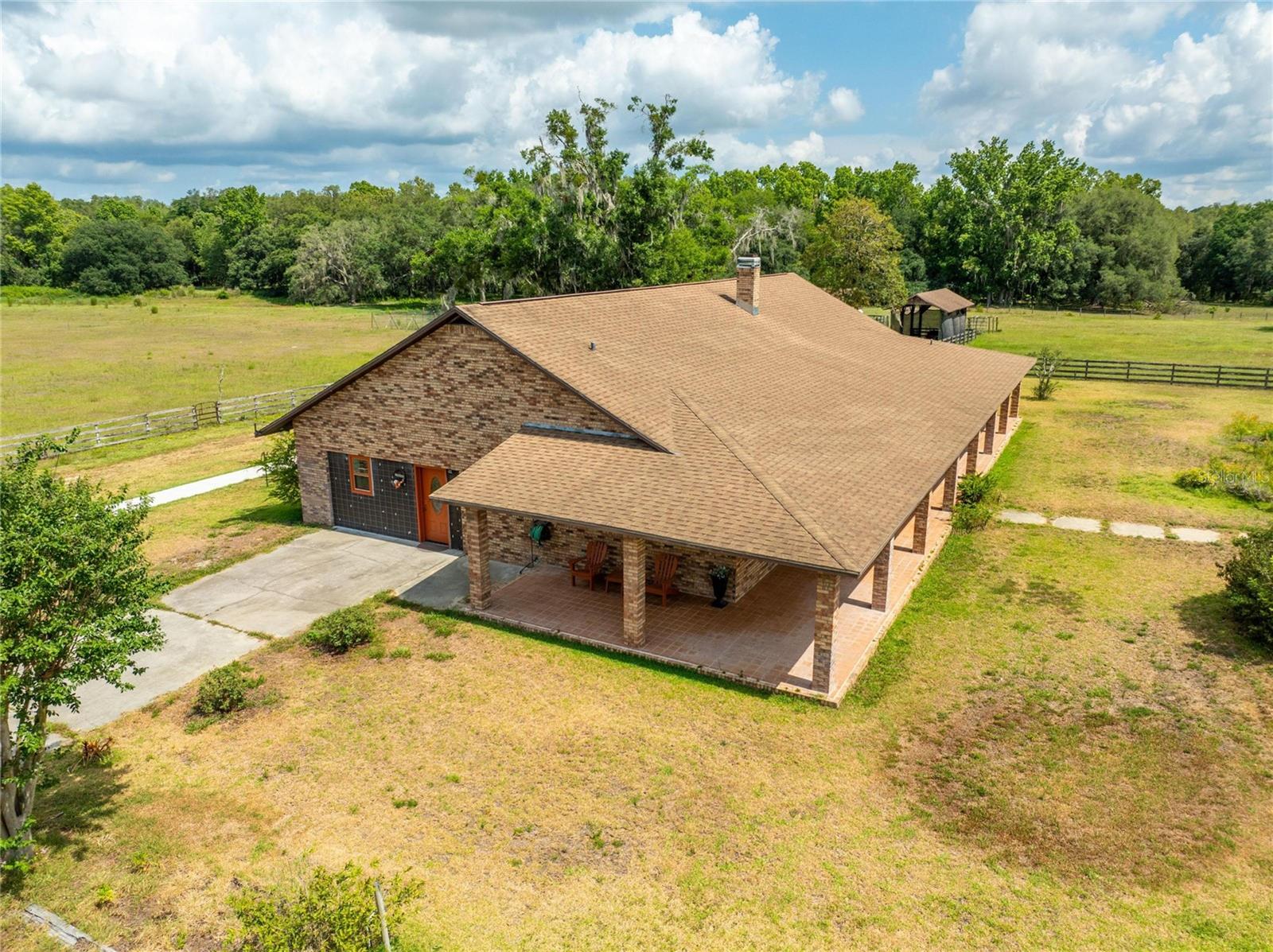 Seize the opportunity to invest in a prime 60-acre (MOL) high and dry buildable lot, strategically located next to new, upcoming developments. With direct access to Fort King Road, this property is currently zoned AC, with future land use designated as VMU2B (Village Mixed Use Type 2-B). Situated in one of the most strategic areas in Pasco County. Location highlights include being just 7 minutes from "Mirada Lagoon," the largest development in Pasco County, featuring over 5,000 homes, and only 5 miles from Downtown Zephyrhills, 6 miles from Downtown Dade City, and 3 miles from Walmart Supercenter, Lowe's, Publix, and local hospitals. It is centrally located with excellent connections to Tampa, Orlando, Lakeland, Zephyrhills, Dade City, San Antonio, and Wesley Chapel via US 98, US 301, I-4, and I-75. The property features a beautiful custom brick home with 3 bedrooms, 2 baths, offering 2,520 sq. ft. of living space plus an additional 400 sq. ft. gym/office. The home includes an open living and dining area with vaulted ceilings and a wood-burning fireplace, leading to a charming screened back porch overlooking a scenic pond. The modern kitchen features a large center island, Jenn-Air cooktop, granite countertops, stainless steel appliances, an oversized walk-in pantry, and a spacious laundry room off the kitchen. The roof was replaced in 2017. Additional structures include a separate 1,200 sq. ft. masonry equipment barn/workshop with a half bath and sink, an RV/boat carport with water, sewer, and electric hookups, a 600 sq. ft. equipment bay, and a row of 6 beautiful, strong, and secure chicken coops, each measuring 10 ft. by 12 ft., totaling 720 sq. ft. The property also features solar panels, a 225 ft. deep well. The land can be divided into three 20-acre parcels, offering flexibility for various subdivision options or maintaining a contiguous 60-acre parcel. It is currently Green-belted with leased hay/cow fields, presenting numerous development opportunities. This property is perfect for investors and developers, being ideal for office buildings, warehouses, medical facilities, townhomes, single-family residences, hotels, self-storage units, restaurants, and more. Situated in a high-traffic area, this property is poised to capitalize on the region's booming growth. This exceptional land opportunity in Pasco County is waiting for your vision. Call today for more information!