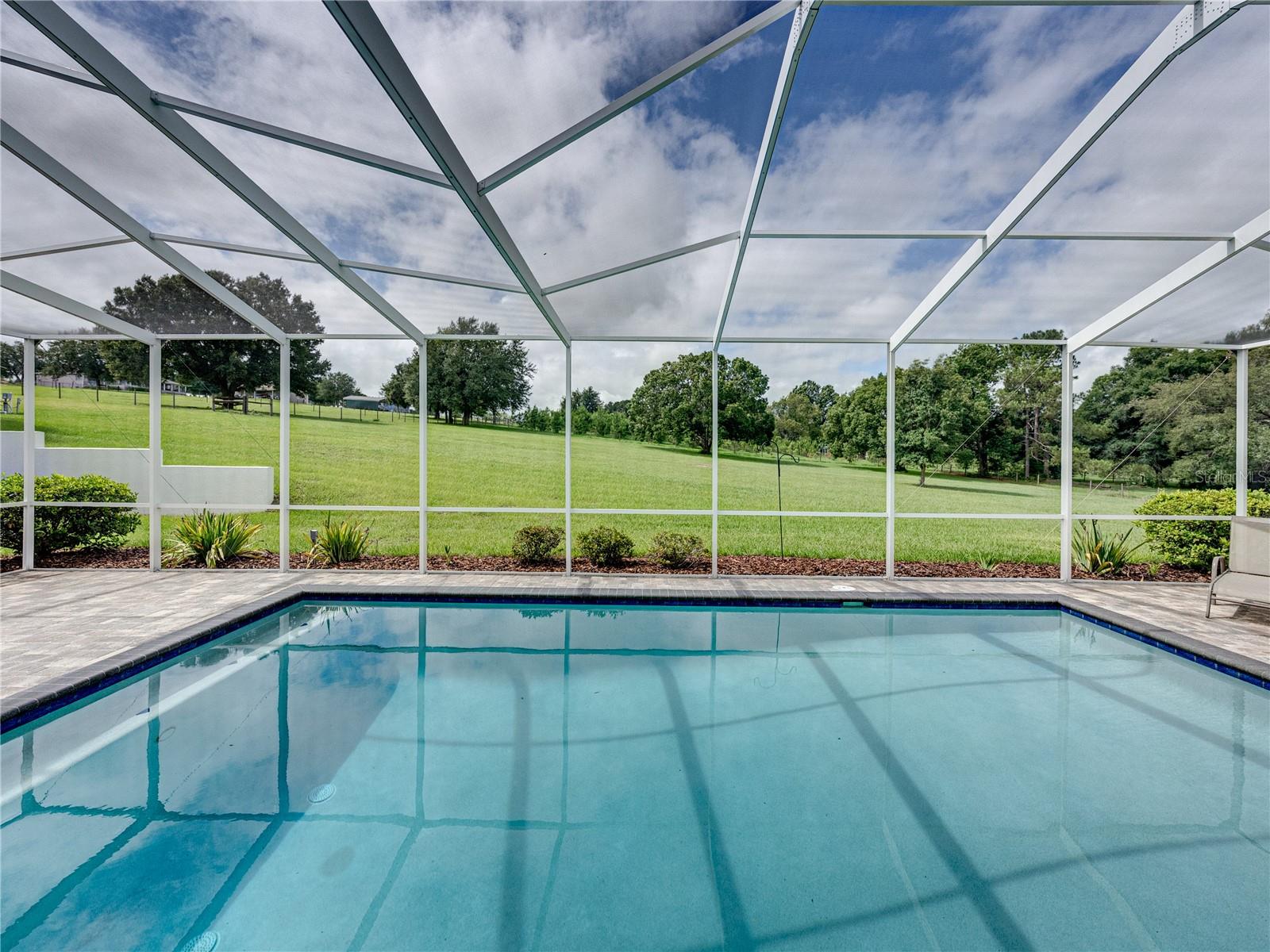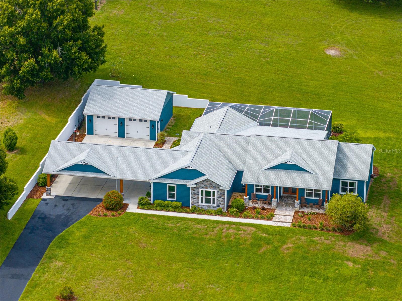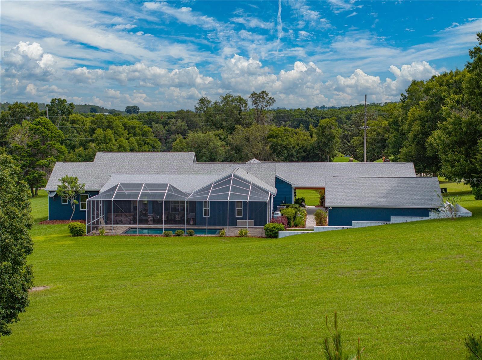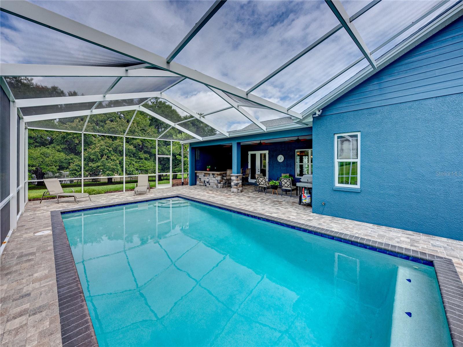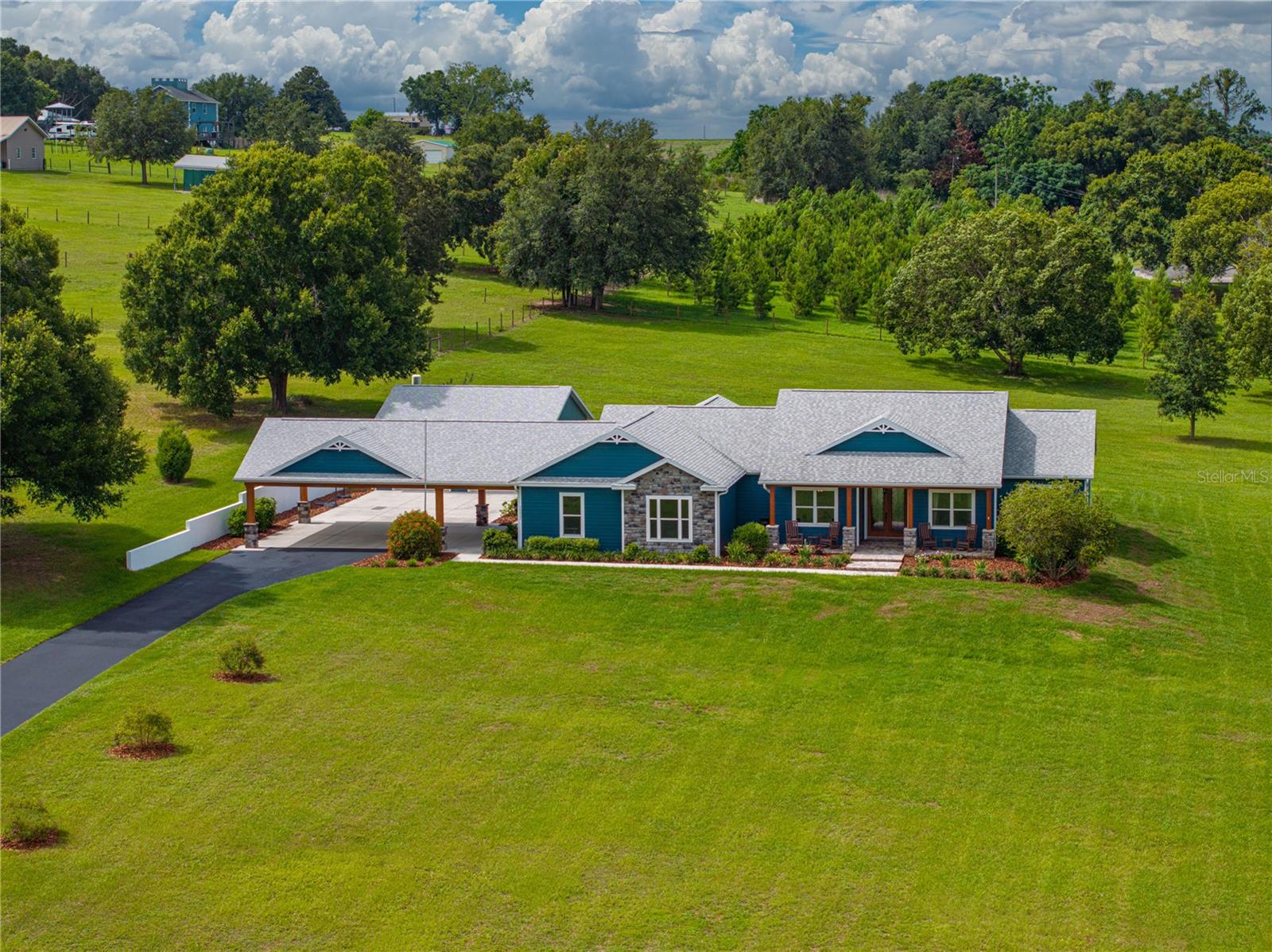 The epitome of luxurious rural Dade City living, this inviting 4 bed, 3.5 bath modern farmhouse pool home rests on 2.87 beautiful acres. Built in 2017, this property boasts a welcoming exterior with a stunning front elevation featuring stone and wood beam accents, a detached 2-car garage, an oversized covered parking area/patio, a lush lawn, lovely landscaping, and a picturesque front porch. Step inside to an open floor plan great room offering sweeping views of the main living areas and the pool beyond. Entertain with ease, enjoying the natural flow from the living room, formal dining room, and kitchen, all adorned with durable plank tile floors. Create culinary works of art from the well-equipped chef’s kitchen featuring leathered granite countertops, custom wood cabinetry, a built-in oven and microwave, 2 refrigerators, a cooktop, range hood, dry bar, walk-in pantry, stylish pendant lighting, and comfortable breakfast bar seating. For added convenience, the oversized covered parking has double-door access to the 26x25 family room, which provides an expansive entertaining space, luxury vinyl plank flooring, and it leads into the kitchen and laundry, allowing for easy cleanup and grocery drop off! Split away from the secondary bedrooms for privacy; the primary suite is a pleasant retreat at the end of the day; relax in the spacious sleeping quarters, head out through French doors to the patio and pool, or indulge in a spa-like experience within the ensuite bathroom offering an oversized soaking tub, a large walk-in shower, dual sinks, and a water closet. Two great-sized walk-in closets add extra storage space! Three guest bedrooms are on the opposite side of the home, each with a generous closet, plush carpeting, and access to a full ensuite bathroom. Live the ideal Florida lifestyle relaxing poolside under the covered patio with a bar area and seating or on the paver pool deck, enjoying the serene views of one of Dade City’s most desirable areas. Several quality finishes and upgrades have been completed in this one-of-a-kind home, including upgraded bathrooms with upscale light fixtures and tile work, a half bathroom for guests, a Generac Generator, Hardie Board siding, fresh exterior paint, and a detached 2 car garage with plenty of space to work on cars or store extra items. This location and this construction are truly top-notch. Call us today to privately tour this lovely home!
