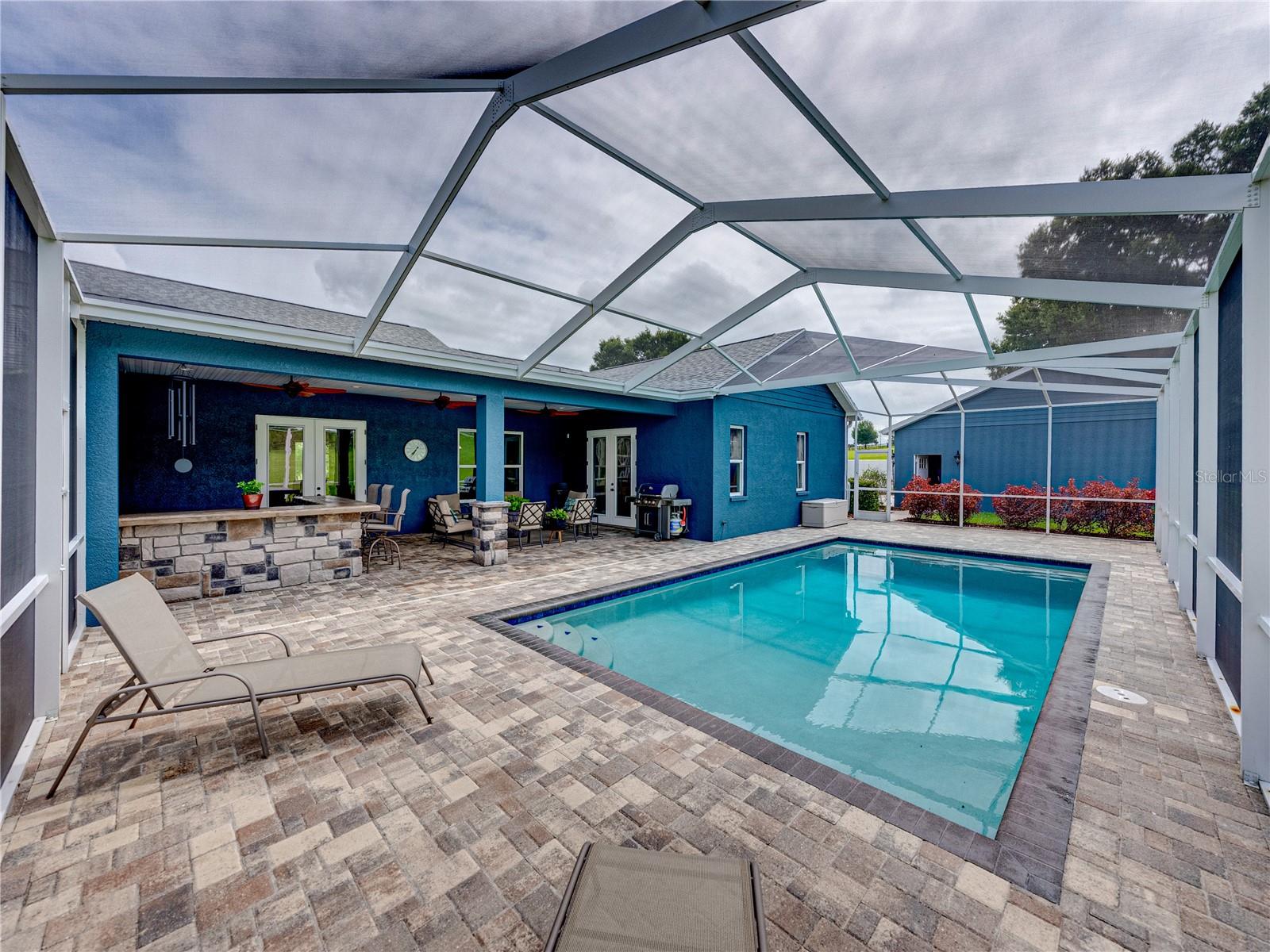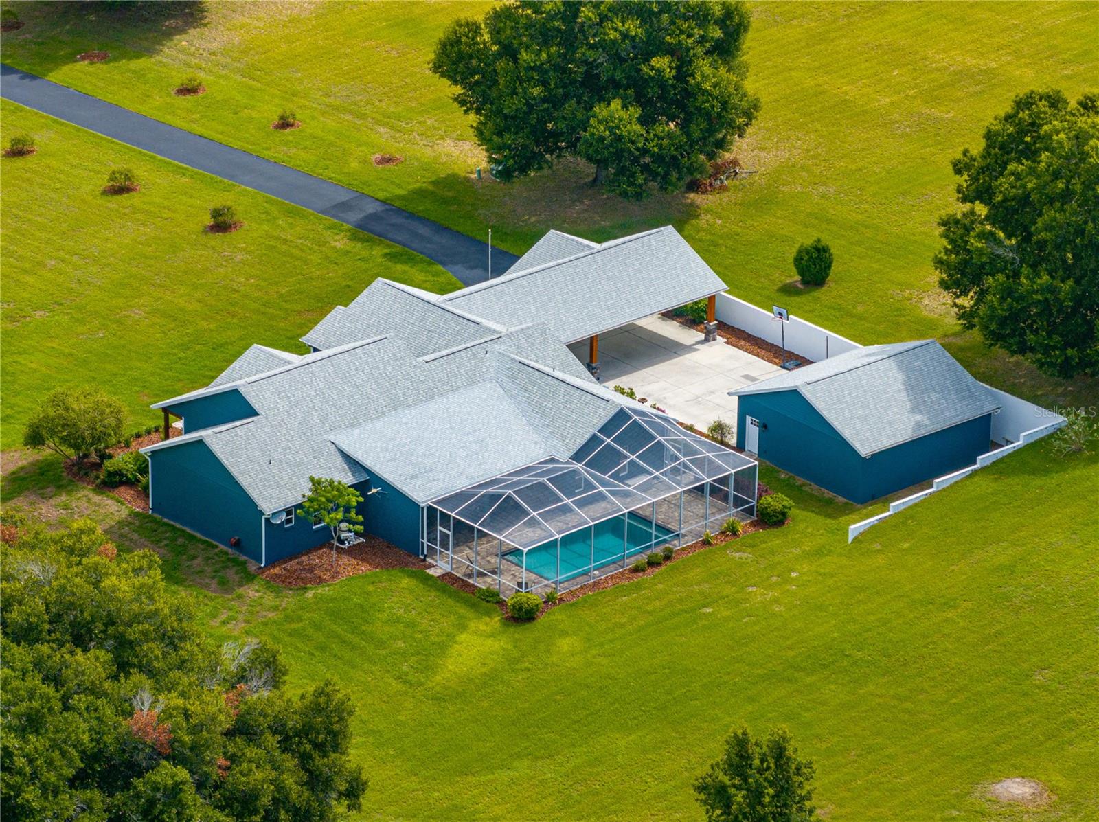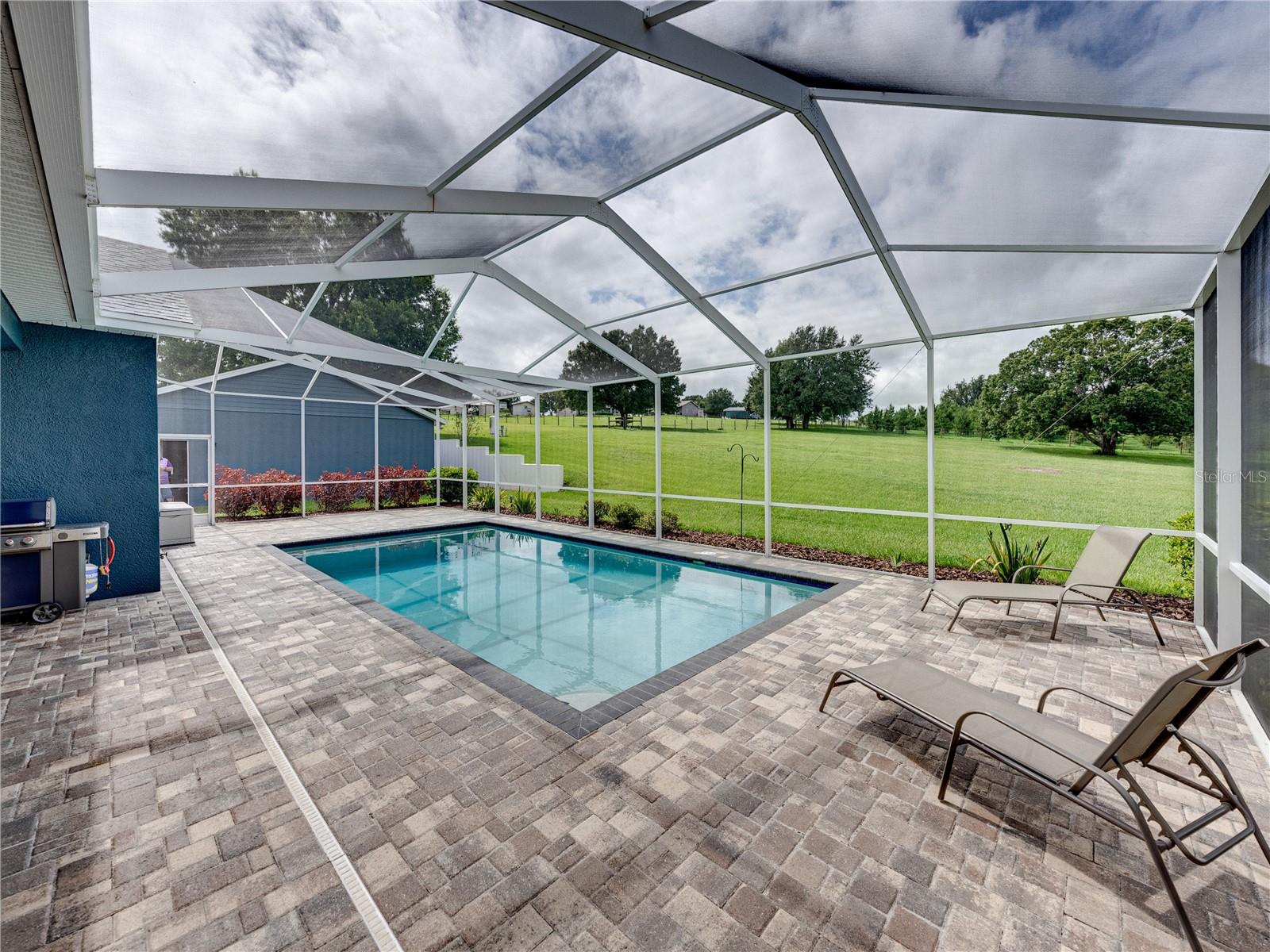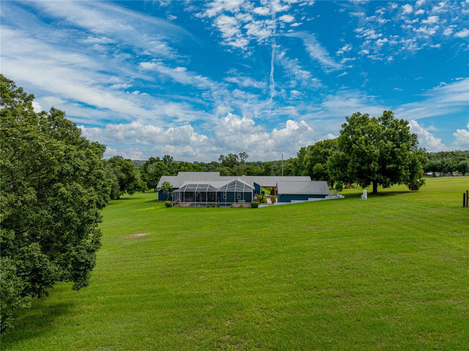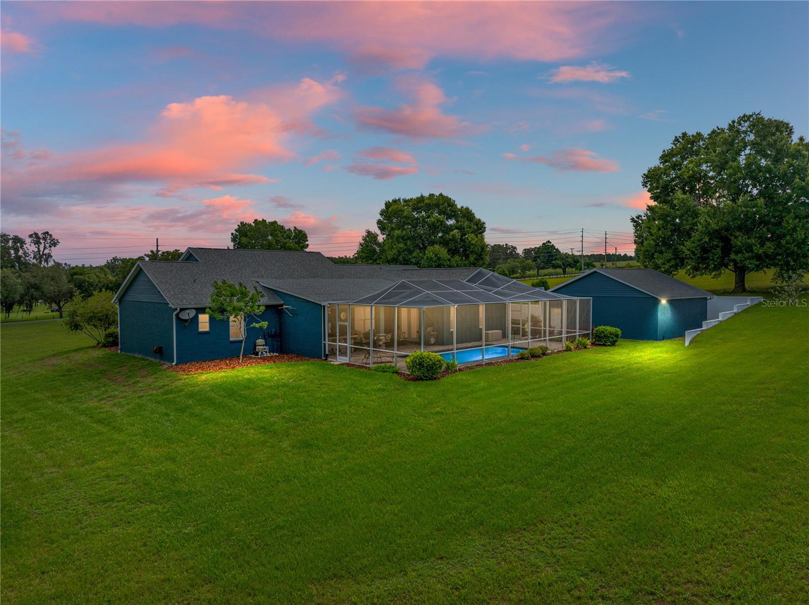 The epitome of luxurious rural Dade City living, this inviting 4 bed, 3.5 bath modern farmhouse pool home rests on 2.87 beautiful acres. Built in 2017, this property boasts a welcoming exterior with a stunning front elevation featuring stone and wood beam accents, a detached 2-car garage, an oversized covered parking area/patio, a lush lawn, lovely landscaping, and a picturesque front porch. Step inside to an open floor plan great room offering sweeping views of the main living areas and the pool beyond. Entertain with ease, enjoying the natural flow from the living room, formal dining room, and kitchen, all adorned with durable plank tile floors. Create culinary works of art from the well-equipped chef’s kitchen featuring leathered granite countertops, custom wood cabinetry, a built-in oven and microwave, 2 refrigerators, a cooktop, range hood, dry bar, walk-in pantry, stylish pendant lighting, and comfortable breakfast bar seating. For added convenience, the oversized covered parking has double-door access to the 26x25 family room, which provides an expansive entertaining space, luxury vinyl plank flooring, and it leads into the kitchen and laundry, allowing for easy cleanup and grocery drop off! Split away from the secondary bedrooms for privacy; the primary suite is a pleasant retreat at the end of the day; relax in the spacious sleeping quarters, head out through French doors to the patio and pool, or indulge in a spa-like experience within the ensuite bathroom offering an oversized soaking tub, a large walk-in shower, dual sinks, and a water closet. Two great-sized walk-in closets add extra storage space! Three guest bedrooms are on the opposite side of the home, each with a generous closet, plush carpeting, and access to a full ensuite bathroom. Live the ideal Florida lifestyle relaxing poolside under the covered patio with a bar area and seating or on the paver pool deck, enjoying the serene views of one of Dade City’s most desirable areas. Several quality finishes and upgrades have been completed in this one-of-a-kind home, including upgraded bathrooms with upscale light fixtures and tile work, a half bathroom for guests, a Generac Generator, Hardie Board siding, fresh exterior paint, and a detached 2 car garage with plenty of space to work on cars or store extra items. This location and this construction are truly top-notch. Call us today to privately tour this lovely home!