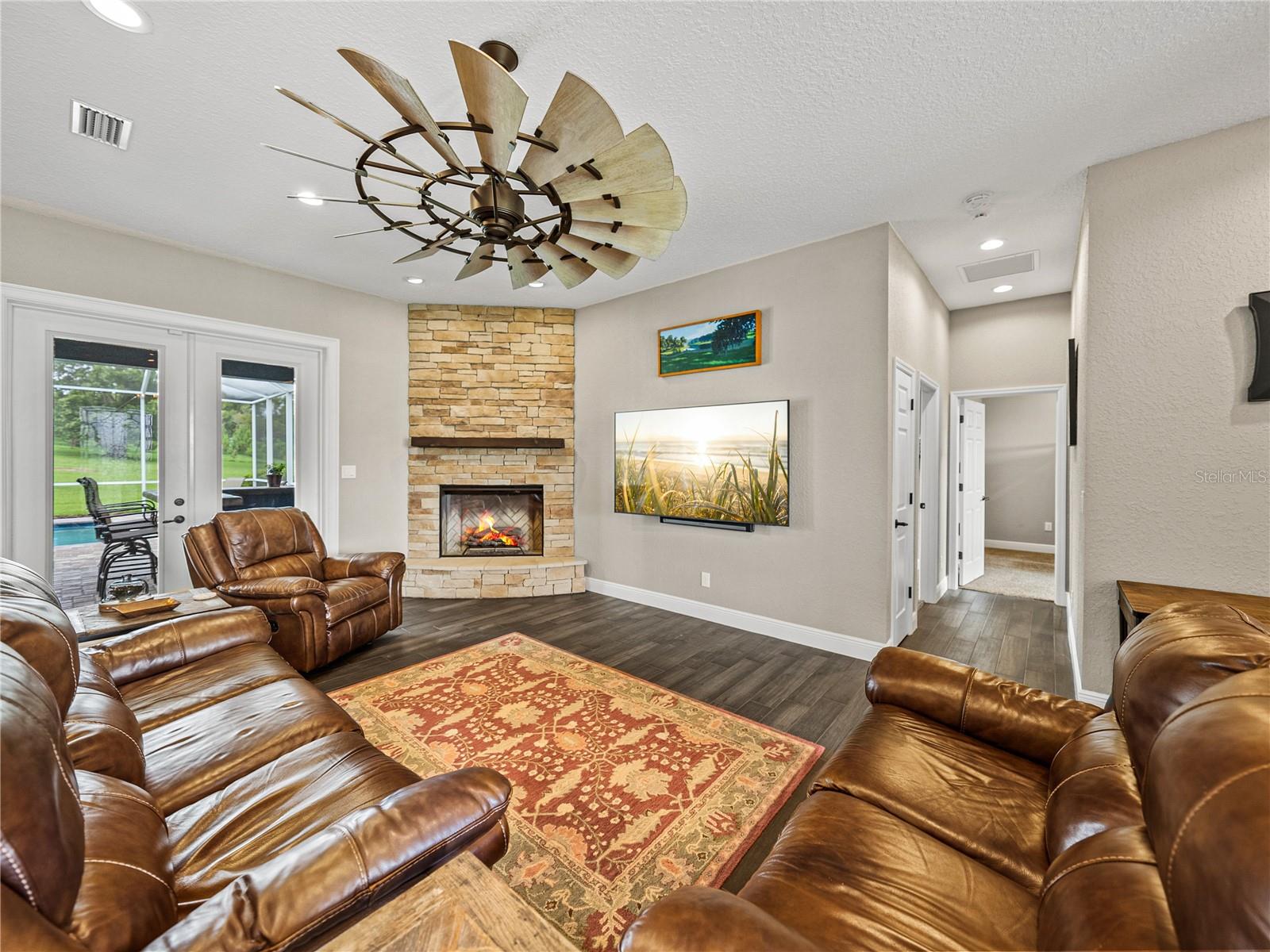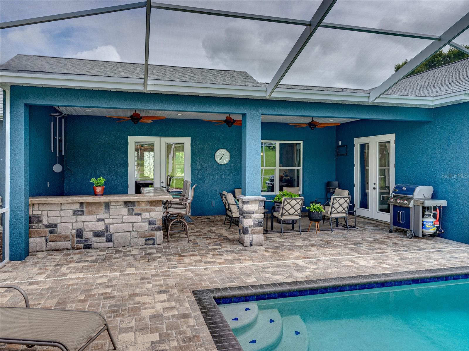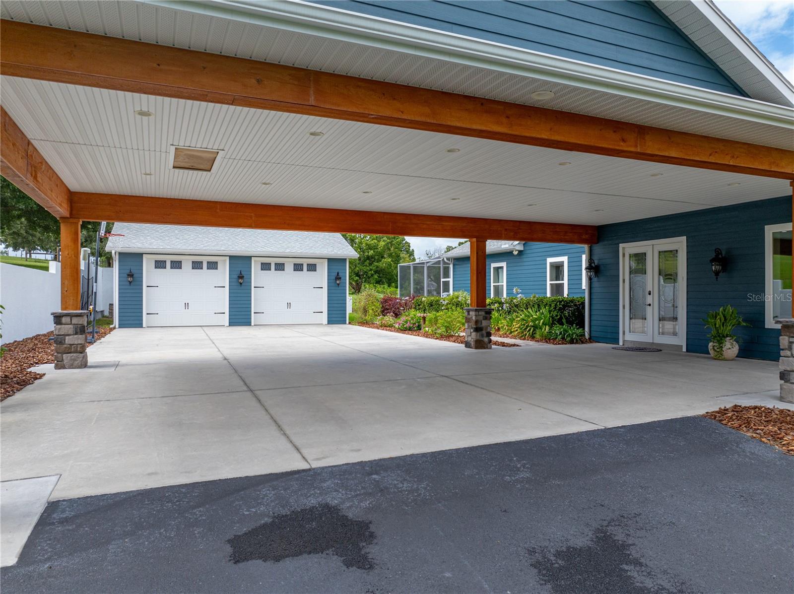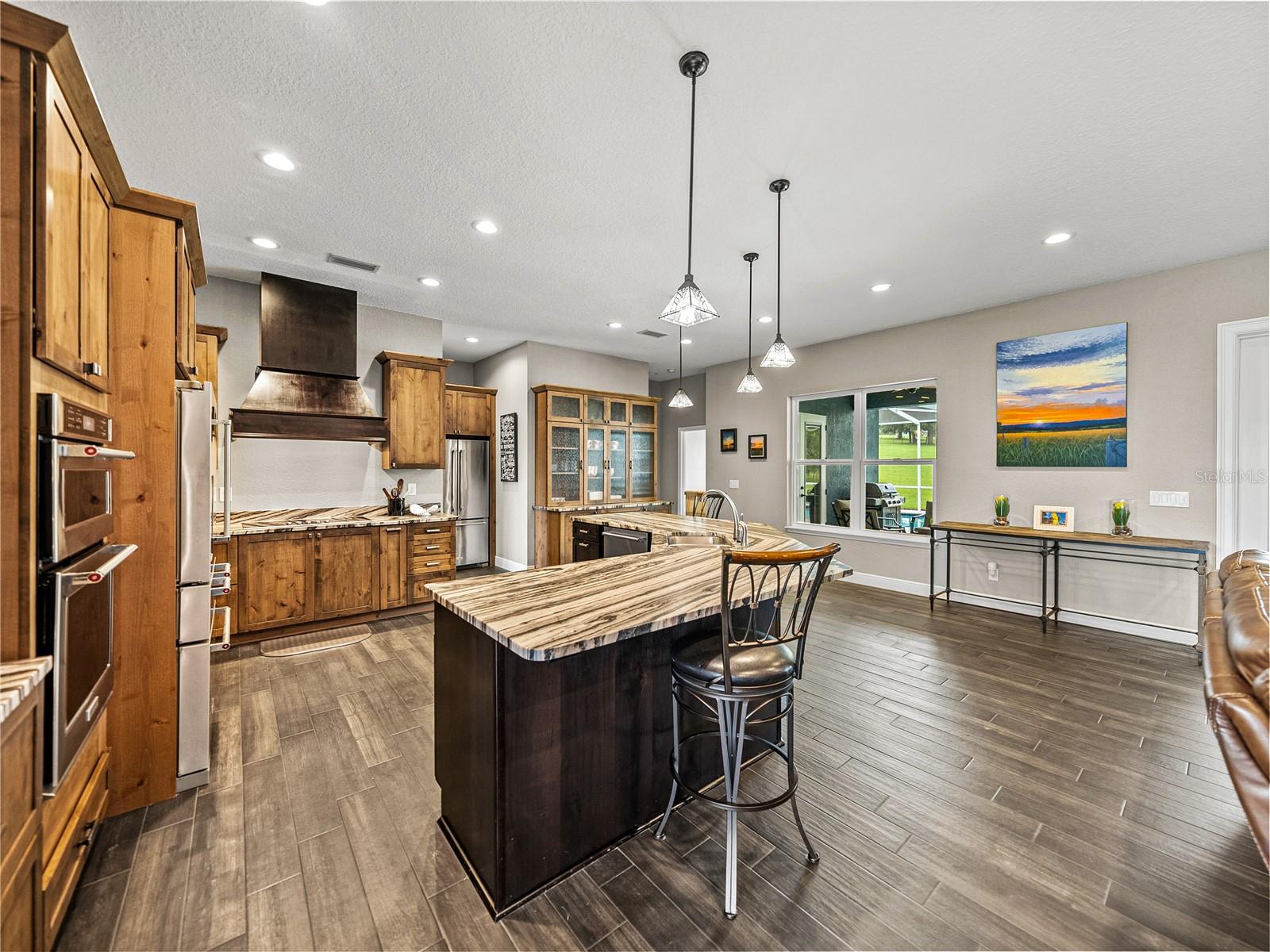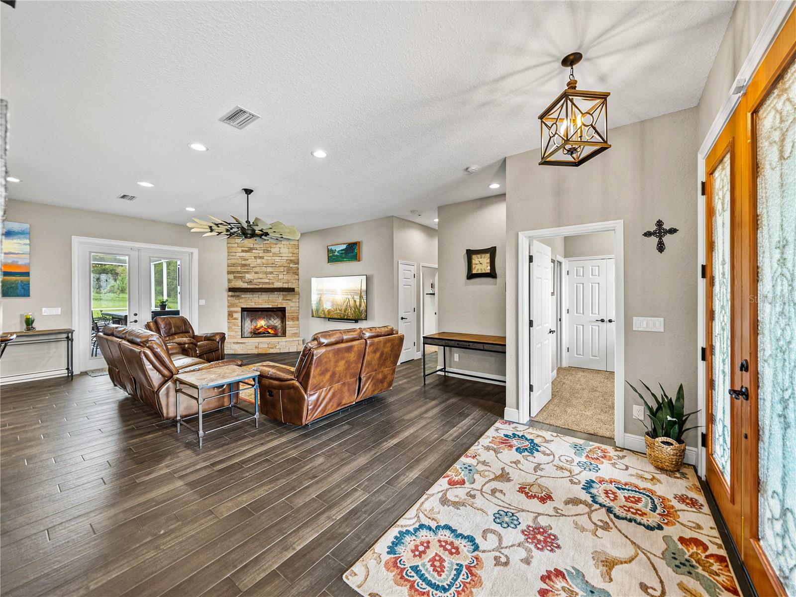 The epitome of luxurious rural Dade City living, this inviting 4 bed, 3.5 bath modern farmhouse pool home rests on 2.87 beautiful acres. Built in 2017, this property boasts a welcoming exterior with a stunning front elevation featuring stone and wood beam accents, a detached 2-car garage, an oversized covered parking area/patio, a lush lawn, lovely landscaping, and a picturesque front porch. Step inside to an open floor plan great room offering sweeping views of the main living areas and the pool beyond. Entertain with ease, enjoying the natural flow from the living room, formal dining room, and kitchen, all adorned with durable plank tile floors. Create culinary works of art from the well-equipped chef’s kitchen featuring leathered granite countertops, custom wood cabinetry, a built-in oven and microwave, 2 refrigerators, a cooktop, range hood, dry bar, walk-in pantry, stylish pendant lighting, and comfortable breakfast bar seating. For added convenience, the oversized covered parking has double-door access to the 26x25 family room, which provides an expansive entertaining space, luxury vinyl plank flooring, and it leads into the kitchen and laundry, allowing for easy cleanup and grocery drop off! Split away from the secondary bedrooms for privacy; the primary suite is a pleasant retreat at the end of the day; relax in the spacious sleeping quarters, head out through French doors to the patio and pool, or indulge in a spa-like experience within the ensuite bathroom offering an oversized soaking tub, a large walk-in shower, dual sinks, and a water closet. Two great-sized walk-in closets add extra storage space! Three guest bedrooms are on the opposite side of the home, each with a generous closet, plush carpeting, and access to a full ensuite bathroom. Live the ideal Florida lifestyle relaxing poolside under the covered patio with a bar area and seating or on the paver pool deck, enjoying the serene views of one of Dade City’s most desirable areas. Several quality finishes and upgrades have been completed in this one-of-a-kind home, including upgraded bathrooms with upscale light fixtures and tile work, a half bathroom for guests, a Generac Generator, Hardie Board siding, fresh exterior paint, and a detached 2 car garage with plenty of space to work on cars or store extra items. This location and this construction are truly top-notch. Call us today to privately tour this lovely home!