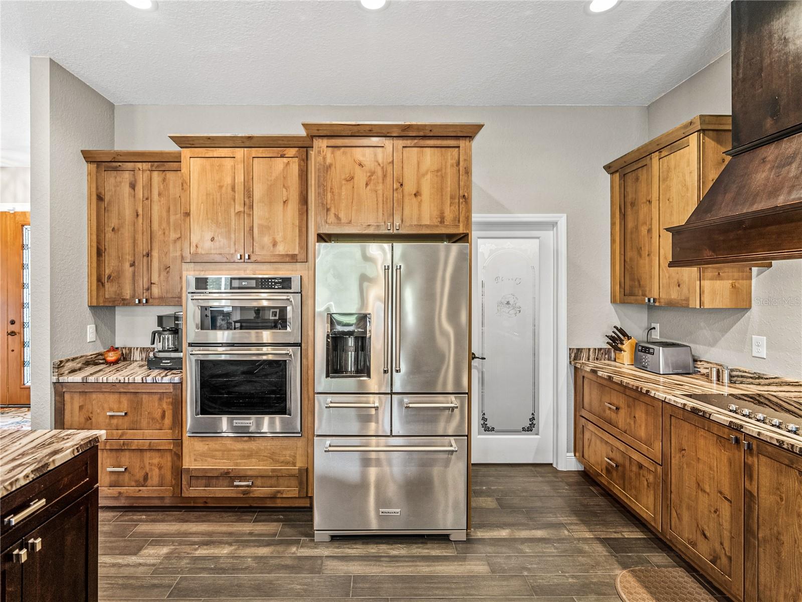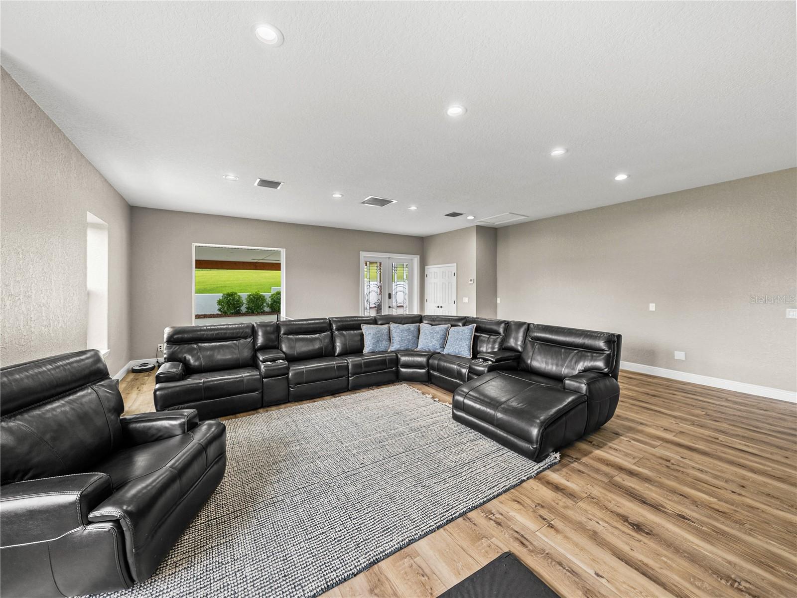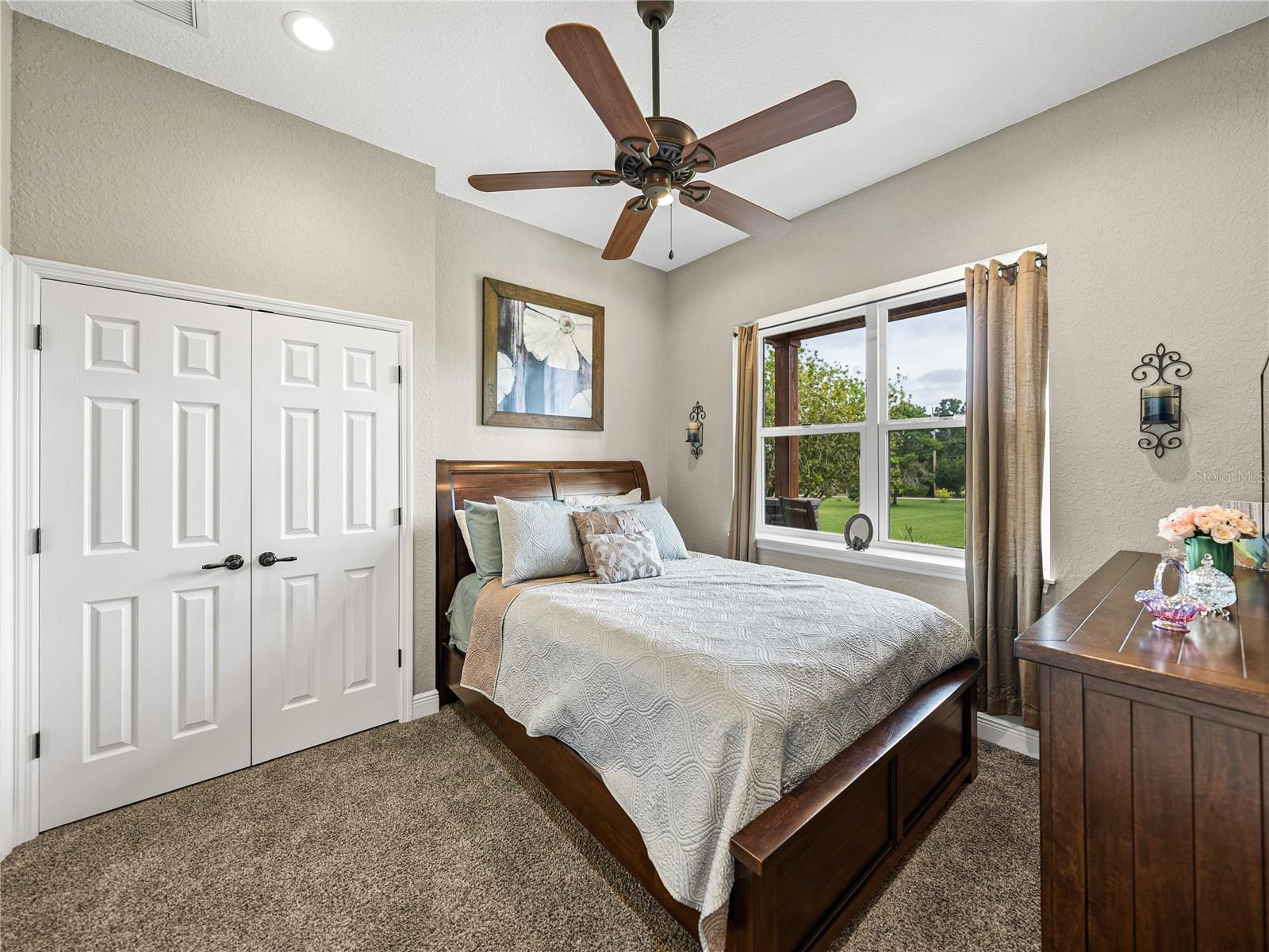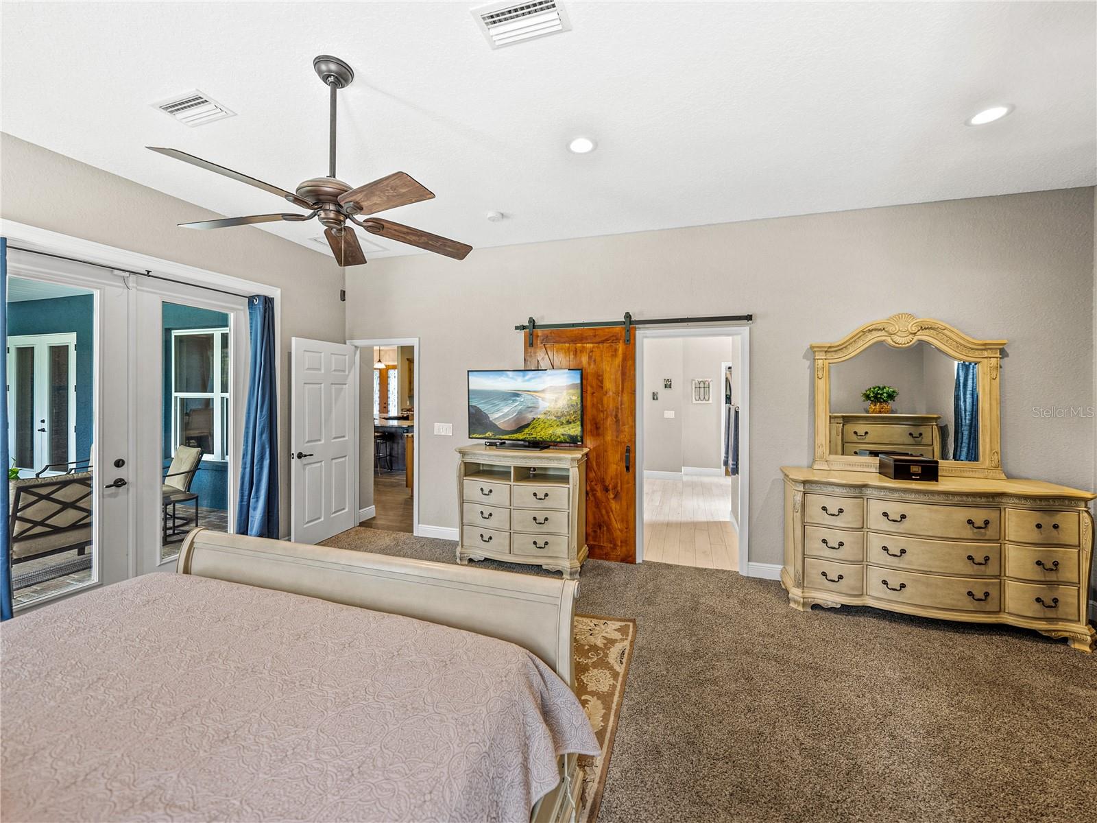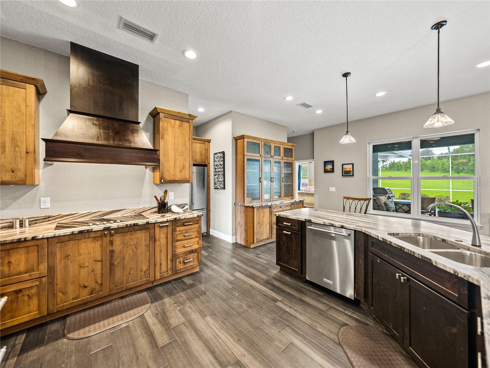 The epitome of luxurious rural Dade City living, this inviting 4 bed, 3.5 bath modern farmhouse pool home rests on 2.87 beautiful acres. Built in 2017, this property boasts a welcoming exterior with a stunning front elevation featuring stone and wood beam accents, a detached 2-car garage, an oversized covered parking area/patio, a lush lawn, lovely landscaping, and a picturesque front porch. Step inside to an open floor plan great room offering sweeping views of the main living areas and the pool beyond. Entertain with ease, enjoying the natural flow from the living room, formal dining room, and kitchen, all adorned with durable plank tile floors. Create culinary works of art from the well-equipped chef’s kitchen featuring leathered granite countertops, custom wood cabinetry, a built-in oven and microwave, 2 refrigerators, a cooktop, range hood, dry bar, walk-in pantry, stylish pendant lighting, and comfortable breakfast bar seating. For added convenience, the oversized covered parking has double-door access to the 26x25 family room, which provides an expansive entertaining space, luxury vinyl plank flooring, and it leads into the kitchen and laundry, allowing for easy cleanup and grocery drop off! Split away from the secondary bedrooms for privacy; the primary suite is a pleasant retreat at the end of the day; relax in the spacious sleeping quarters, head out through French doors to the patio and pool, or indulge in a spa-like experience within the ensuite bathroom offering an oversized soaking tub, a large walk-in shower, dual sinks, and a water closet. Two great-sized walk-in closets add extra storage space! Three guest bedrooms are on the opposite side of the home, each with a generous closet, plush carpeting, and access to a full ensuite bathroom. Live the ideal Florida lifestyle relaxing poolside under the covered patio with a bar area and seating or on the paver pool deck, enjoying the serene views of one of Dade City’s most desirable areas. Several quality finishes and upgrades have been completed in this one-of-a-kind home, including upgraded bathrooms with upscale light fixtures and tile work, a half bathroom for guests, a Generac Generator, Hardie Board siding, fresh exterior paint, and a detached 2 car garage with plenty of space to work on cars or store extra items. This location and this construction are truly top-notch. Call us today to privately tour this lovely home!