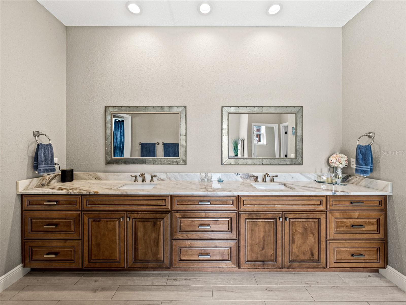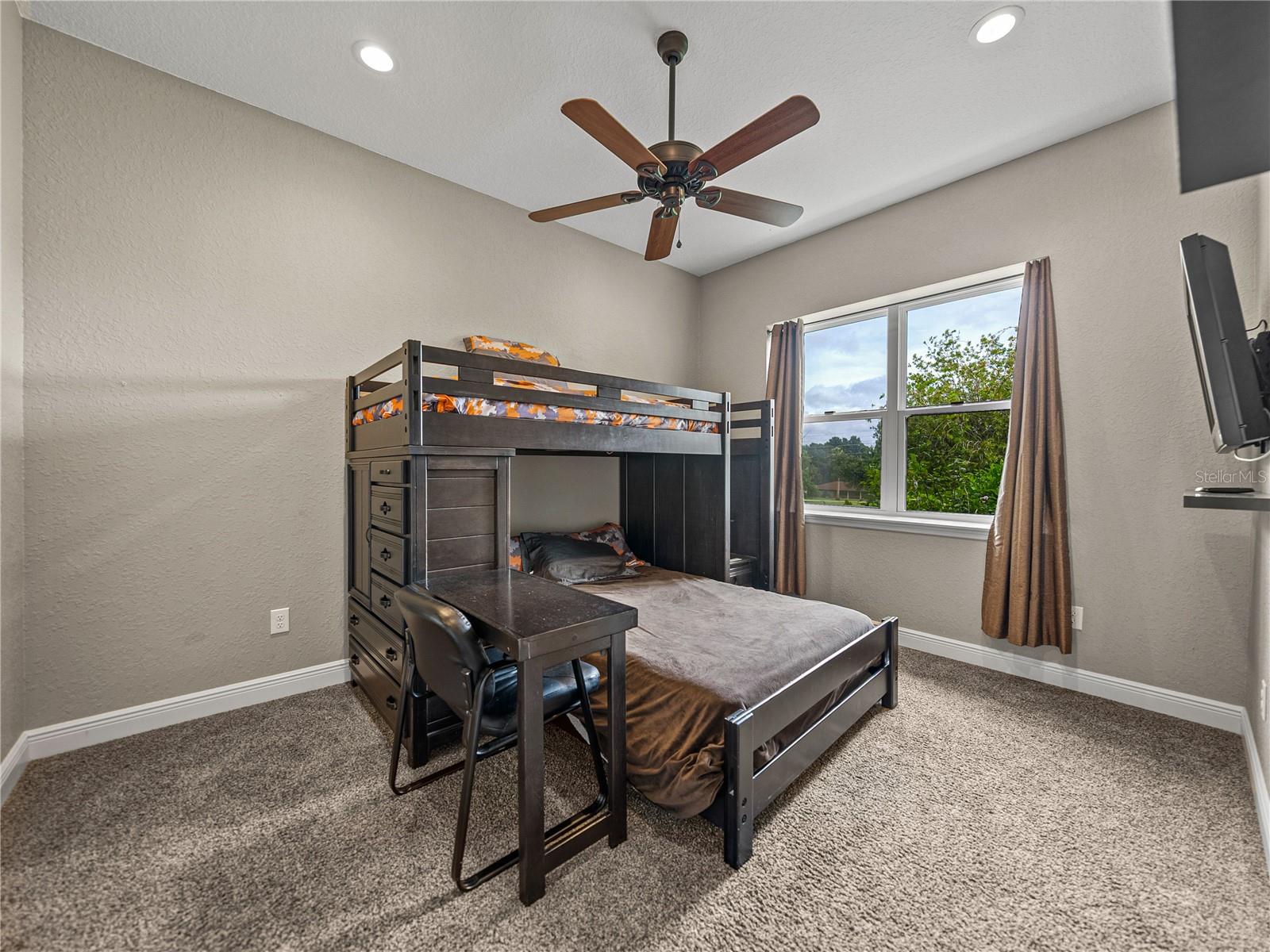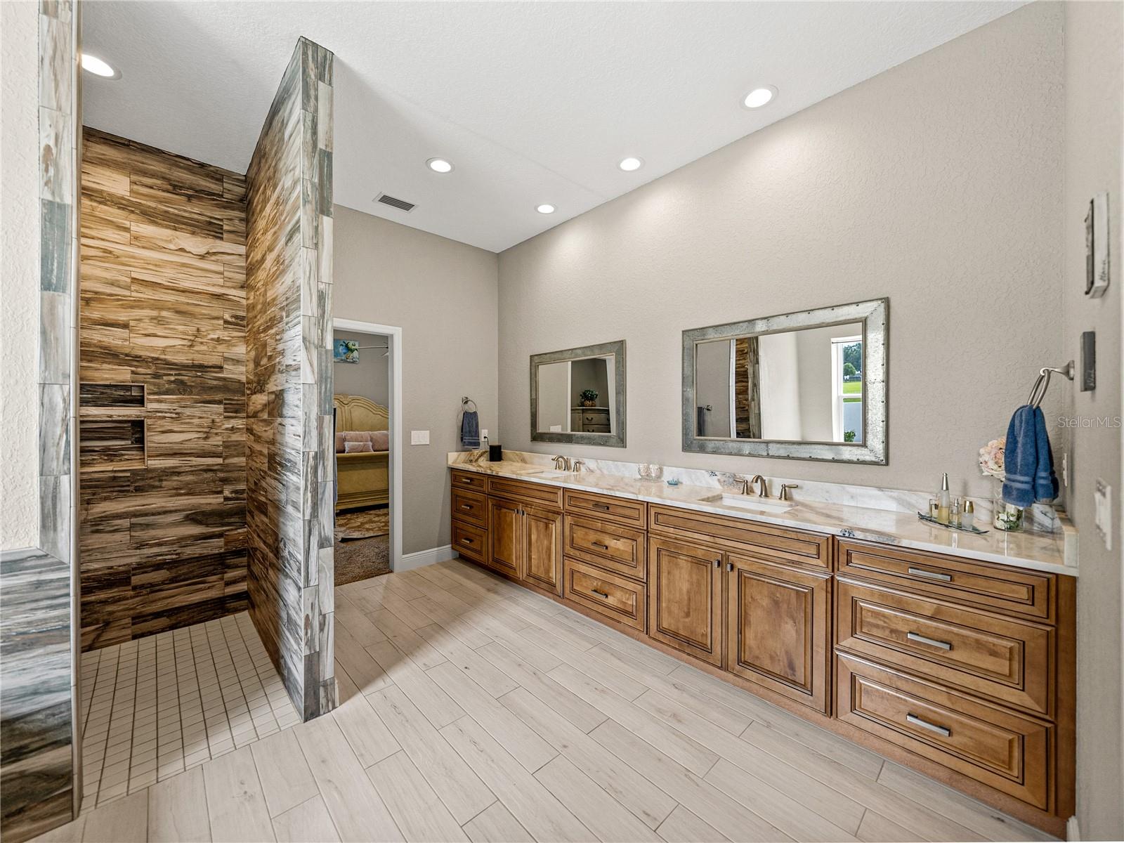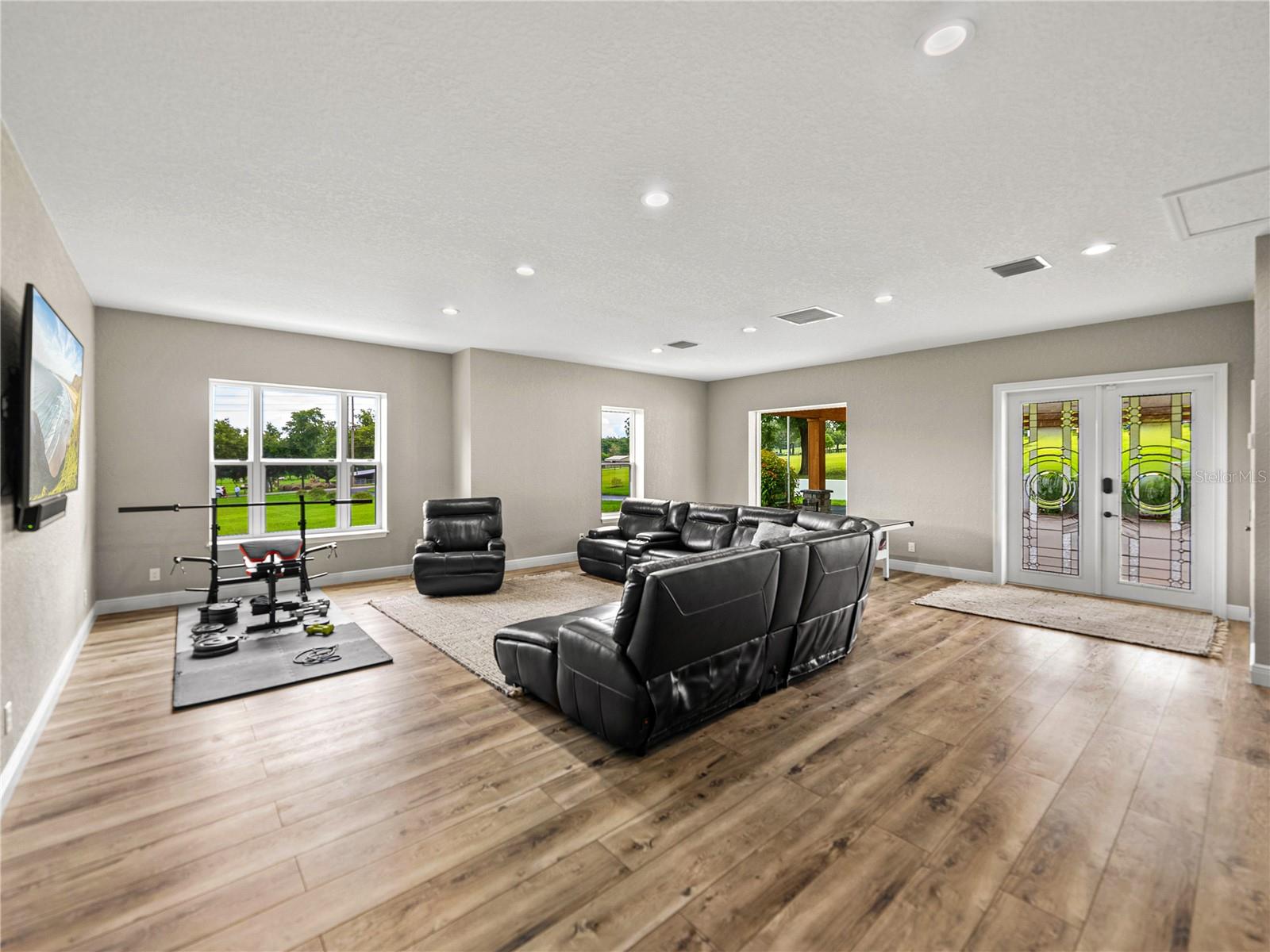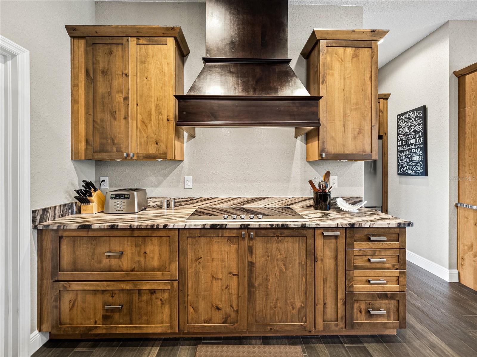 The epitome of luxurious rural Dade City living, this inviting 4 bed, 3.5 bath modern farmhouse pool home rests on 2.87 beautiful acres. Built in 2017, this property boasts a welcoming exterior with a stunning front elevation featuring stone and wood beam accents, a detached 2-car garage, an oversized covered parking area/patio, a lush lawn, lovely landscaping, and a picturesque front porch. Step inside to an open floor plan great room offering sweeping views of the main living areas and the pool beyond. Entertain with ease, enjoying the natural flow from the living room, formal dining room, and kitchen, all adorned with durable plank tile floors. Create culinary works of art from the well-equipped chef’s kitchen featuring leathered granite countertops, custom wood cabinetry, a built-in oven and microwave, 2 refrigerators, a cooktop, range hood, dry bar, walk-in pantry, stylish pendant lighting, and comfortable breakfast bar seating. For added convenience, the oversized covered parking has double-door access to the 26x25 family room, which provides an expansive entertaining space, luxury vinyl plank flooring, and it leads into the kitchen and laundry, allowing for easy cleanup and grocery drop off! Split away from the secondary bedrooms for privacy; the primary suite is a pleasant retreat at the end of the day; relax in the spacious sleeping quarters, head out through French doors to the patio and pool, or indulge in a spa-like experience within the ensuite bathroom offering an oversized soaking tub, a large walk-in shower, dual sinks, and a water closet. Two great-sized walk-in closets add extra storage space! Three guest bedrooms are on the opposite side of the home, each with a generous closet, plush carpeting, and access to a full ensuite bathroom. Live the ideal Florida lifestyle relaxing poolside under the covered patio with a bar area and seating or on the paver pool deck, enjoying the serene views of one of Dade City’s most desirable areas. Several quality finishes and upgrades have been completed in this one-of-a-kind home, including upgraded bathrooms with upscale light fixtures and tile work, a half bathroom for guests, a Generac Generator, Hardie Board siding, fresh exterior paint, and a detached 2 car garage with plenty of space to work on cars or store extra items. This location and this construction are truly top-notch. Call us today to privately tour this lovely home!