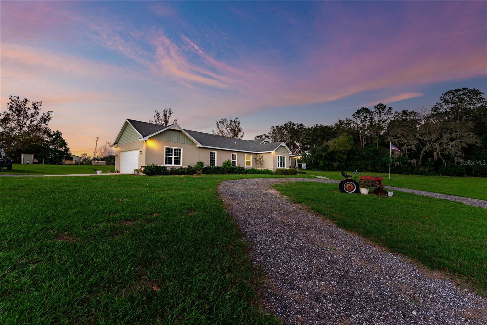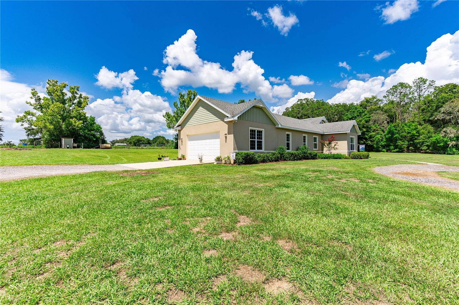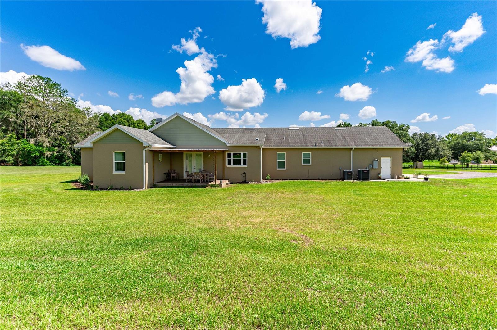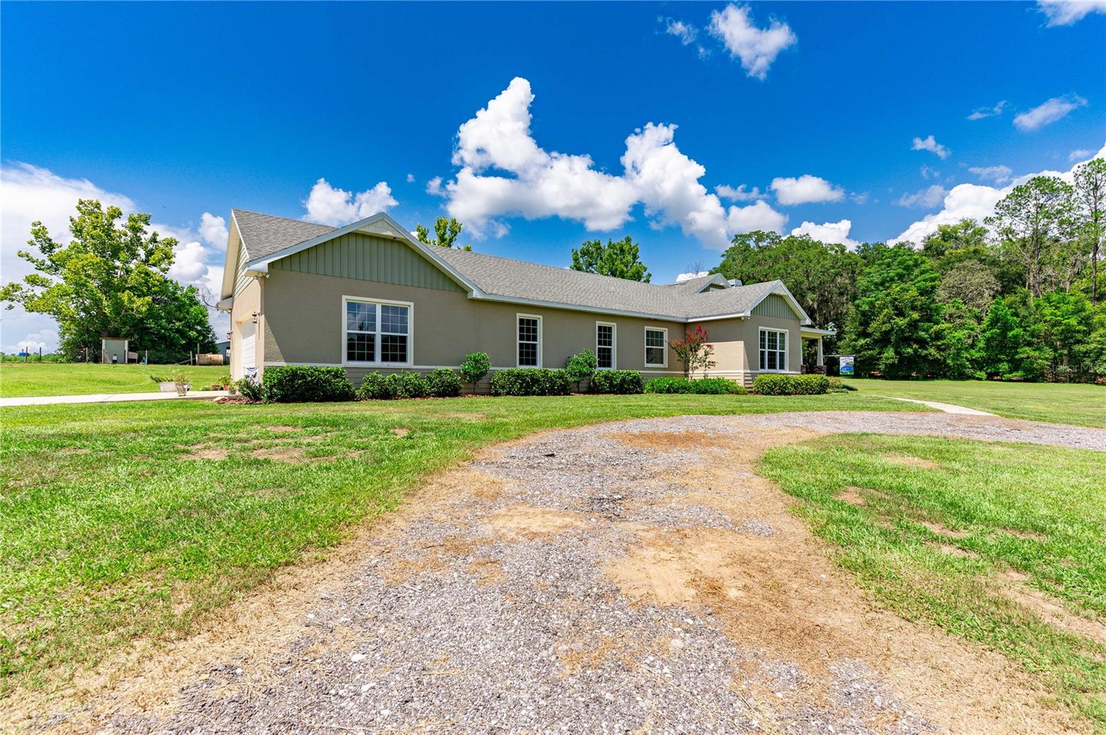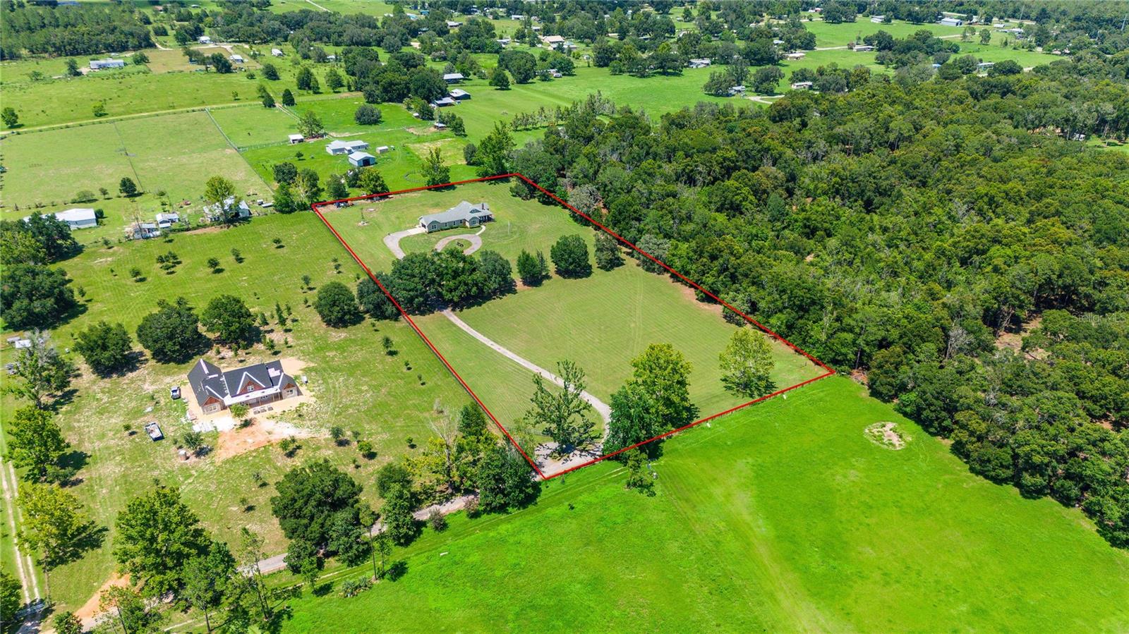 TWO HOUSES in one! Discover privacy and unmatched beauty with this custom-built, HIGH AND DRY, 3 bedroom 2 bath home with a 1 bedroom 1 bath in law suite, BLOCK home nestled on 5 TRANQUIL ACRES at the end of a dead-end street. Boasting 2565 square feet of living space, this residence features gorgeous hardwood flooring, expansive high ceilings, and a warm, inviting fireplace. The grandeur continues into the large kitchen, complete with a generous island, sleek stainless appliances, GRANITE countertops, CUSTOM BUILT SOLID WOOD CABINETS, and a spacious walk-in pantry. This home offers a desirable split floorplan, with a large primary bedroom that includes an ample closet for all your wardrobe needs. Indulge in the spa-like primary bath, featuring a relaxing soaking tub, a separate walk-in shower, dual sinks, and a private water closet. Additional benefits include an IN-LAW SUITE with a bedroom, bathroom, its own kitchen, large closet, separate HVAC unit, and two private entries adorned with elegant plantation shutters. Outside, the property is perfectly suited for HORSE enthusiasts or those seeking space, offering endless possibilities for equestrian activities. Additionally, a CHICKEN COOP with an auto door, automatic watering system, and fencing are on the property if you want to save on eggs! This property is completely fenced with an automatic gate with the option of a solid wood gate. Underground electricity has been run from the property line to the house. Experience the blend of comfort and sophistication in this beautiful retreat. This unique residence awaits to enchant and inspire. Don't miss the chance to make this your forever home.