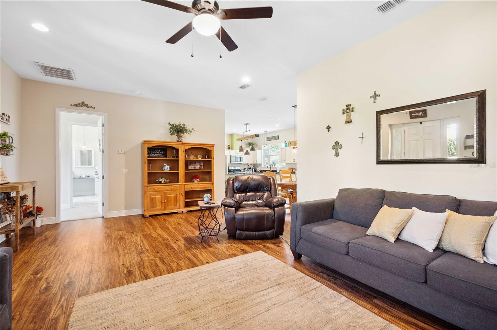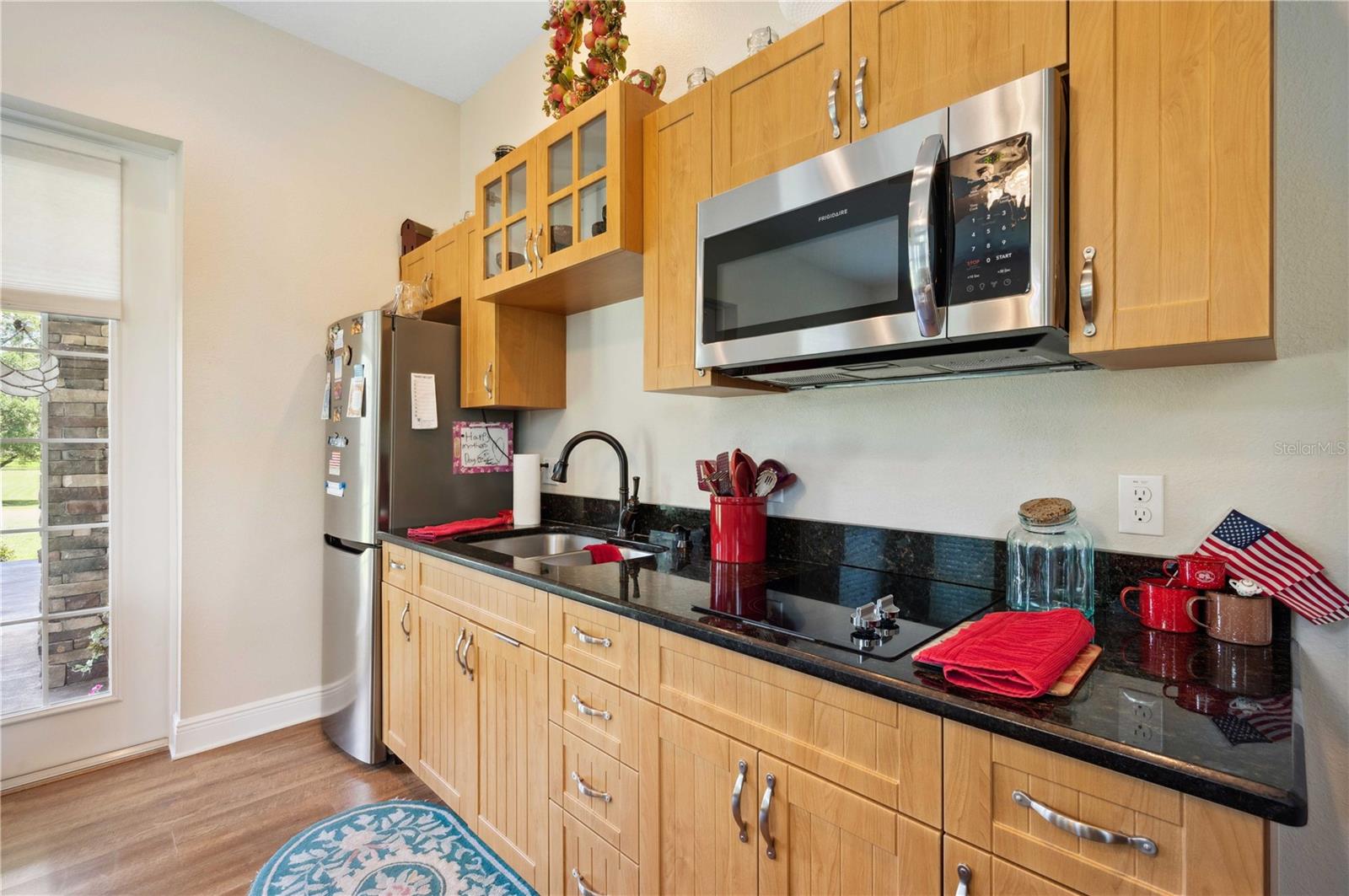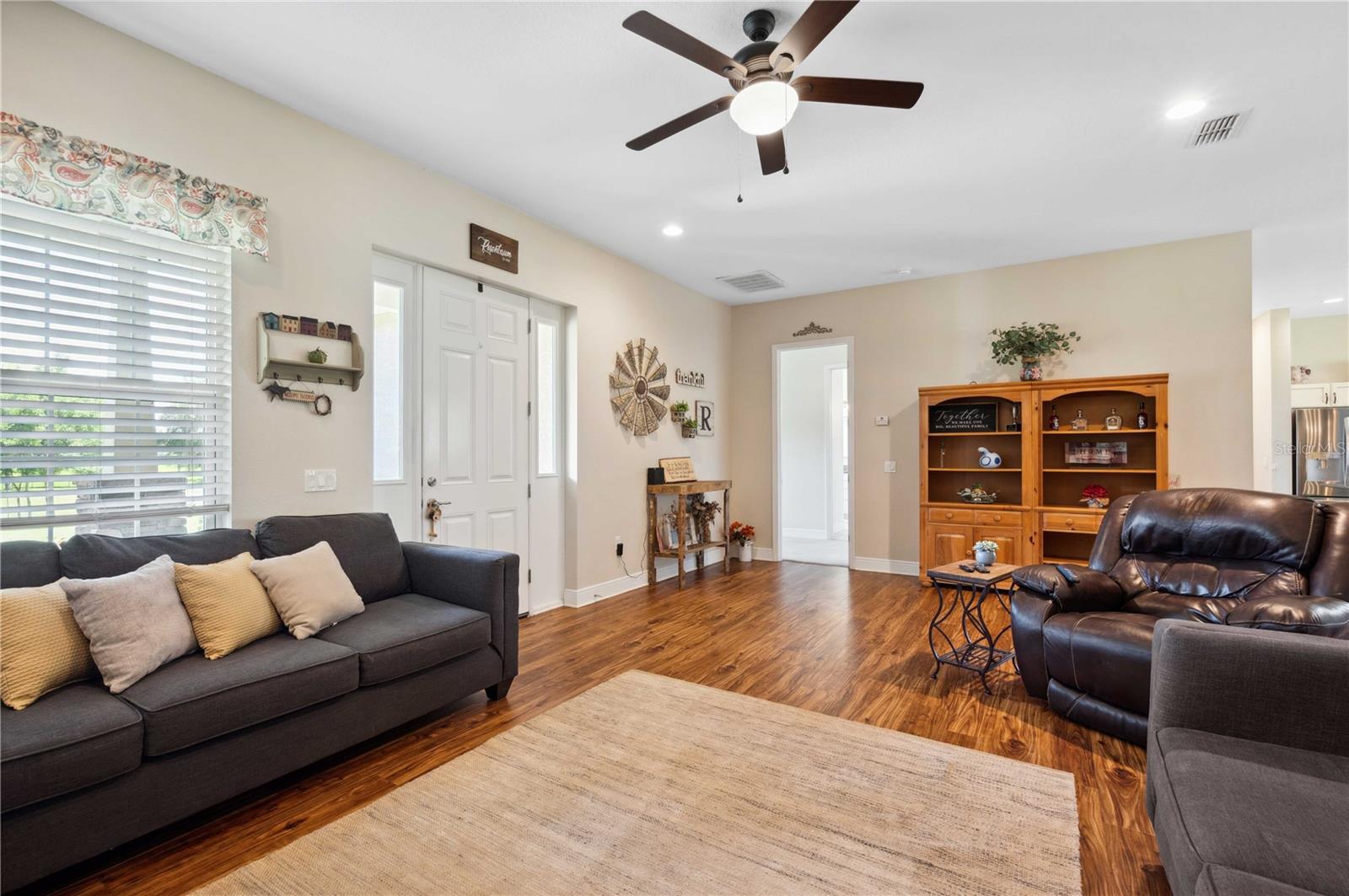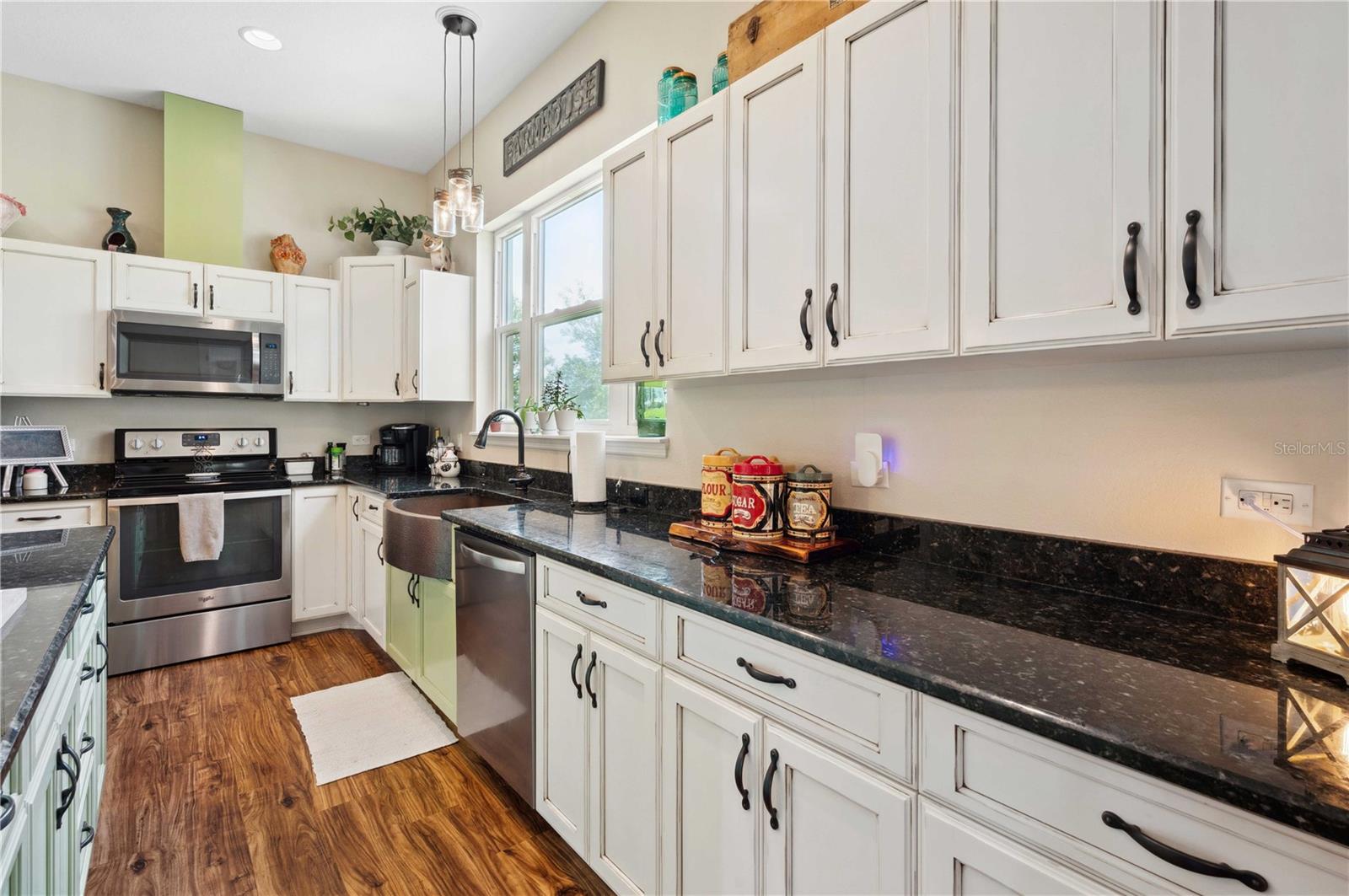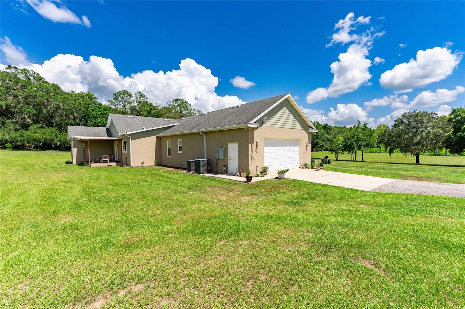 TWO HOUSES in one! Discover privacy and unmatched beauty with this custom-built, HIGH AND DRY, 3 bedroom 2 bath home with a 1 bedroom 1 bath in law suite, BLOCK home nestled on 5 TRANQUIL ACRES at the end of a dead-end street. Boasting 2565 square feet of living space, this residence features gorgeous hardwood flooring, expansive high ceilings, and a warm, inviting fireplace. The grandeur continues into the large kitchen, complete with a generous island, sleek stainless appliances, GRANITE countertops, CUSTOM BUILT SOLID WOOD CABINETS, and a spacious walk-in pantry. This home offers a desirable split floorplan, with a large primary bedroom that includes an ample closet for all your wardrobe needs. Indulge in the spa-like primary bath, featuring a relaxing soaking tub, a separate walk-in shower, dual sinks, and a private water closet. Additional benefits include an IN-LAW SUITE with a bedroom, bathroom, its own kitchen, large closet, separate HVAC unit, and two private entries adorned with elegant plantation shutters. Outside, the property is perfectly suited for HORSE enthusiasts or those seeking space, offering endless possibilities for equestrian activities. Additionally, a CHICKEN COOP with an auto door, automatic watering system, and fencing are on the property if you want to save on eggs! This property is completely fenced with an automatic gate with the option of a solid wood gate. Underground electricity has been run from the property line to the house. Experience the blend of comfort and sophistication in this beautiful retreat. This unique residence awaits to enchant and inspire. Don't miss the chance to make this your forever home.