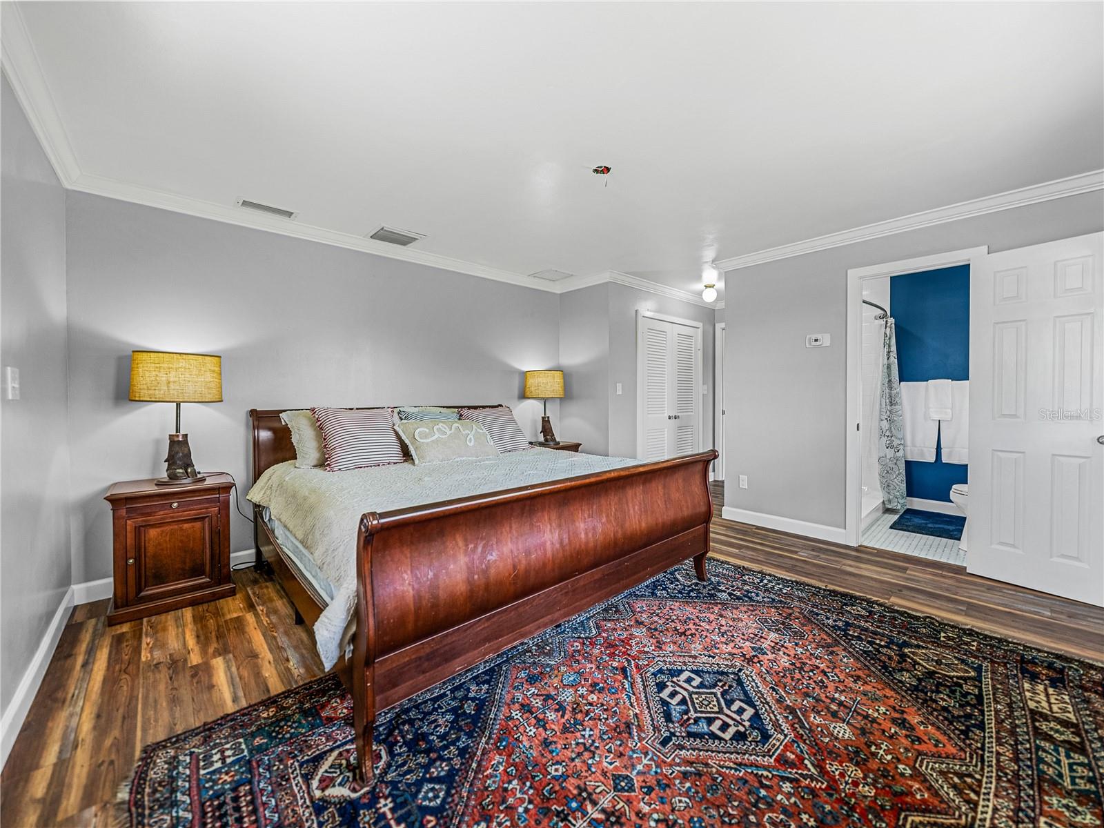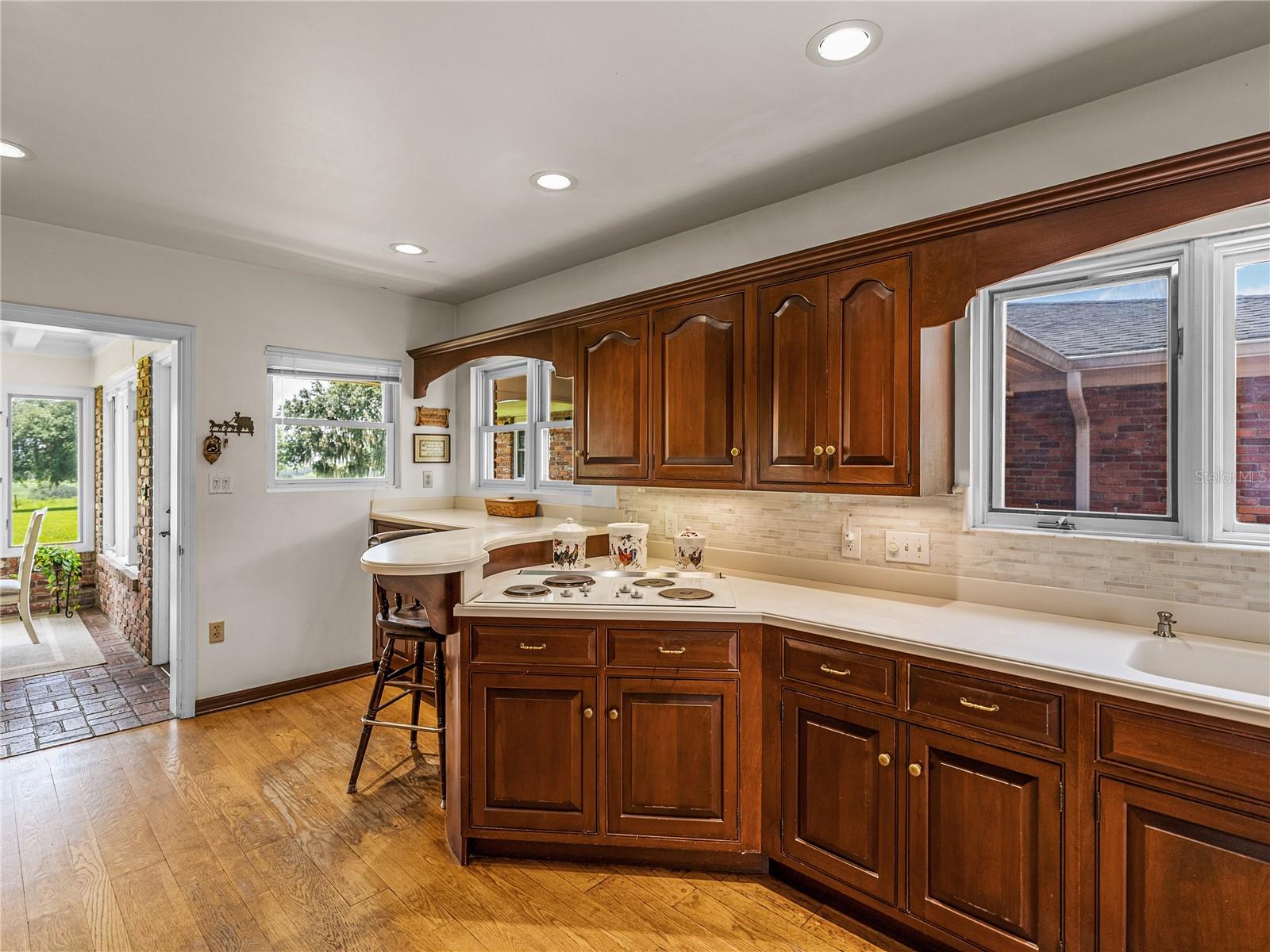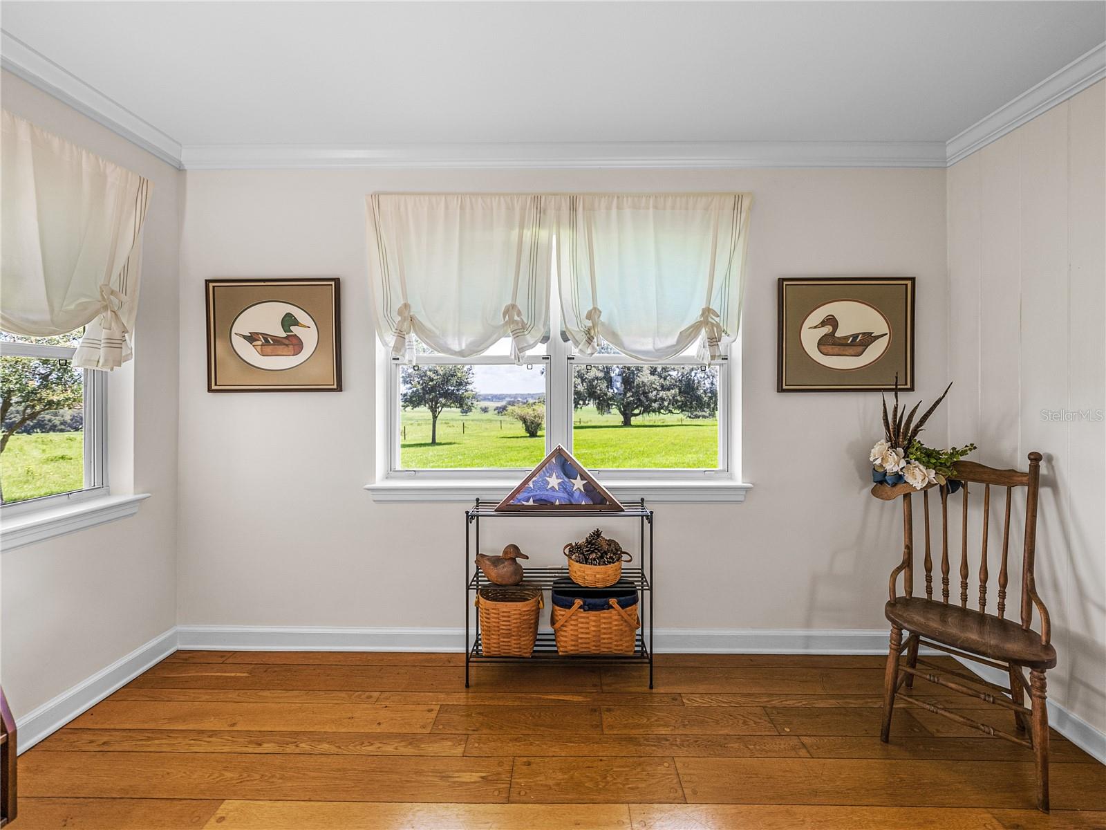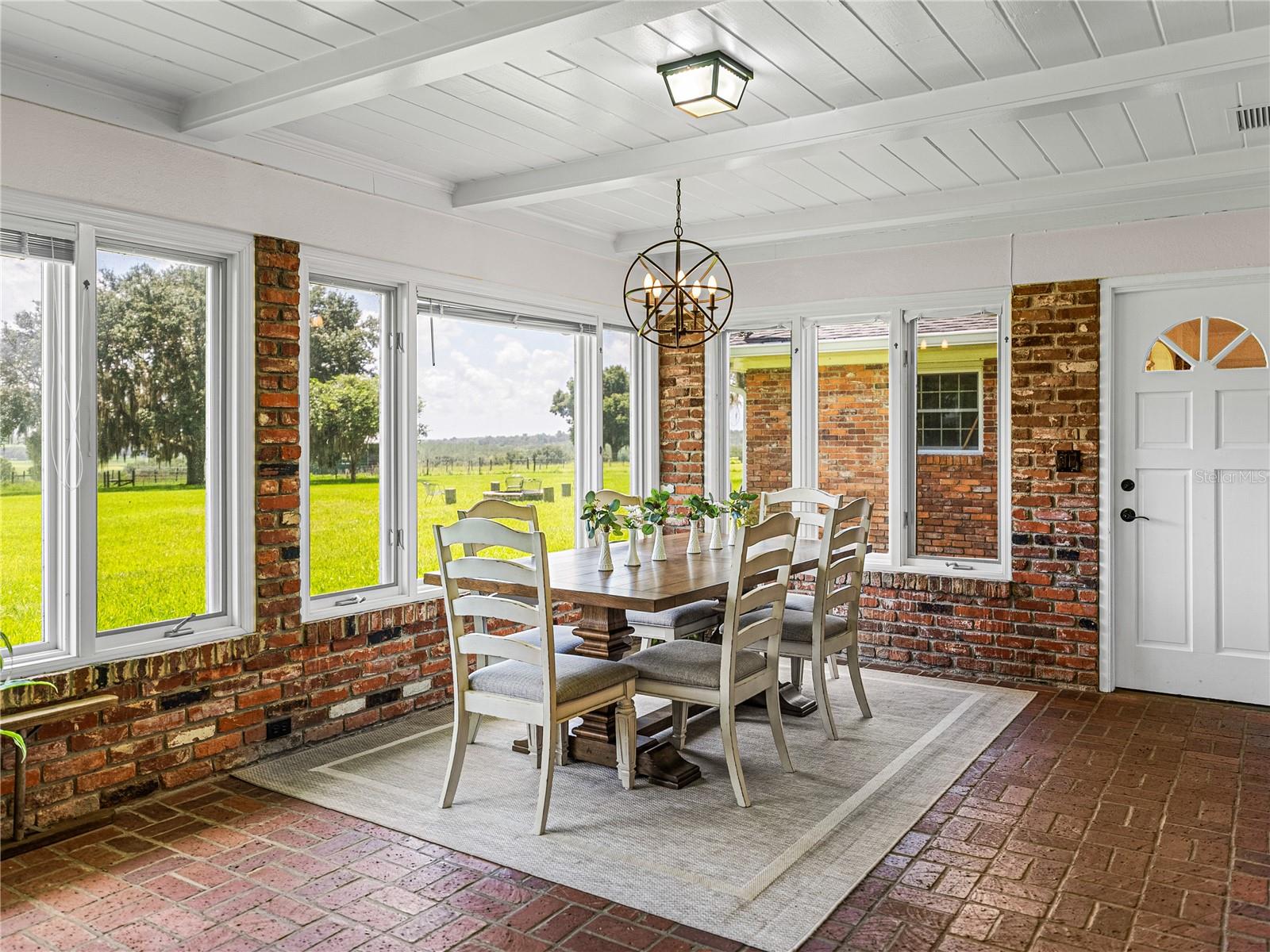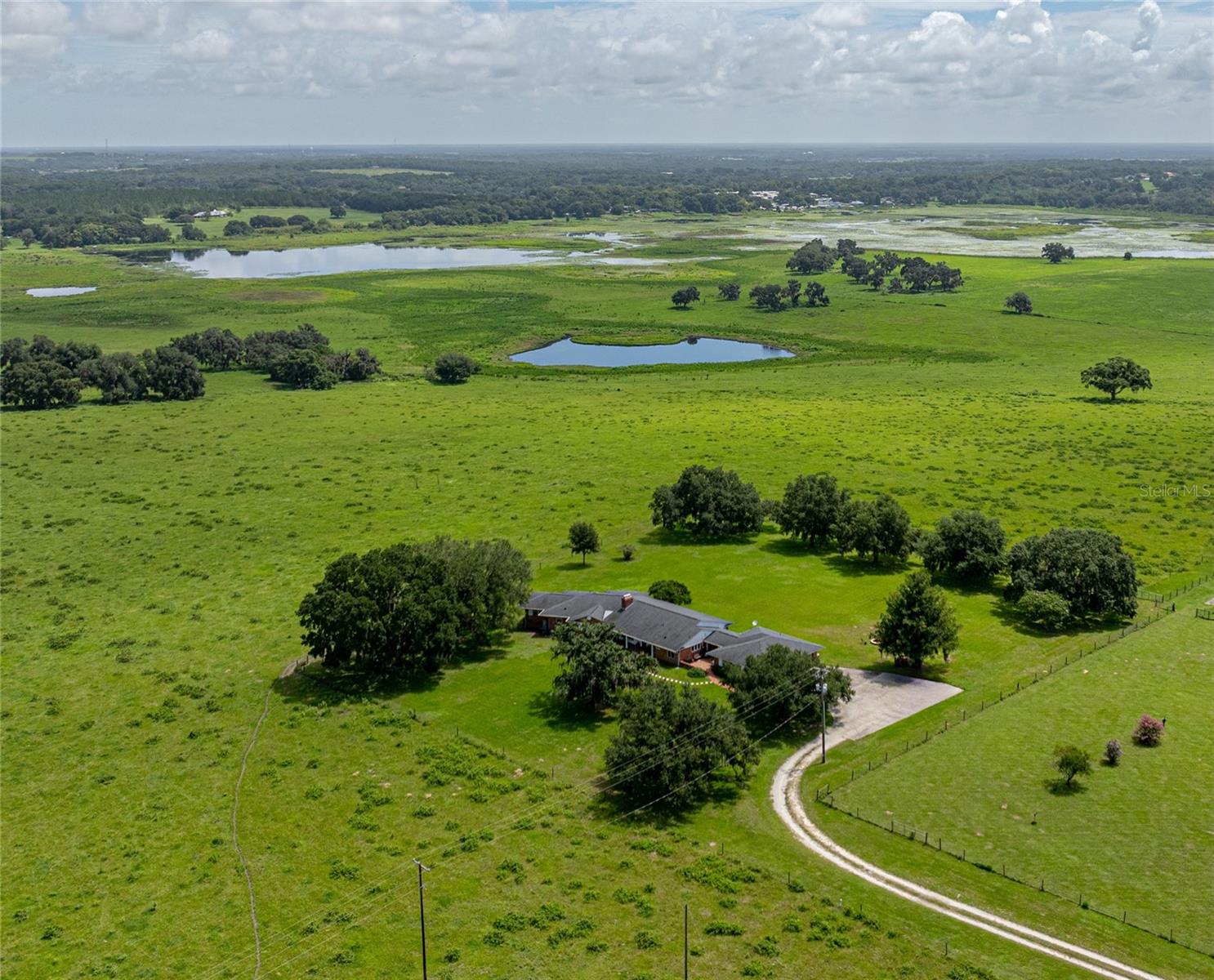 One-of-a-kind Old Florida Hilltop Estate with a sweeping million-dollar view, never before offered to the public. Set on a picturesque 2.26-acre hilltop with panoramic lake vistas in every direction, this Southern gem pairs timeless craftsmanship with an irreplaceable setting. Bricks sourced from the historic Bank of Tampa add a touch of legacy and elegance to the exterior, hinting at the character found throughout the home. Inside, the view takes center stage with dual lake panoramas framed by large casement windows and warmed by architectural details, brick accents, and thoughtfully selected materials. The main residence provides 4 bedrooms and 3.5 baths, while a private-entry in-law suite adds a fifth bedroom, a full bathroom, and its own living room, ideal for multi-generational living or long-term guests. Most of the home showcases original Heart Pine flooring, crown molding, and classic tongue-and-groove paneling. Multiple living spaces offer room to gather, including the inviting living room with a wood-burning fireplace and the expansive 58x12 Sun Parlor with brick flooring, wood beam accents, and a wall of windows that fills the space with natural light. A formal dining room, guest half bath, and private kitchen make this layout well-suited for hosting. The morning sun pours into the primary suite through bay windows, complementing its beautifully remodeled ensuite bath with dual sinks, quartz countertop, walk-in closet with custom organizers, skylight, and walk-in shower. Bedroom 2 is generously sized and connects to a Jack-and-Jill style full bathroom shared with the hallway. Bedroom 3 offers comfortable space and sits near the 4th bedroom, which features two closets and an ensuite bath. Step through the brick-accented courtyard to the private in-law quarters, complete with a spacious bedroom, full bath, and a 14x13 living room. Opportunities like this rarely come to market. This Old Florida hilltop estate combines a commanding setting, timeless materials, and multi-generational flexibility, a truly unique chance to own a historic home with breathtaking views and enduring charm.